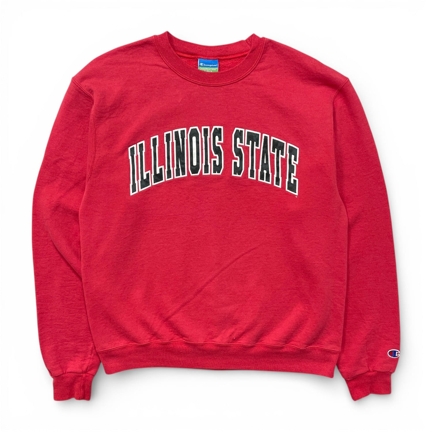 USA 古着 Champion チャンピオン イリノイ州立大学 カレッジ クルーネック スウェット トレーナー プリント メンズM レッド BD3672
