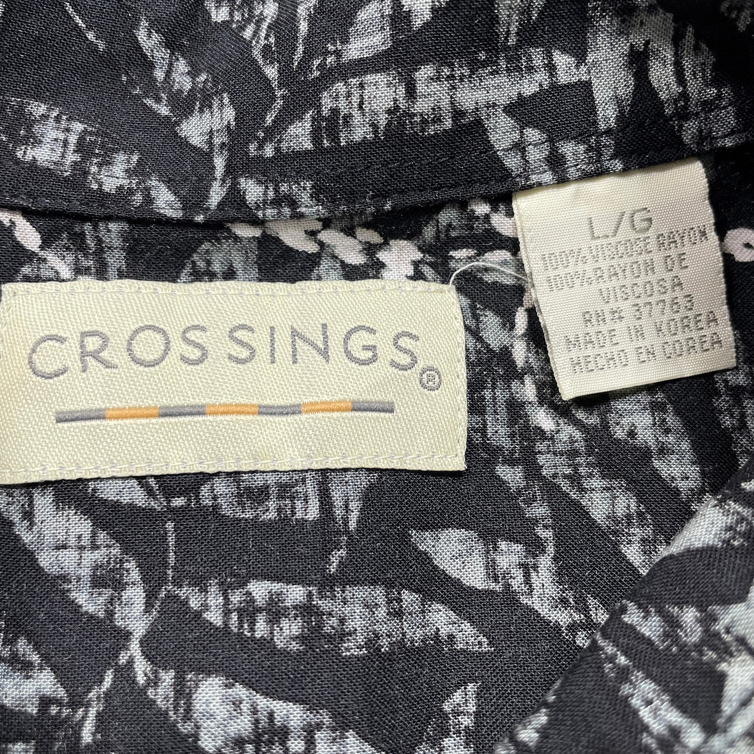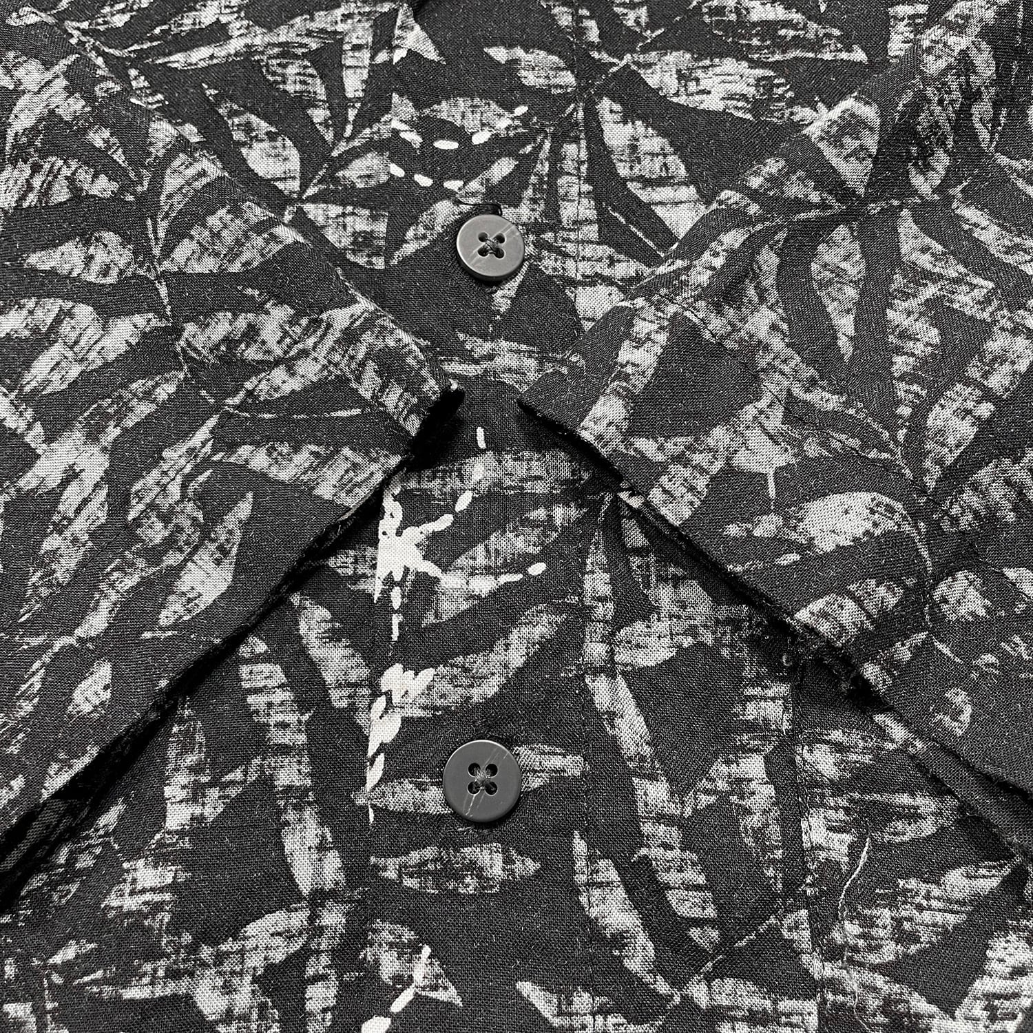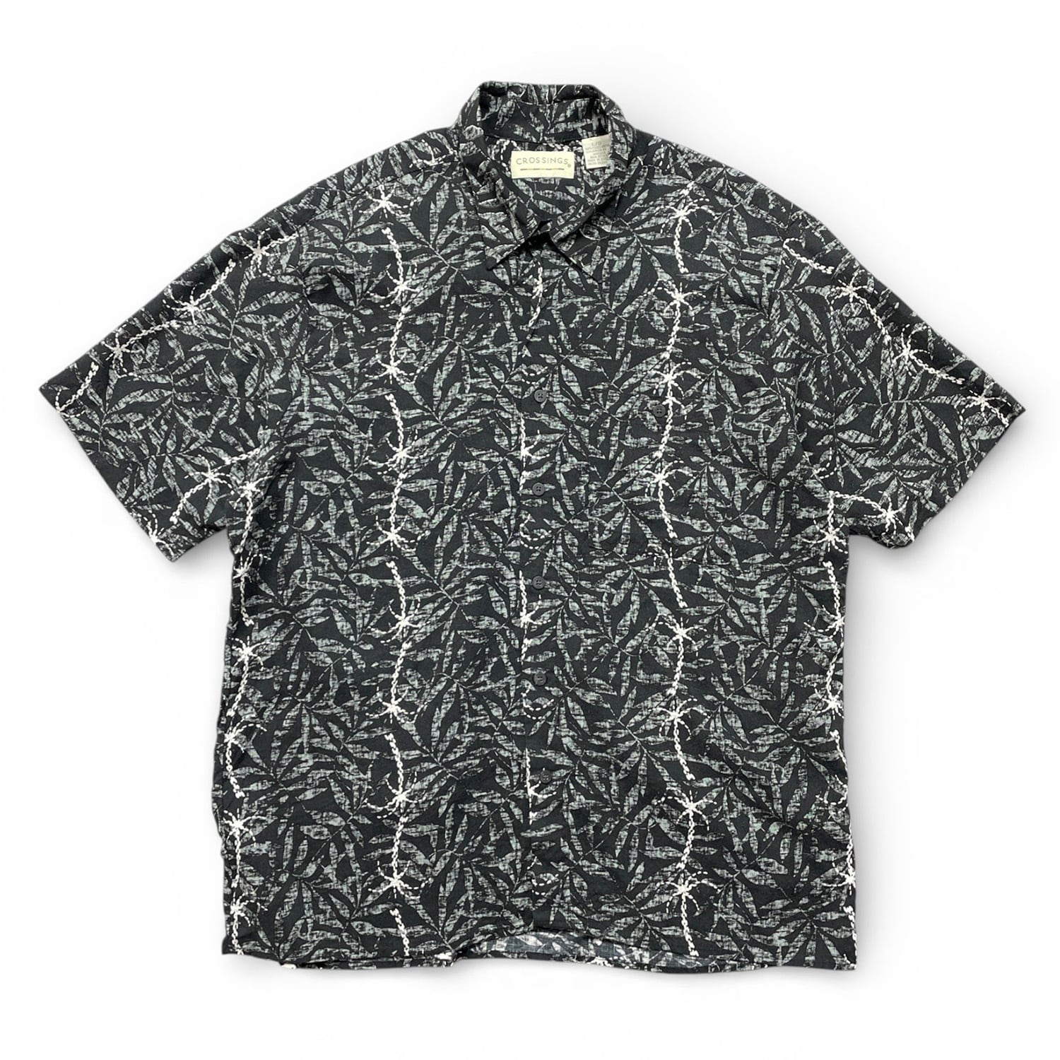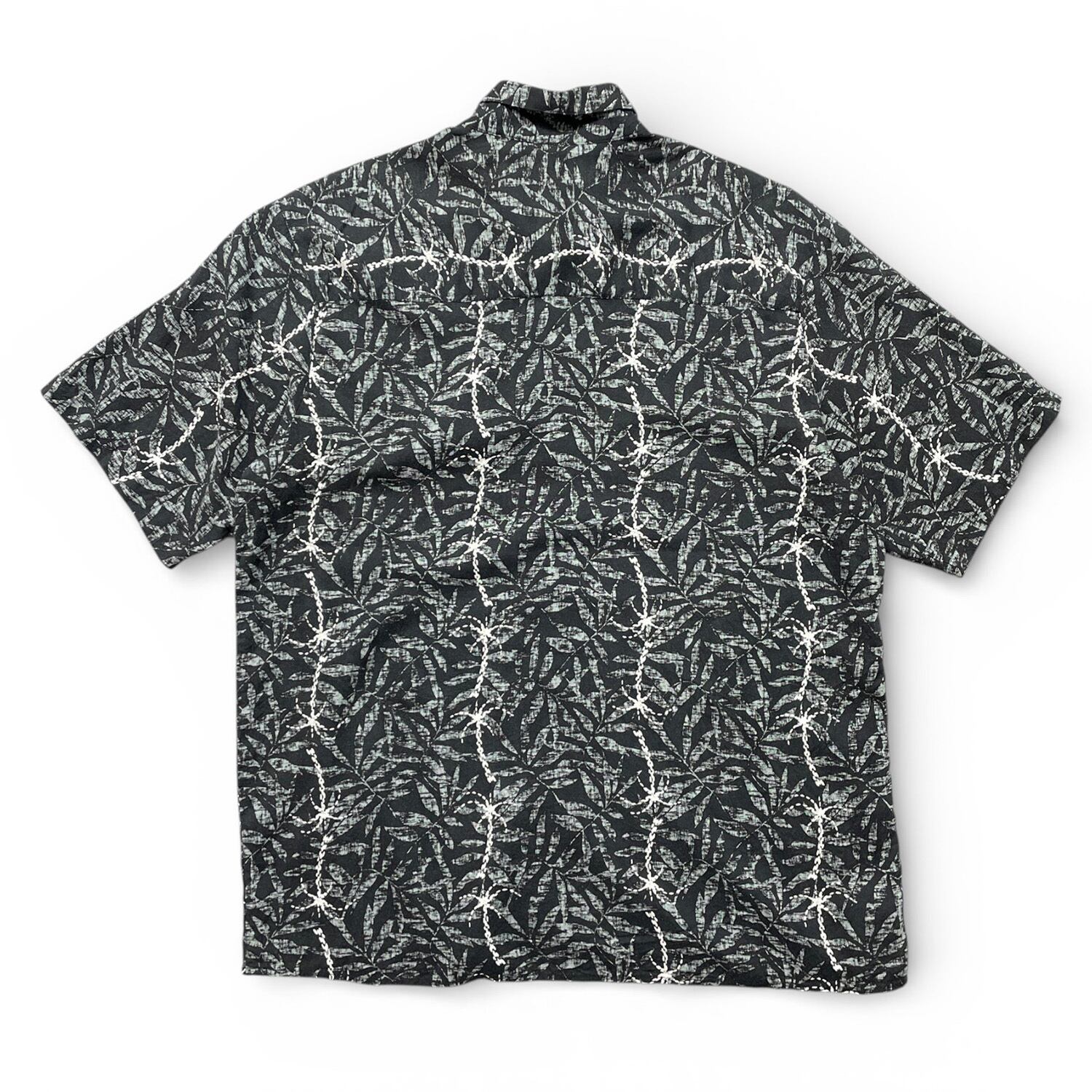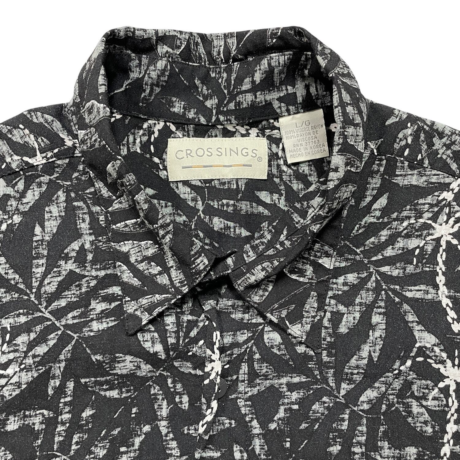 USA 古着 CROSSINGS クロッシングス レーヨン ハワイアンシャツ アロハシャツ リーフ柄 メンズL ブラック BF3870