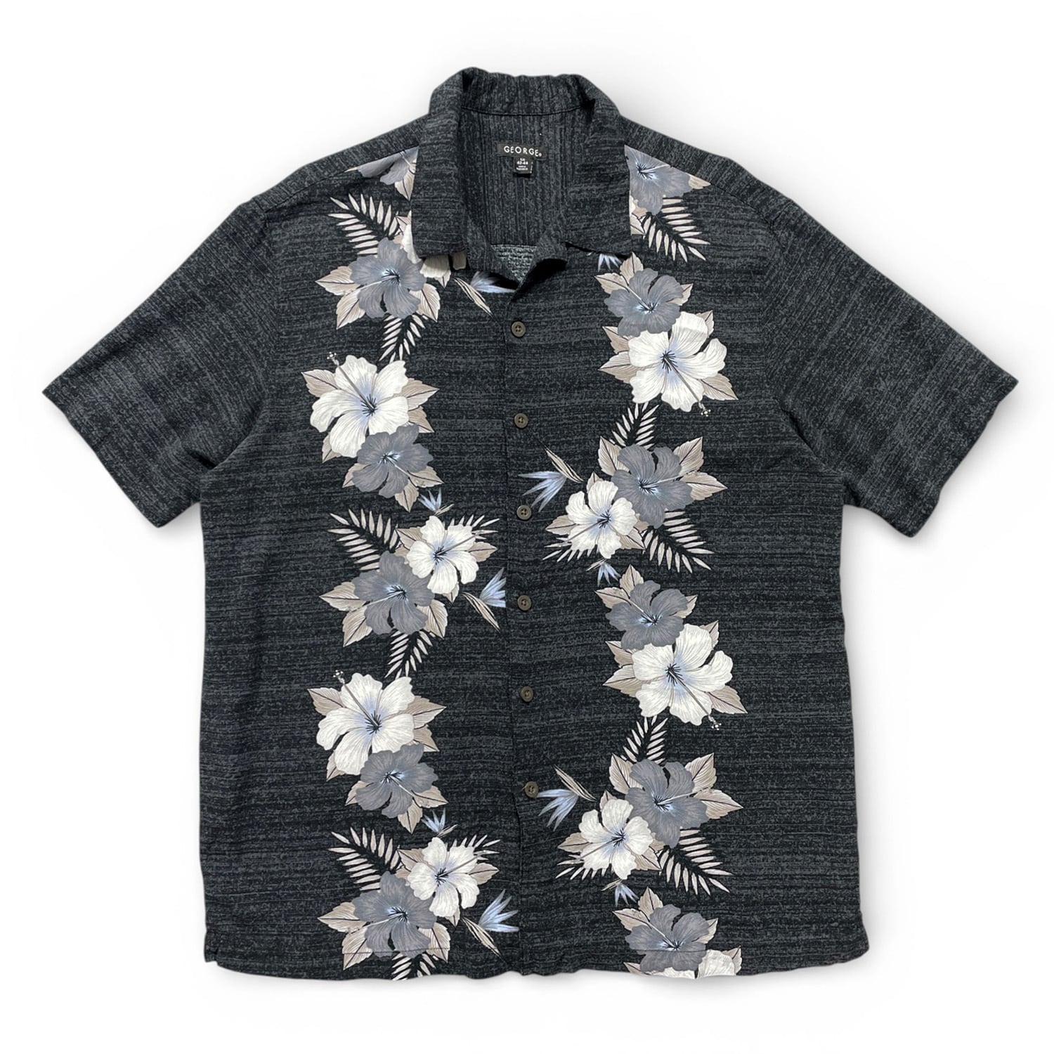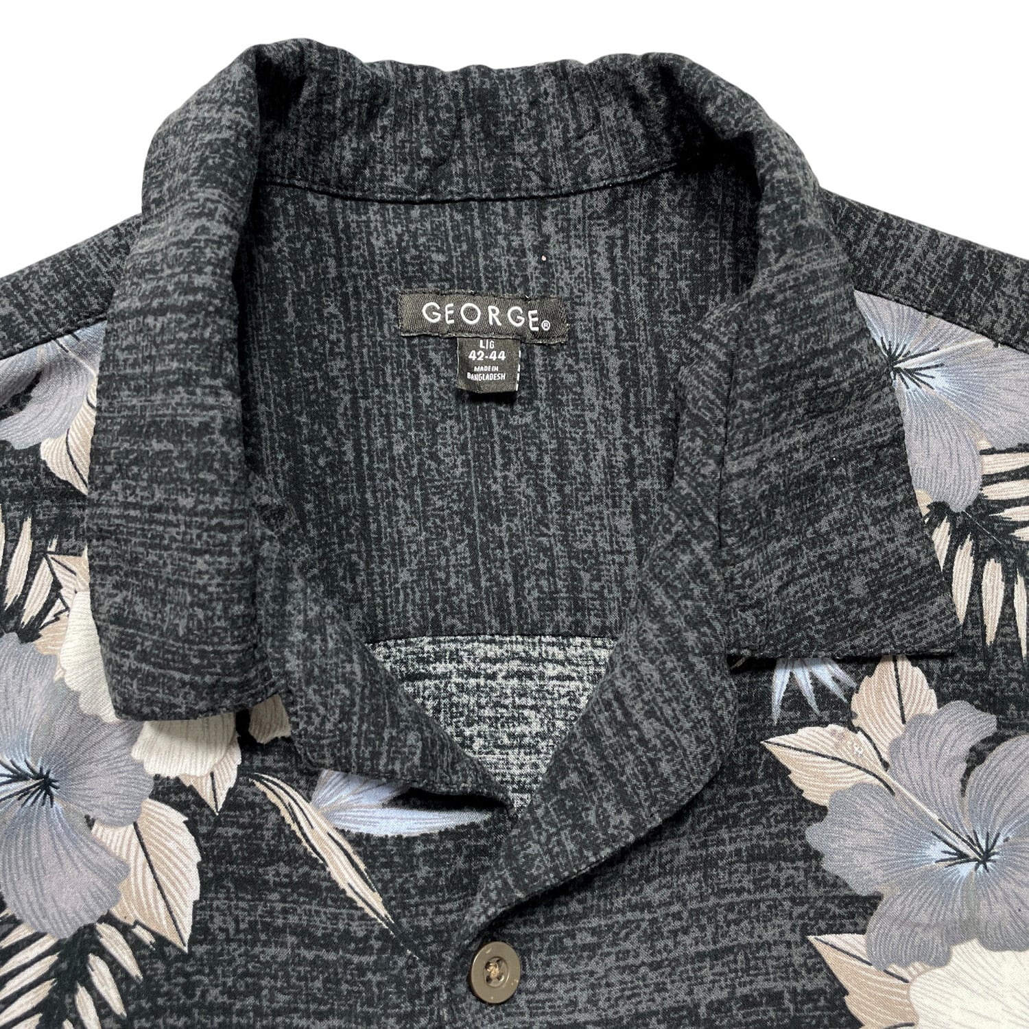 USA 古着 GEORGE ジョージ レーヨン 開襟 ハワイアンシャツ アロハシャツ ハイビスカス柄 メンズL BF3873