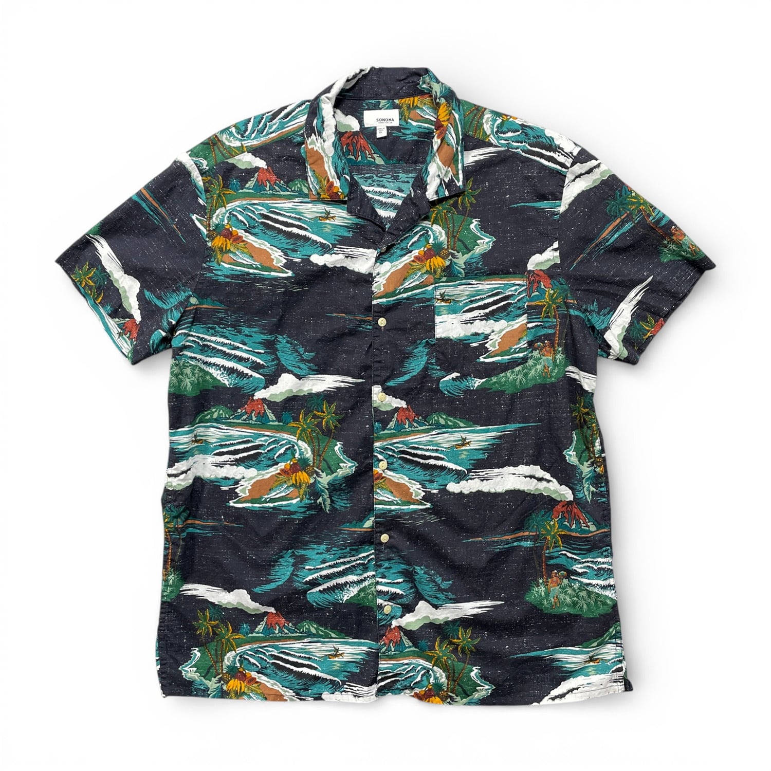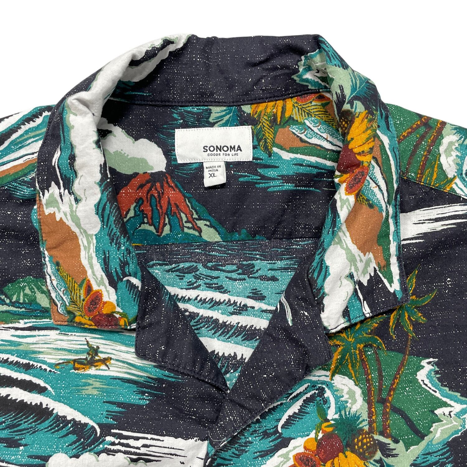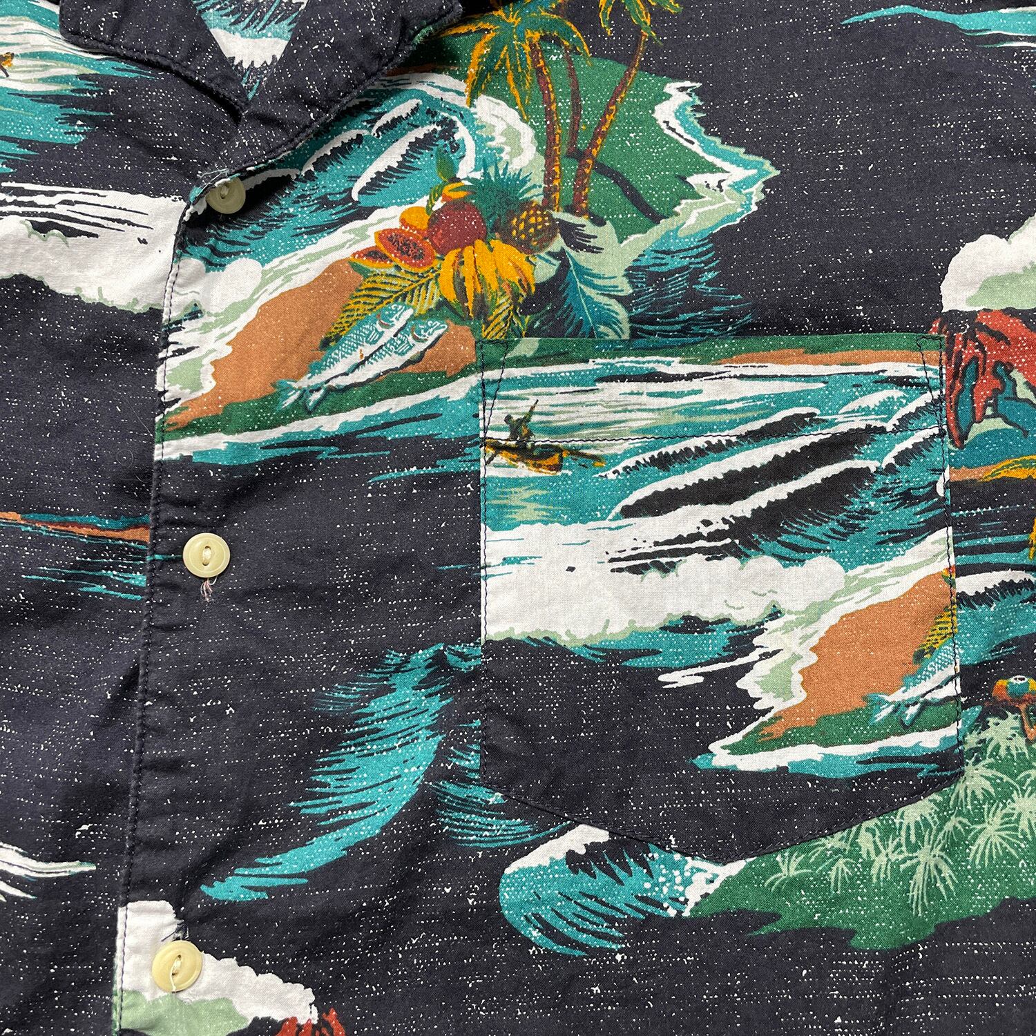 USA 古着 SONOMA ソノマ コットン 開襟 ハワイアンシャツ アロハシャツ メンズXL ブラック BF3877