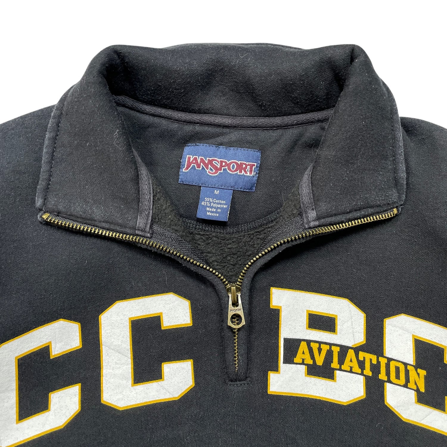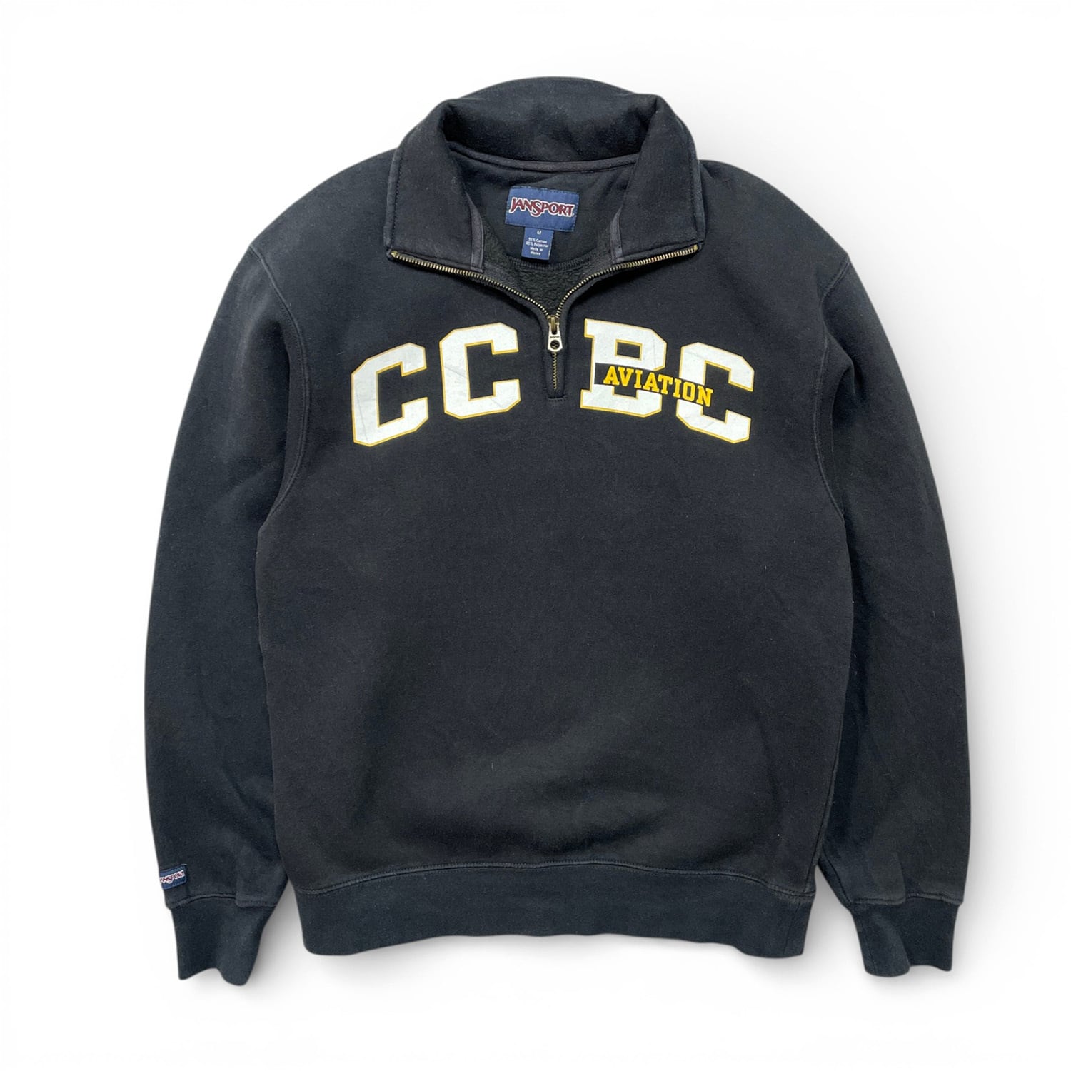USA 古着 JANSPORT ジャンスポーツ ビーバーカウンティ大学 ハーフジップ スウェット トレーナー プリント メンズM ブラック BD3680