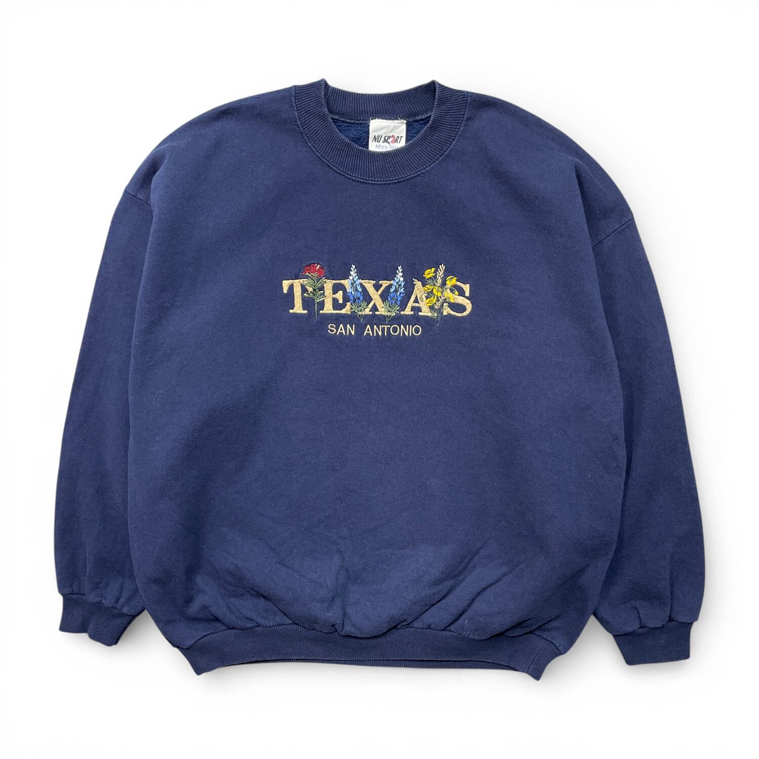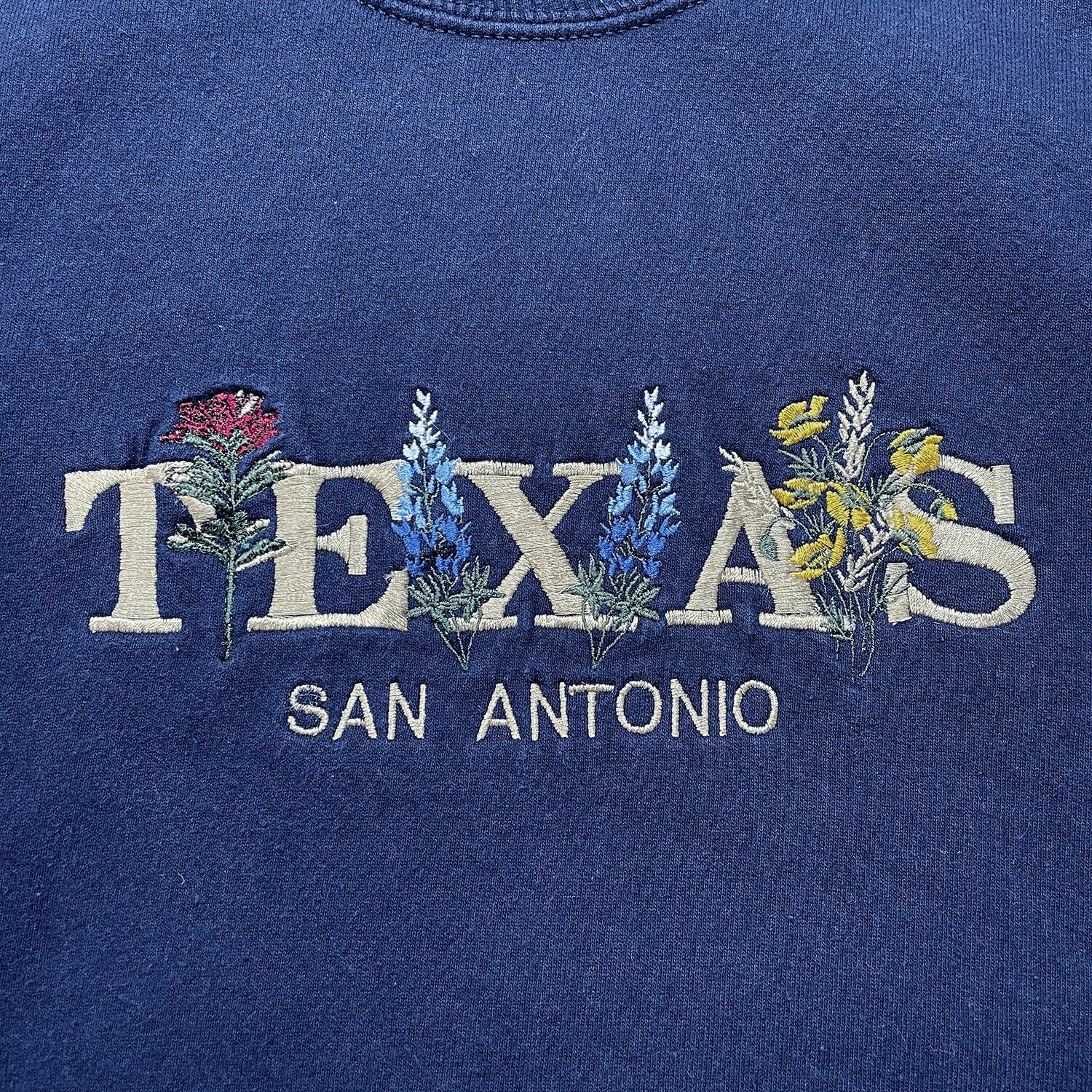 USA 古着 NU SPORT TEXAS SAN ANTONIO テキサス サンアントニオ クルーネック スウェット トレーナー 花柄 刺繍 メンズXL ネイビー BD3686