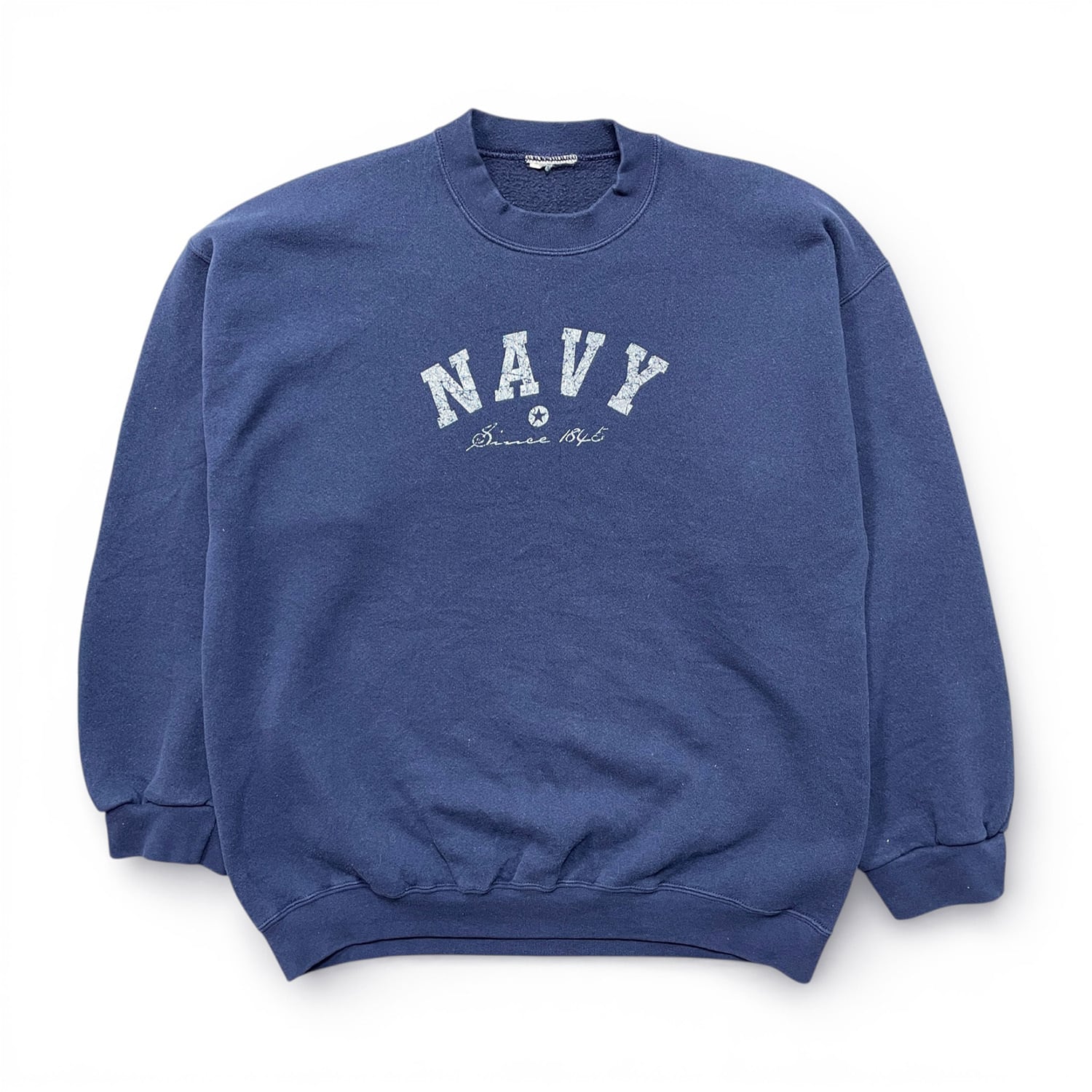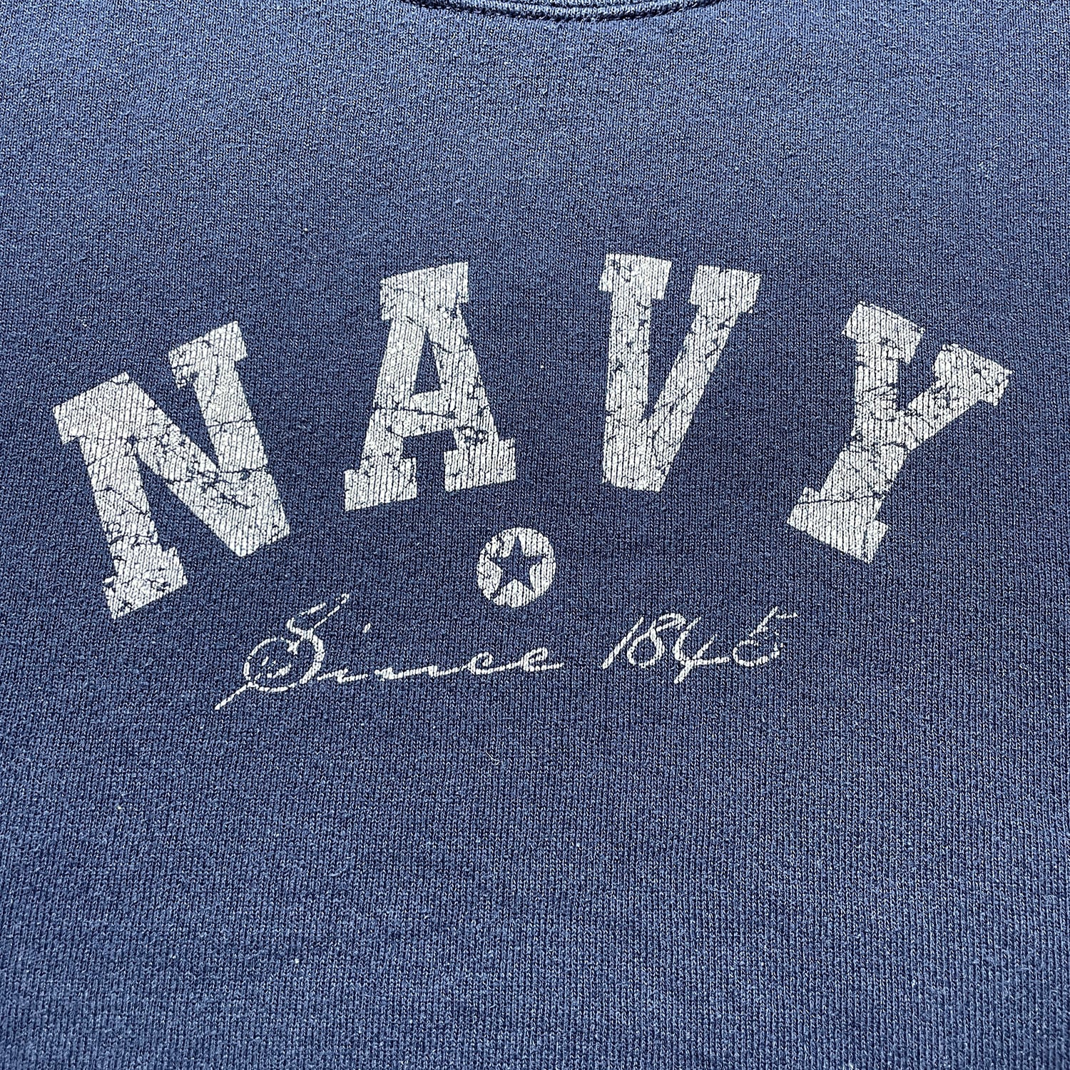 USA 古着 NAVY 海軍 ミリタリー クルーネック スウェット トレーナー プリント メンズ XL相当 ネイビー BD3688