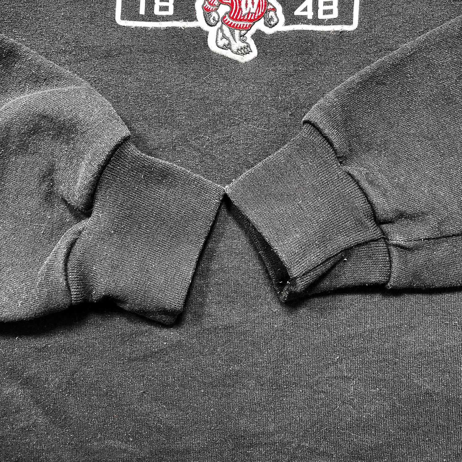 USA 古着 Champion チャンピオン ウィスコンシン大学 カレッジ バッキー君 クルーネック スウェット トレーナー プリント メンズXL ブラック BD3690