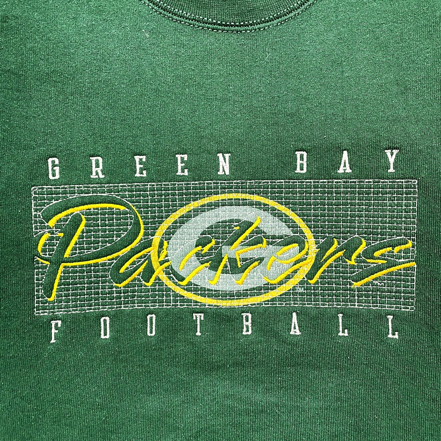 古着 USA製 90S GREEN BAY PACKERS グリーンベイパッカーズ クルーネック スウェット トレーナー 刺繍 メンズL グリーン BD2505