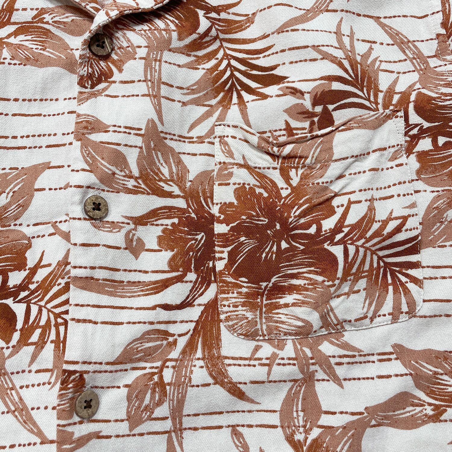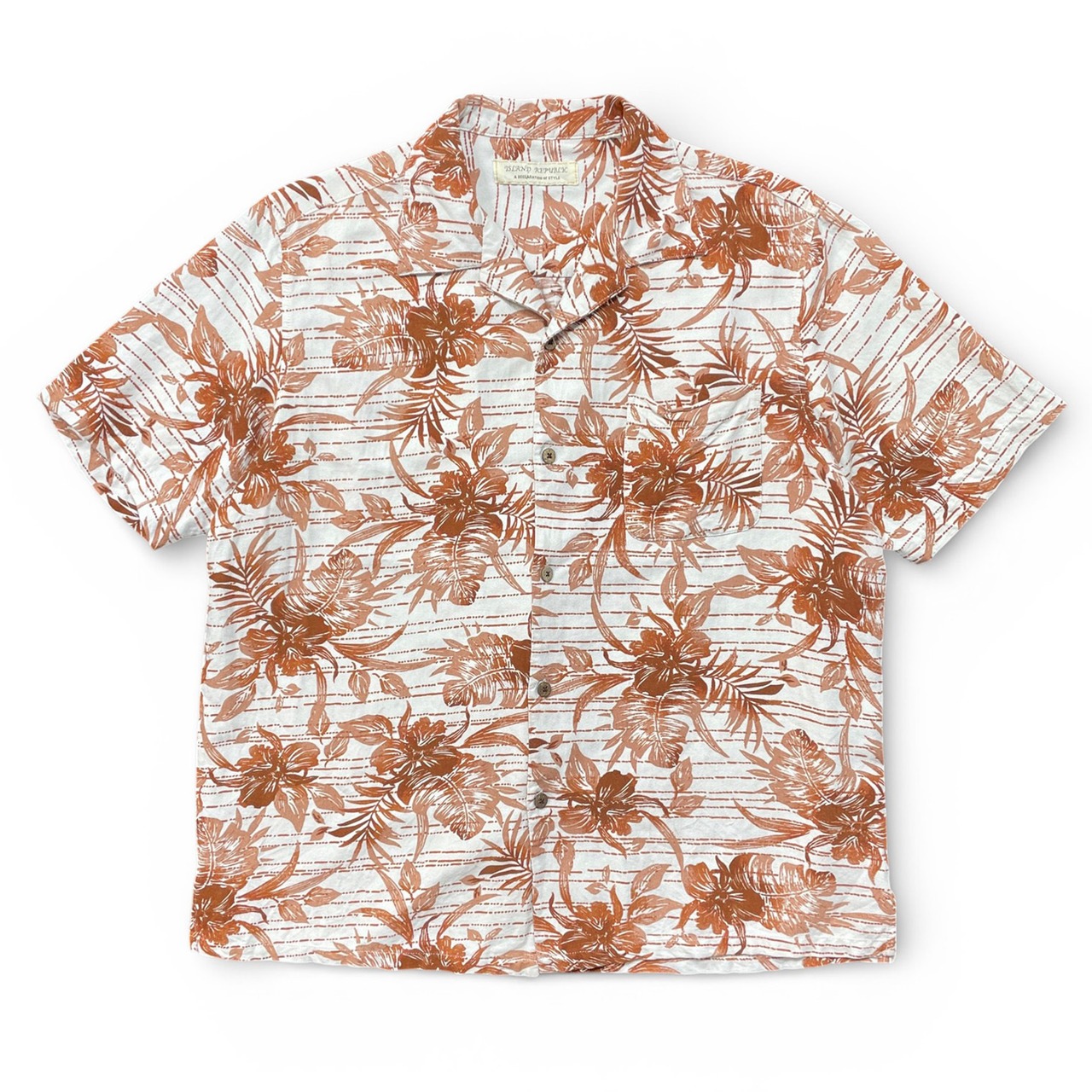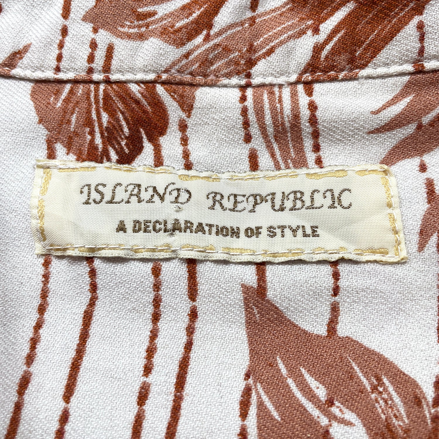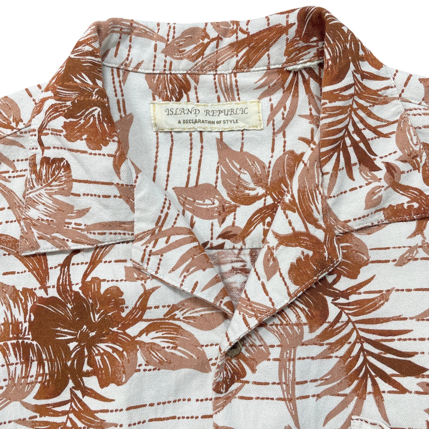 USA 古着 ISLAND REPUBLIC アイランドリパブリック レーヨン 開襟 アロハシャツ ハワイアンシャツ ハイビスカス柄 メンズL ホワイト BF3921
