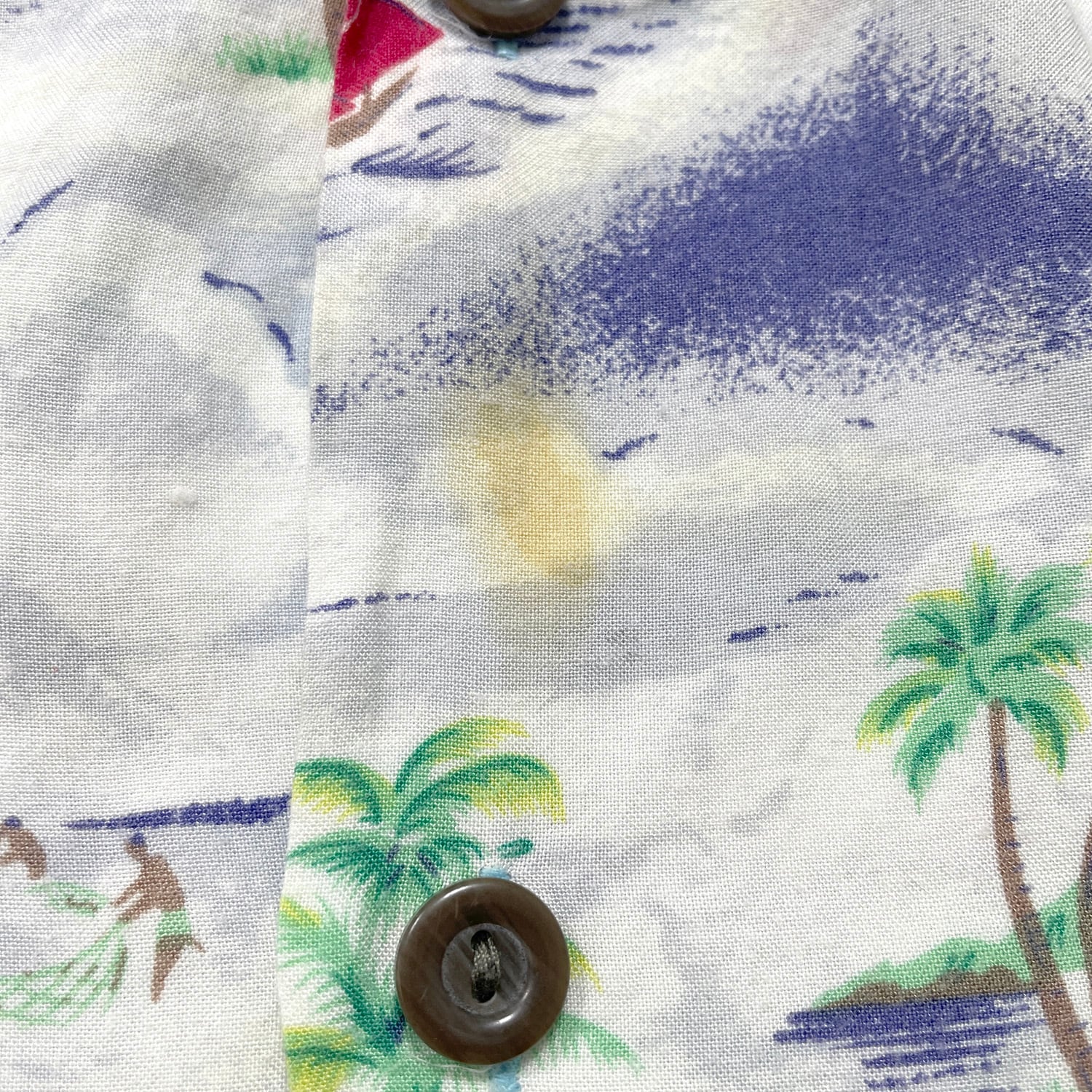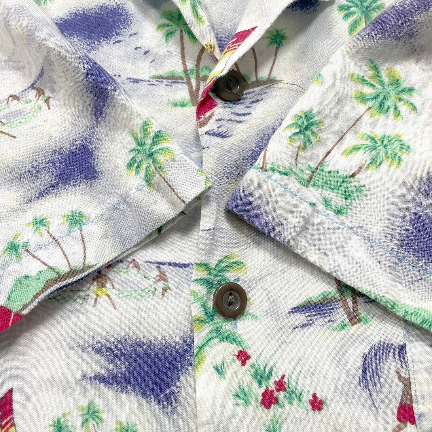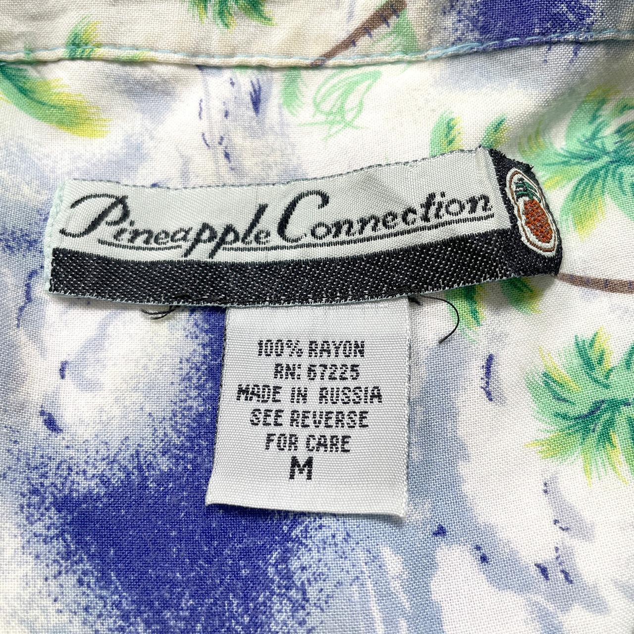 USA 古着 Pineapple Connection パイナップルコネクション レーヨン 開襟 アロハシャツ ハワイアンシャツ 総柄 サーフィン柄 メンズM ホワイト BF3927