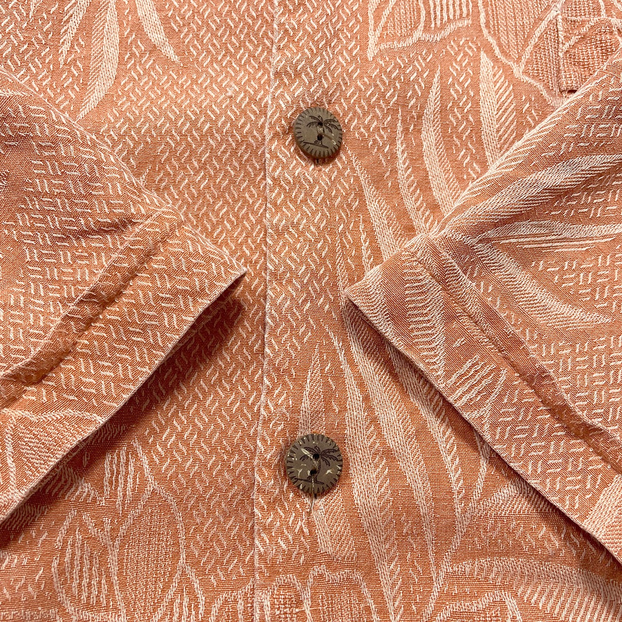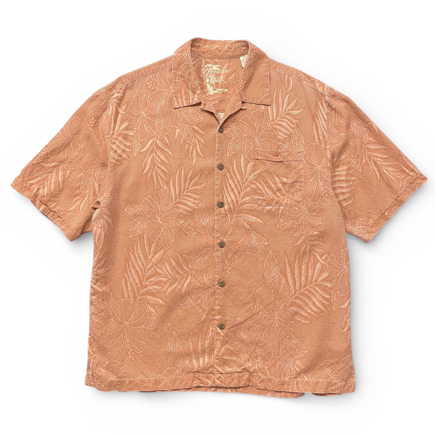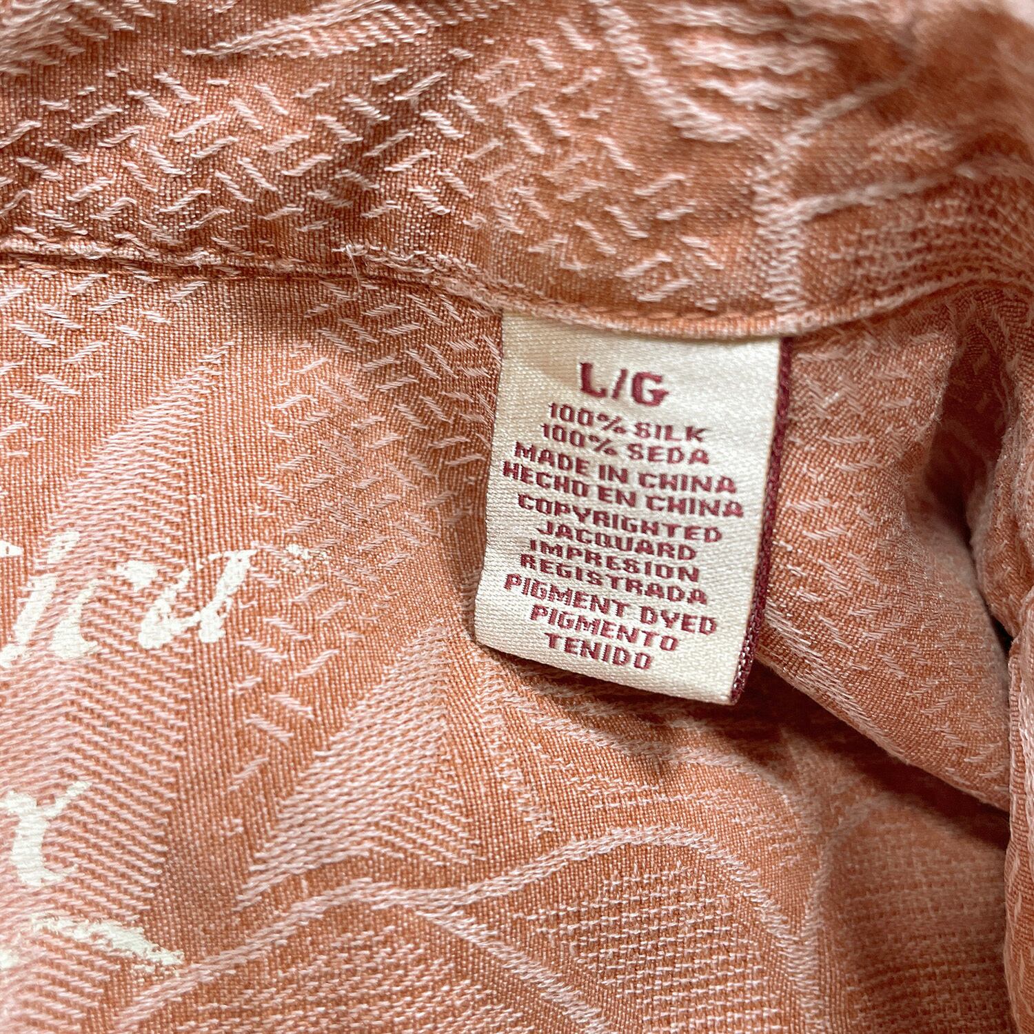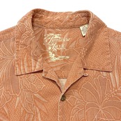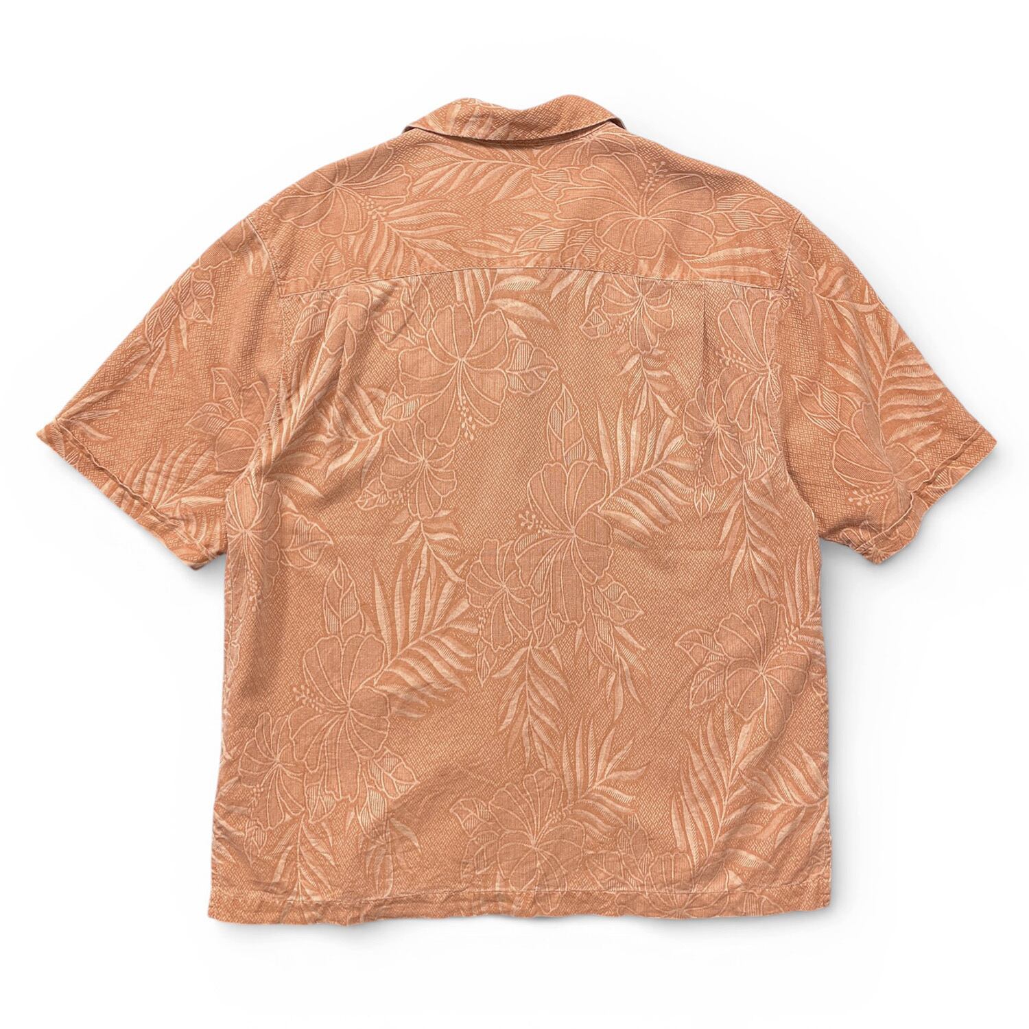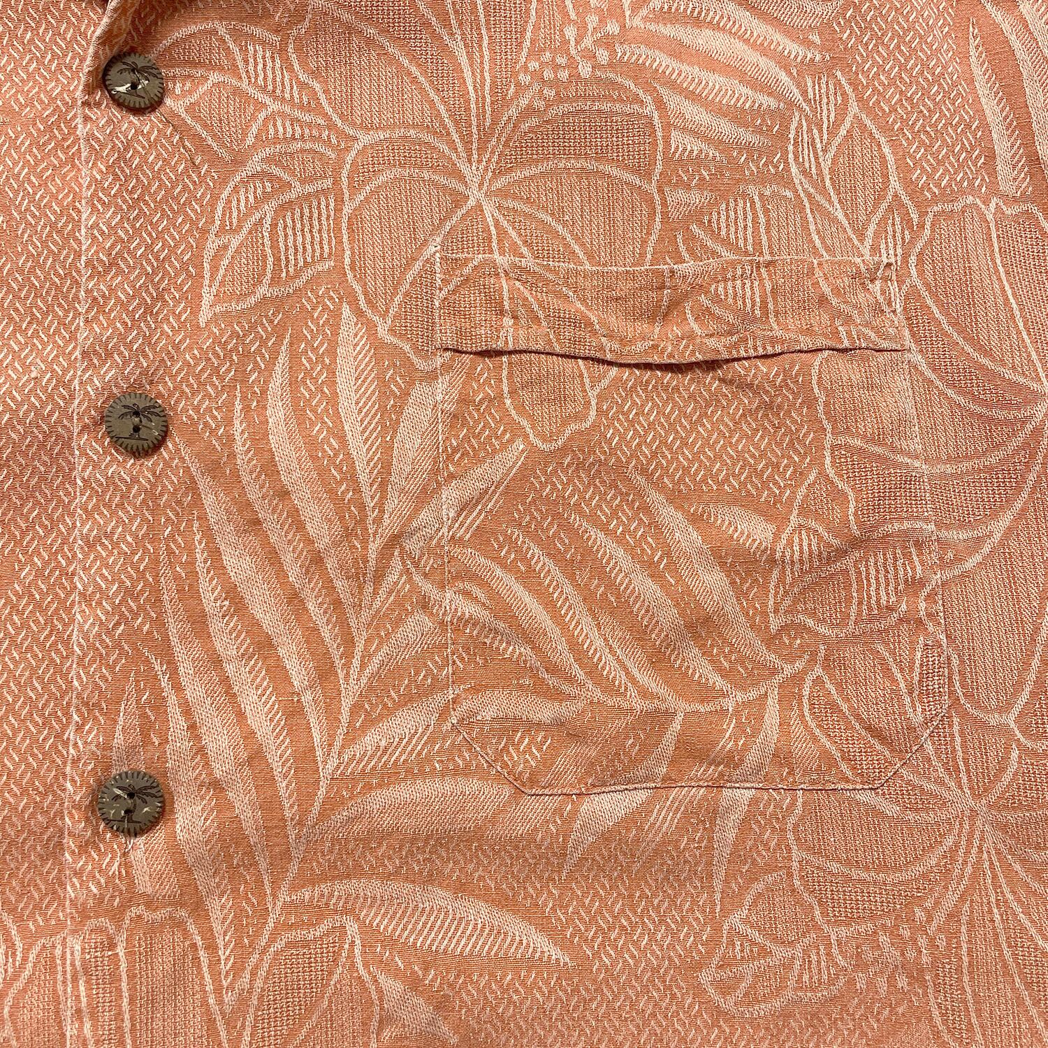 USA 古着 Jamaica Jaxx ジャマイカジャックス シルク 開襟 アロハシャツ ハワイアンシャツ ジャガード ハイビスカス柄 メンズL オレンジ BF3895