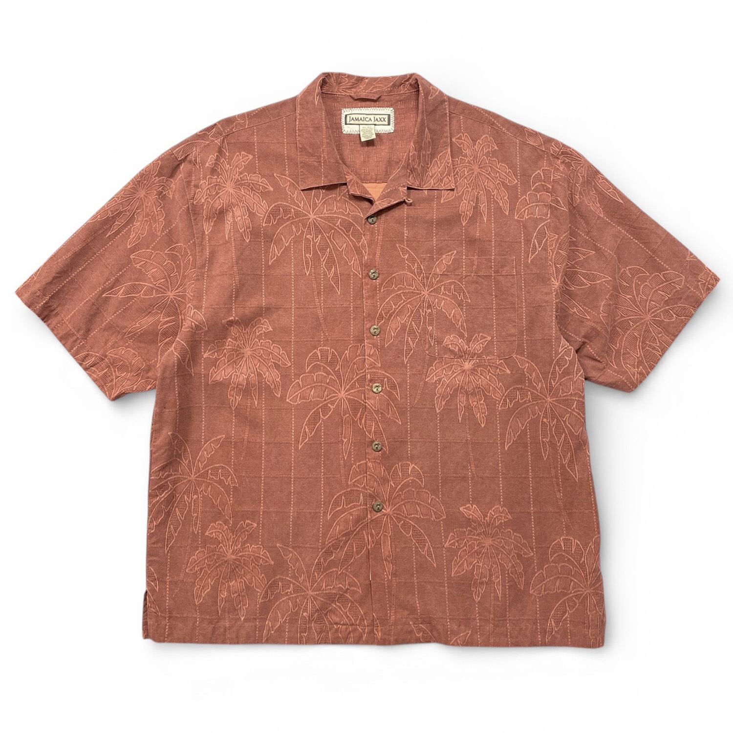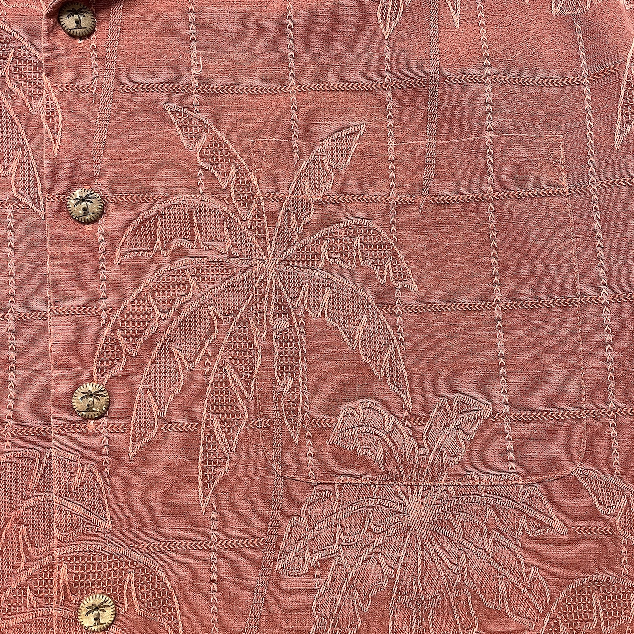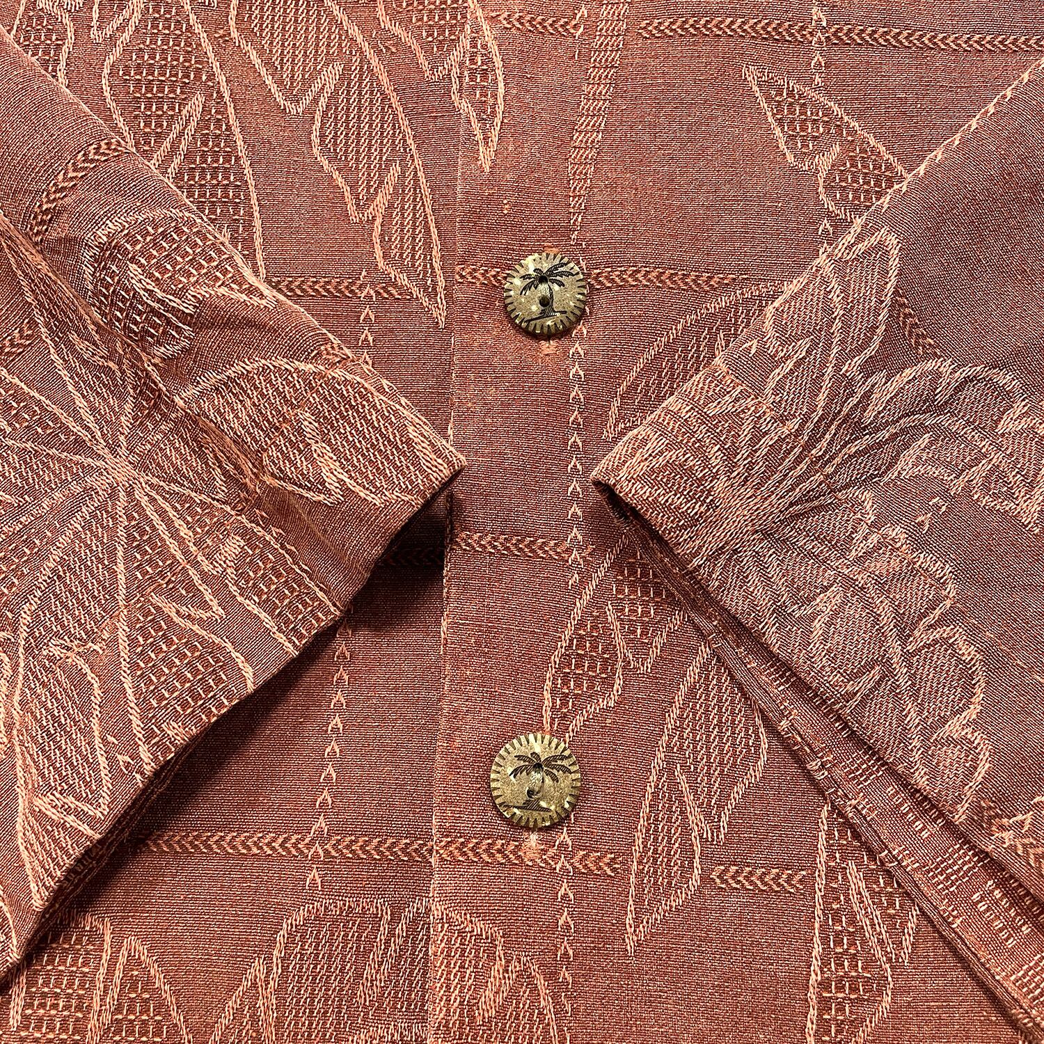 USA 古着 JAMAICA JAXX ジャマイカジャックス シルク 開襟 アロハシャツ ハワイアンシャツ ジャガード パームツリー柄 ヤシの木 メンズXL マルーン BF3898