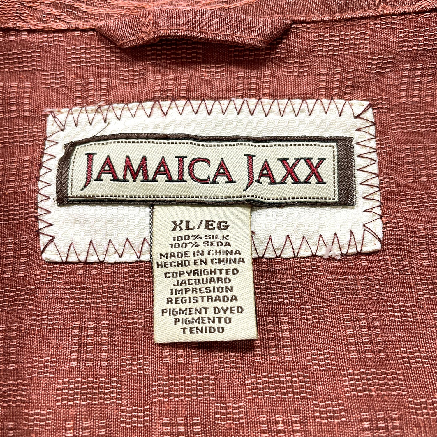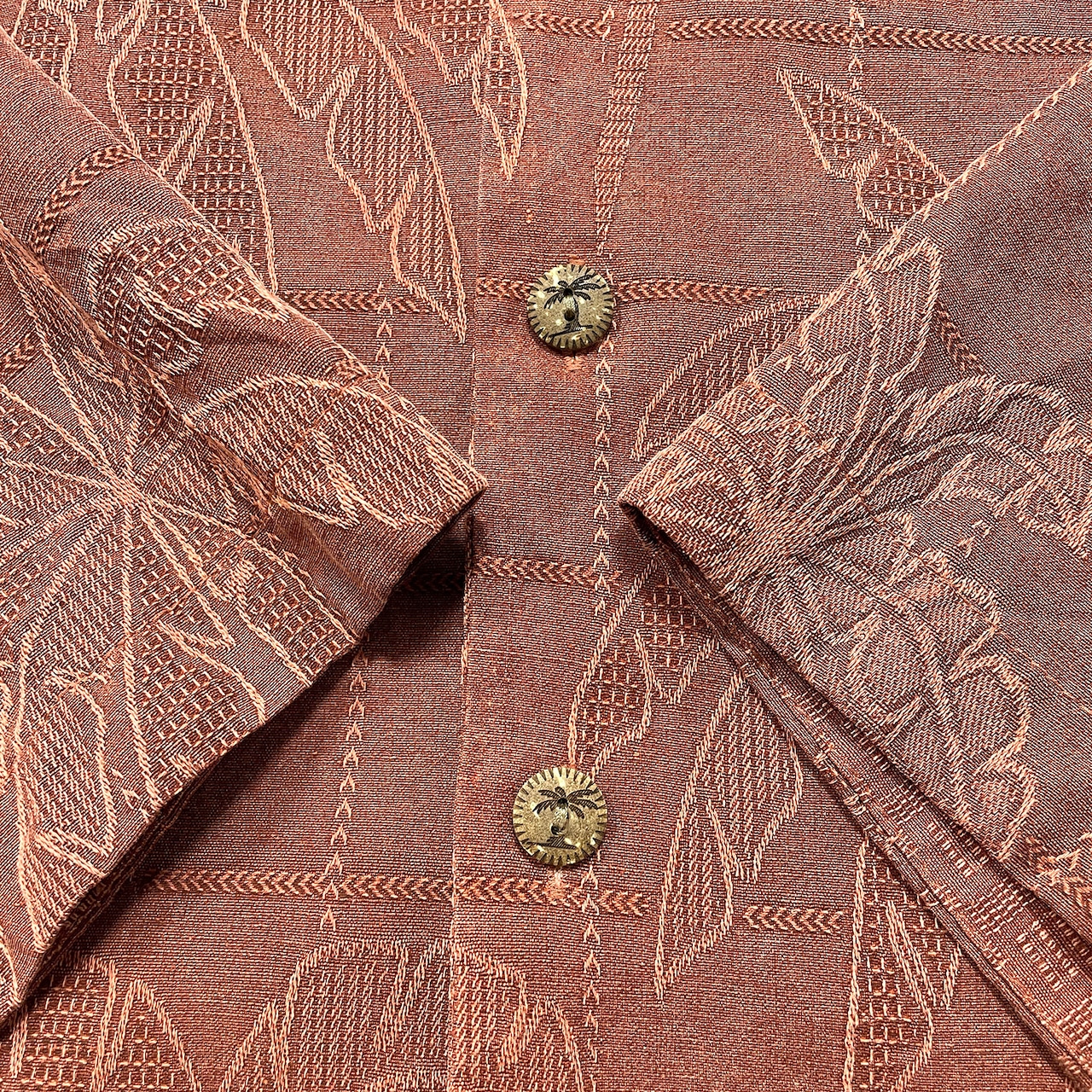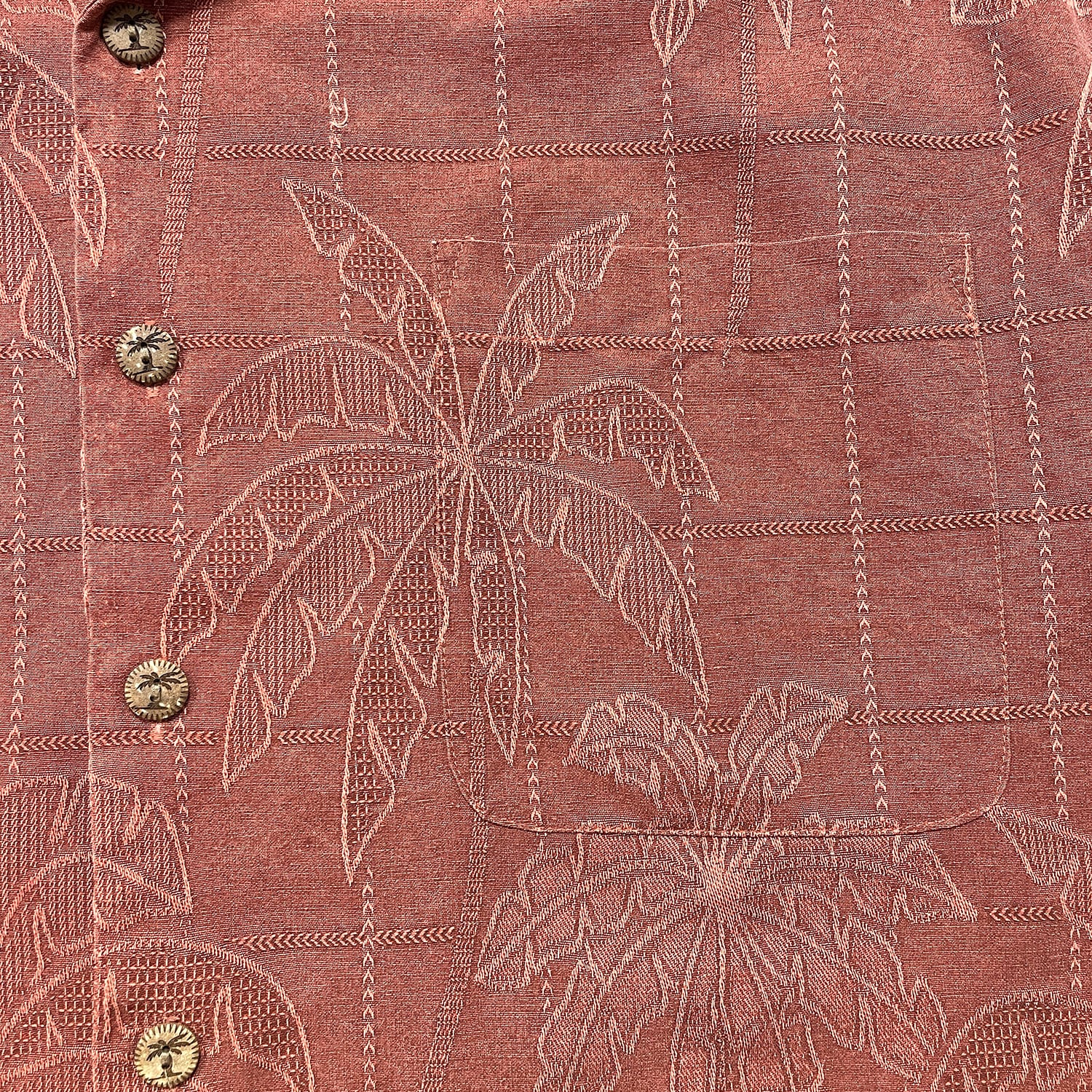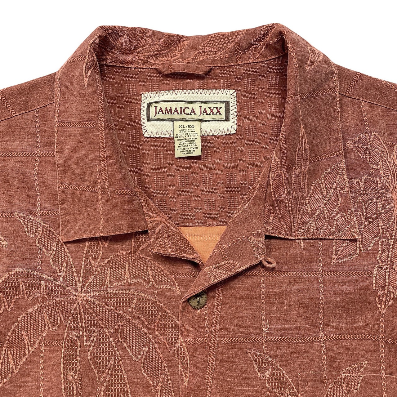 USA 古着 JAMAICA JAXX ジャマイカジャックス シルク 開襟 アロハシャツ ハワイアンシャツ ジャガード パームツリー柄 ヤシの木 メンズXL マルーン BF3898