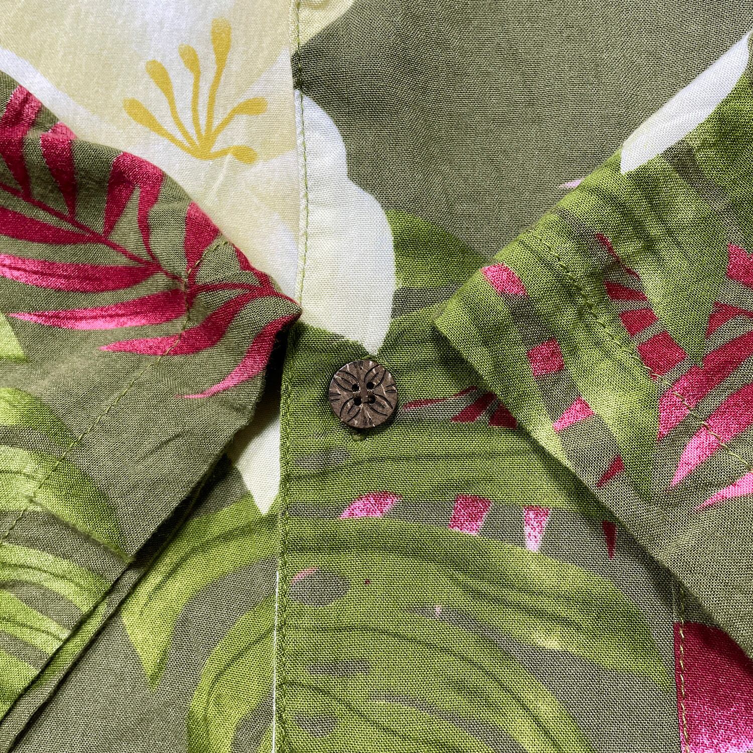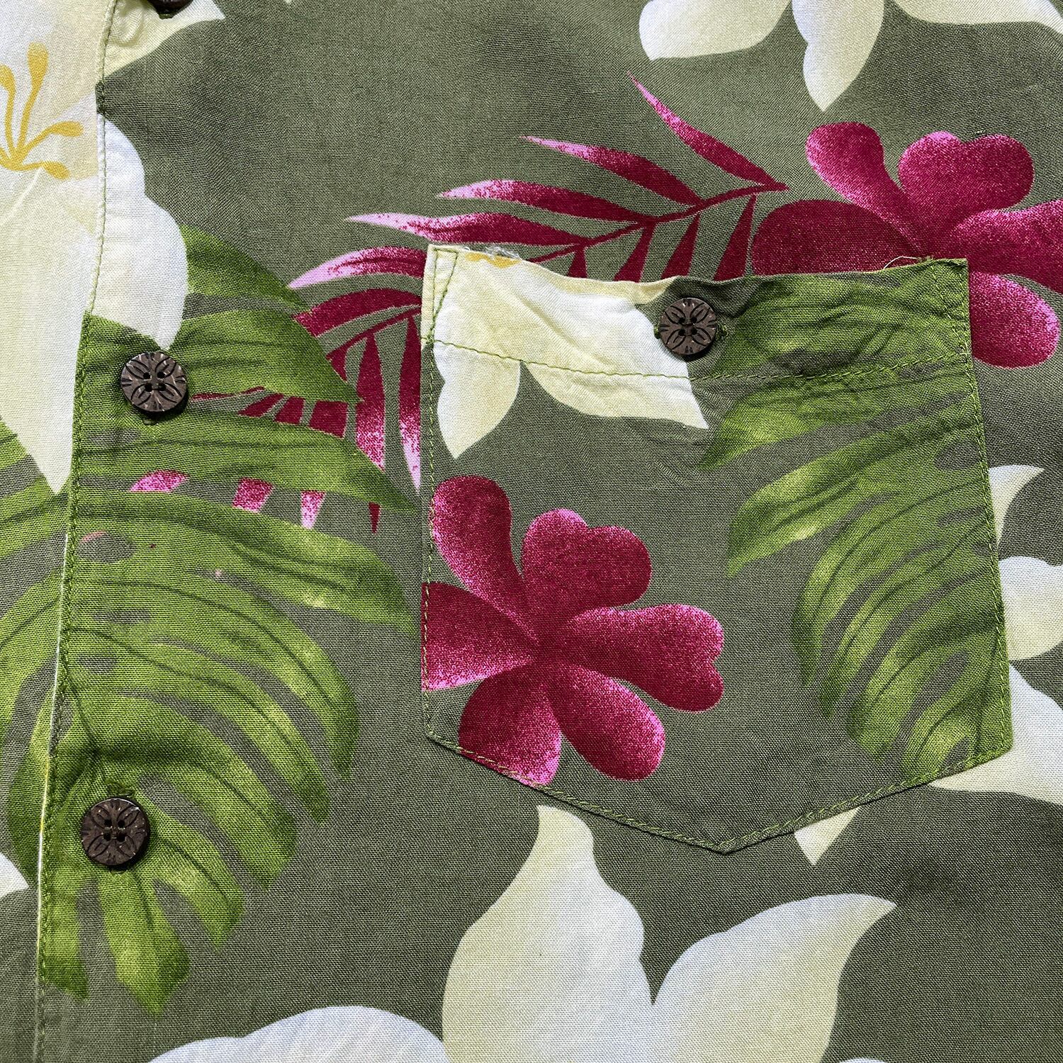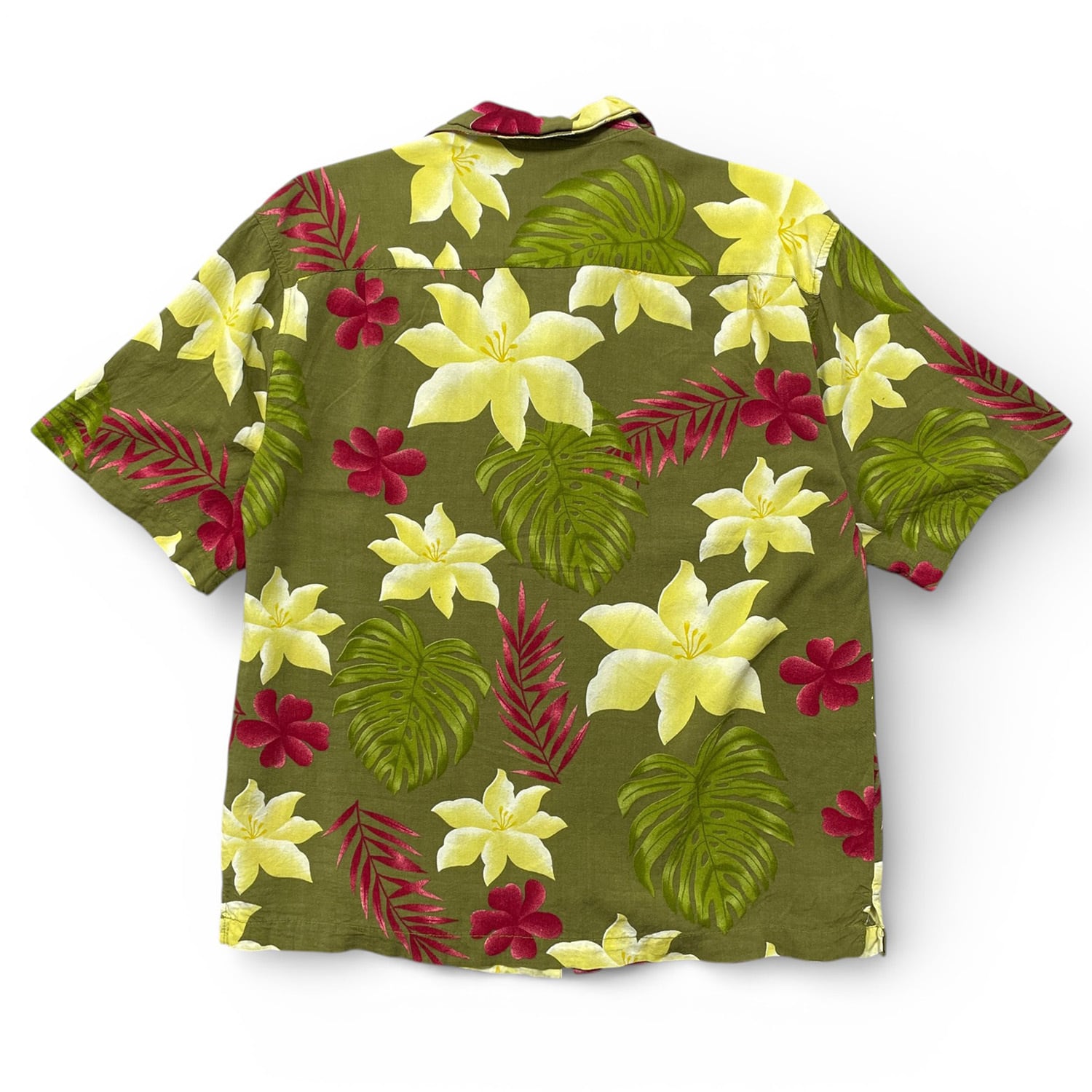 USA 古着 S&D Bahamas S&Dバハマ レーヨン 開襟 アロハシャツ ハワイアンシャツ 花柄 モンステラ柄 メンズM オリーブ BF3902