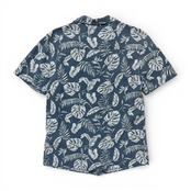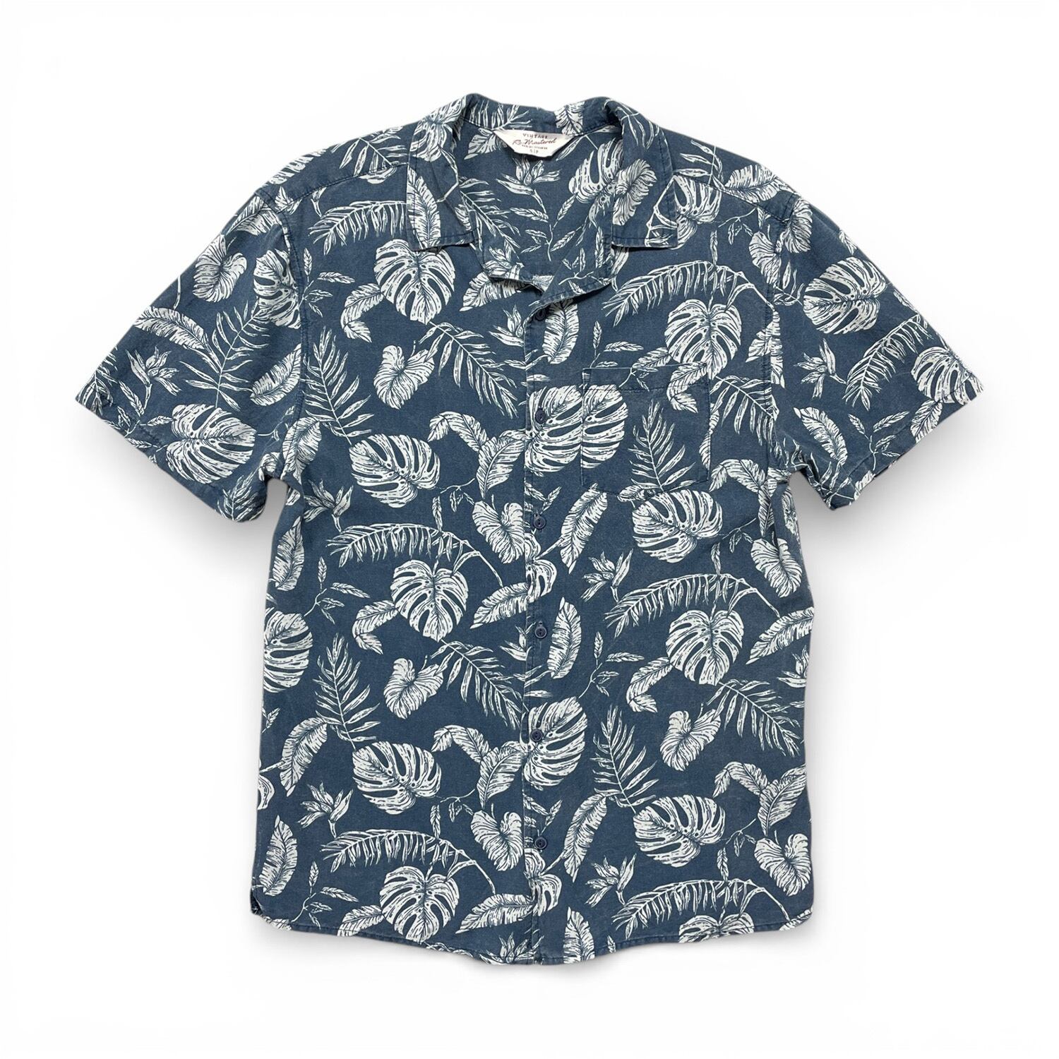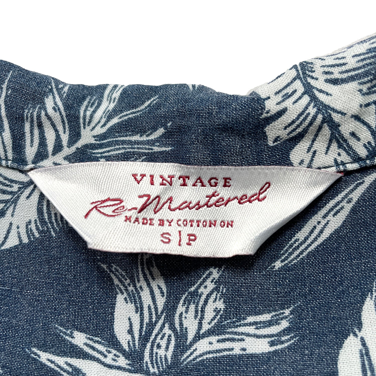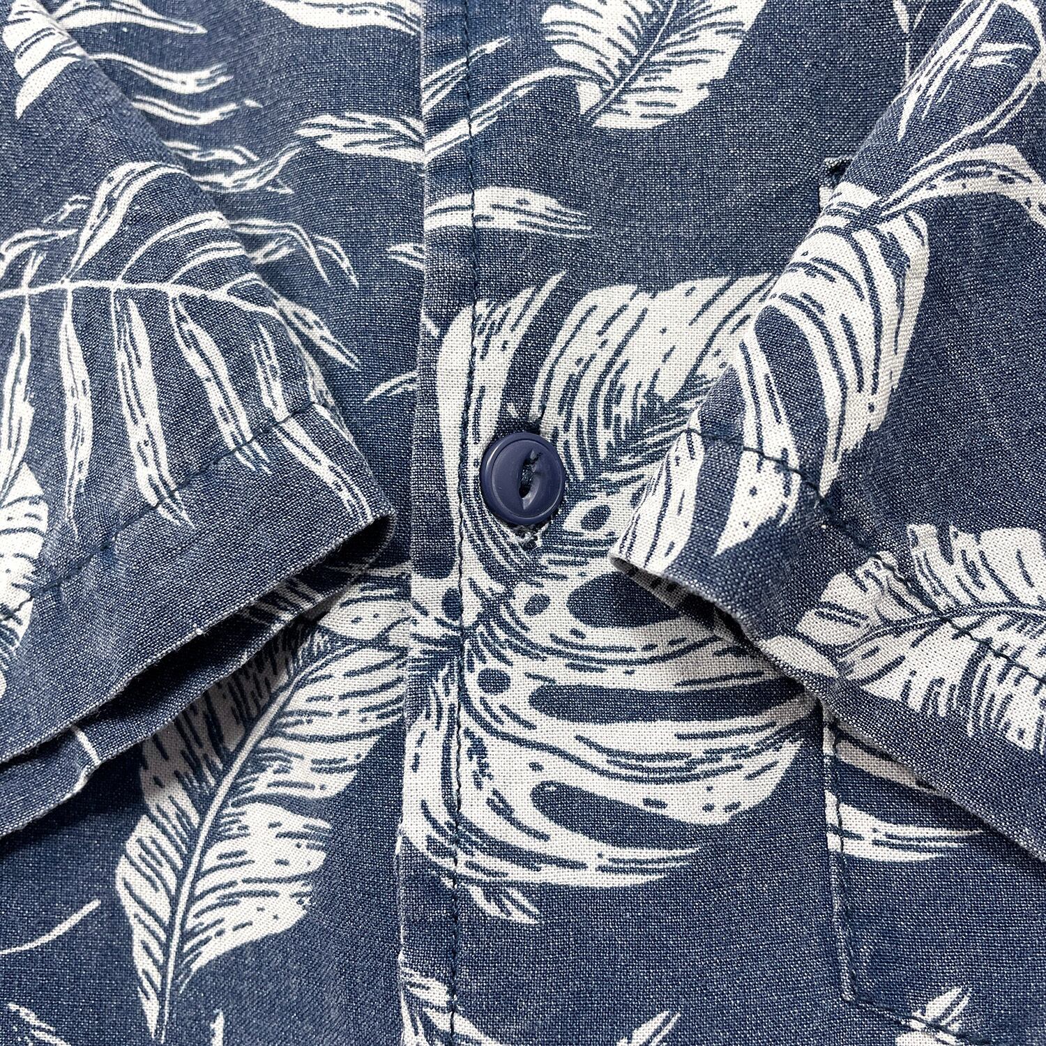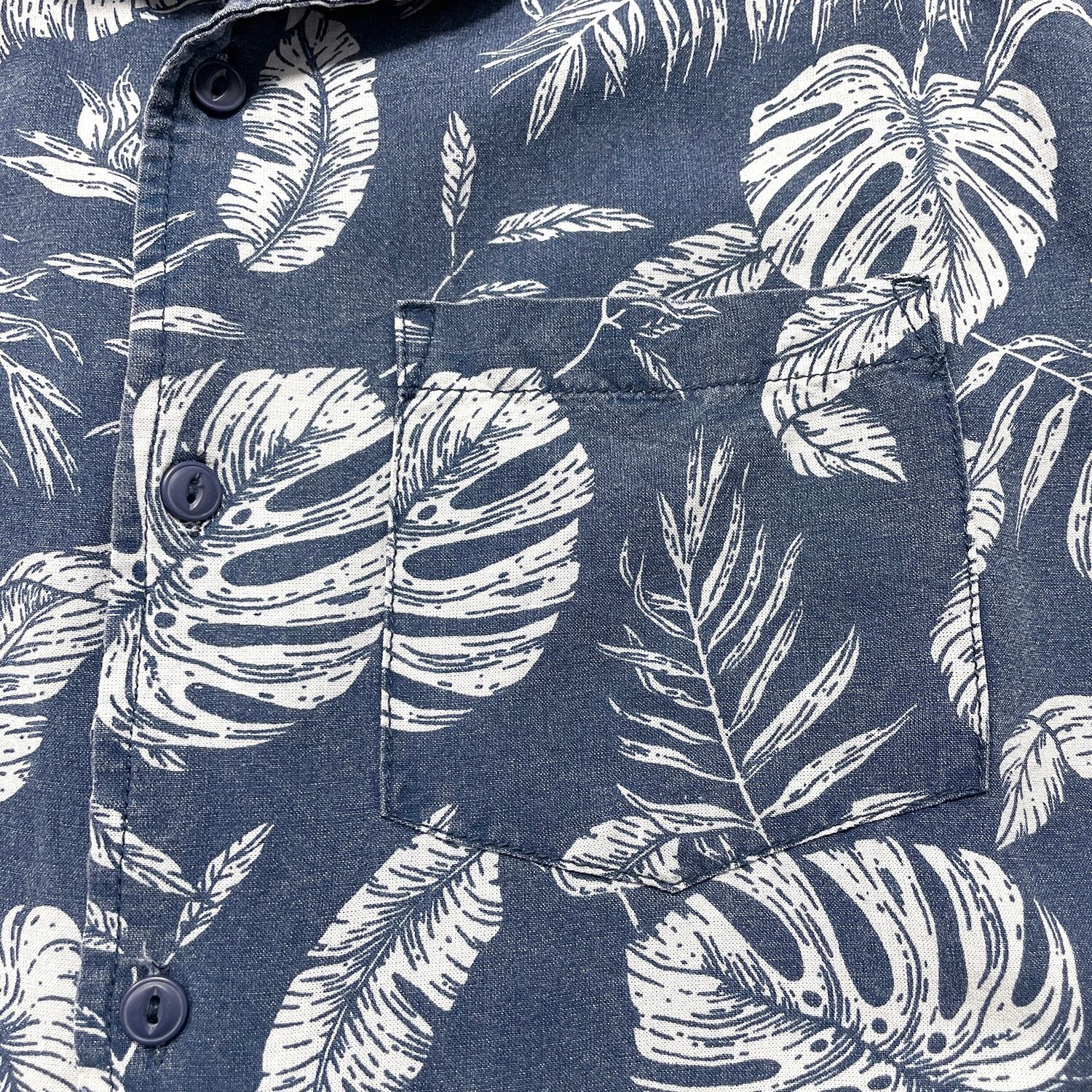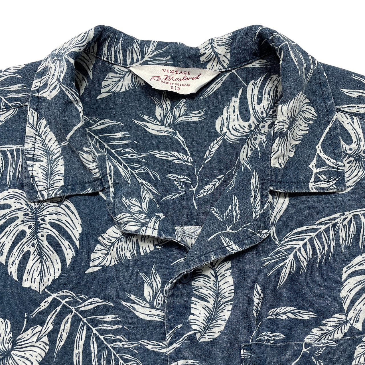 USA 古着 COTTON ON コットンオン ヴィスコース 開襟 アロハシャツ ハワイアンシャツ ボタニカル柄 モンステラ メンズS ネイビー BF3904