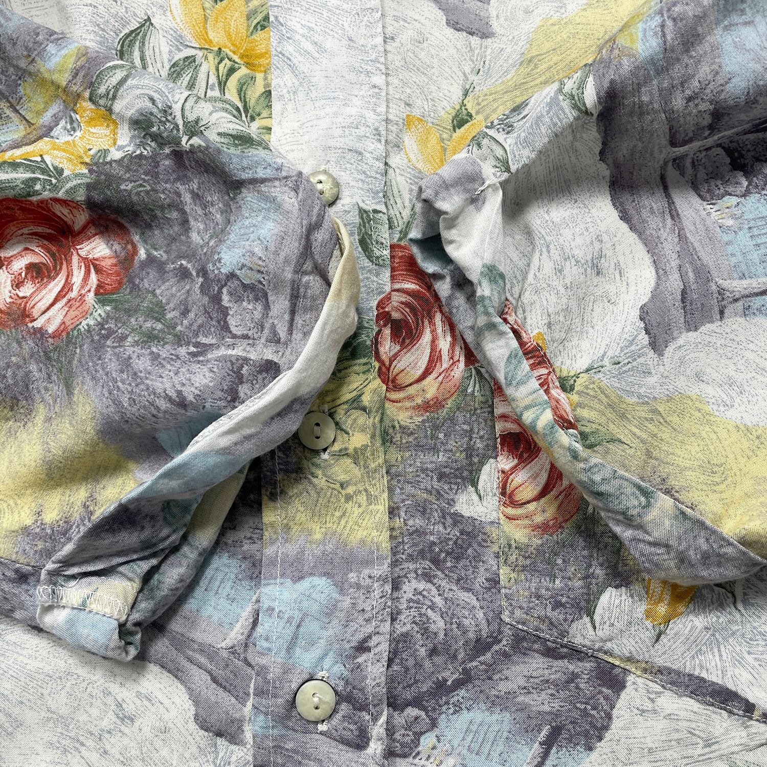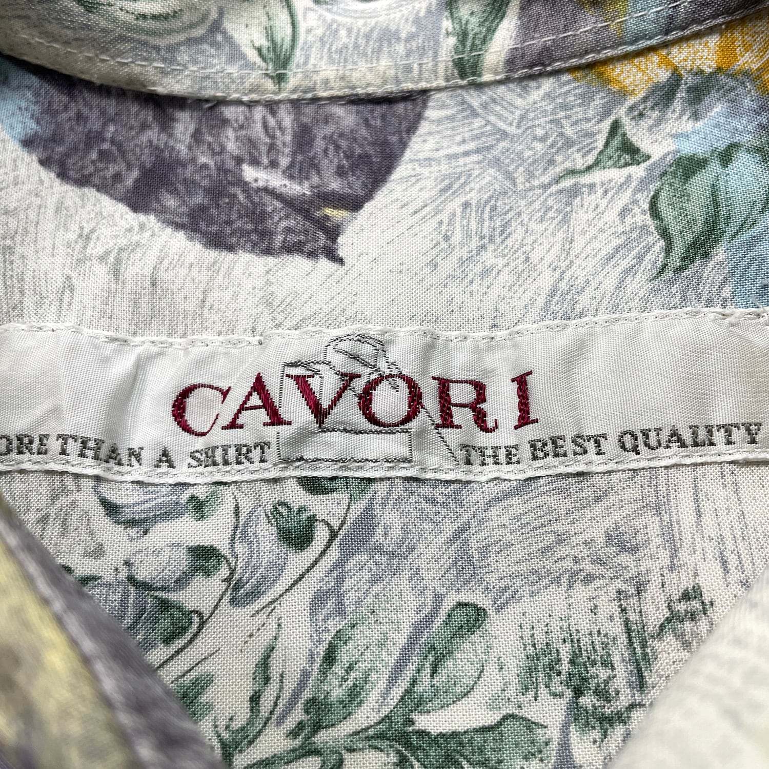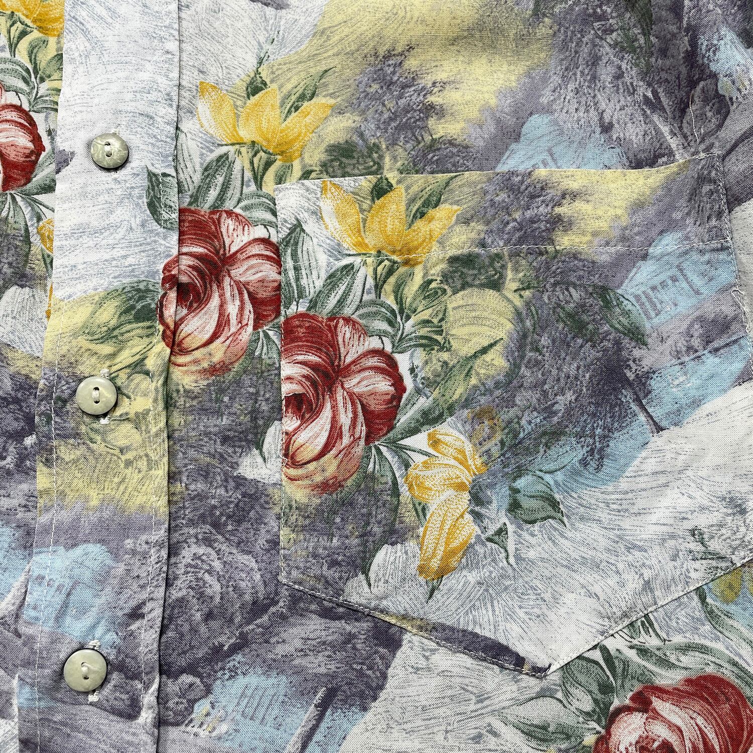 USA 古着 CAVORI カヴォリ レーヨン アロハシャツ ハワイアンシャツ 花柄 風景柄 ホワイト メンズM 程度 BF3893