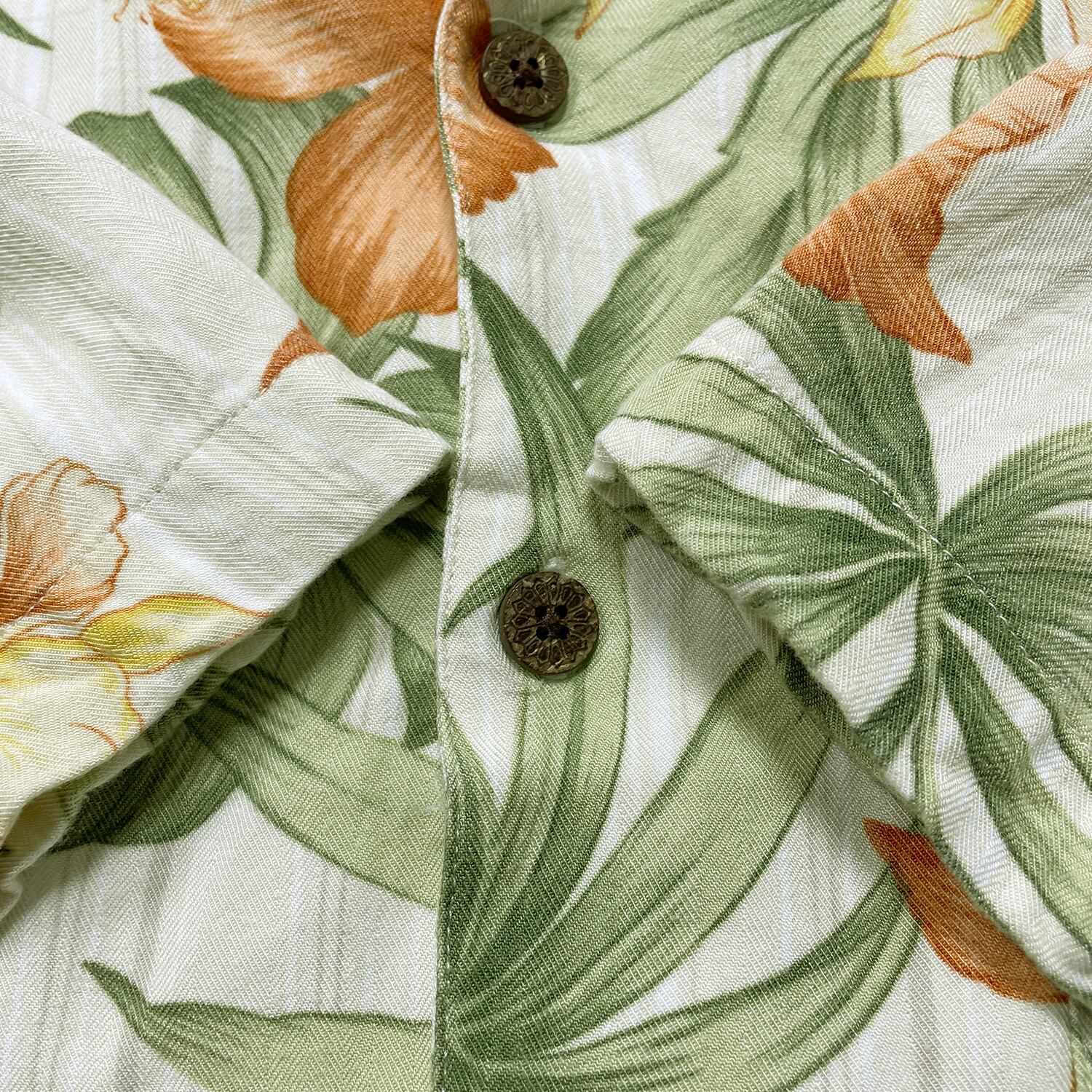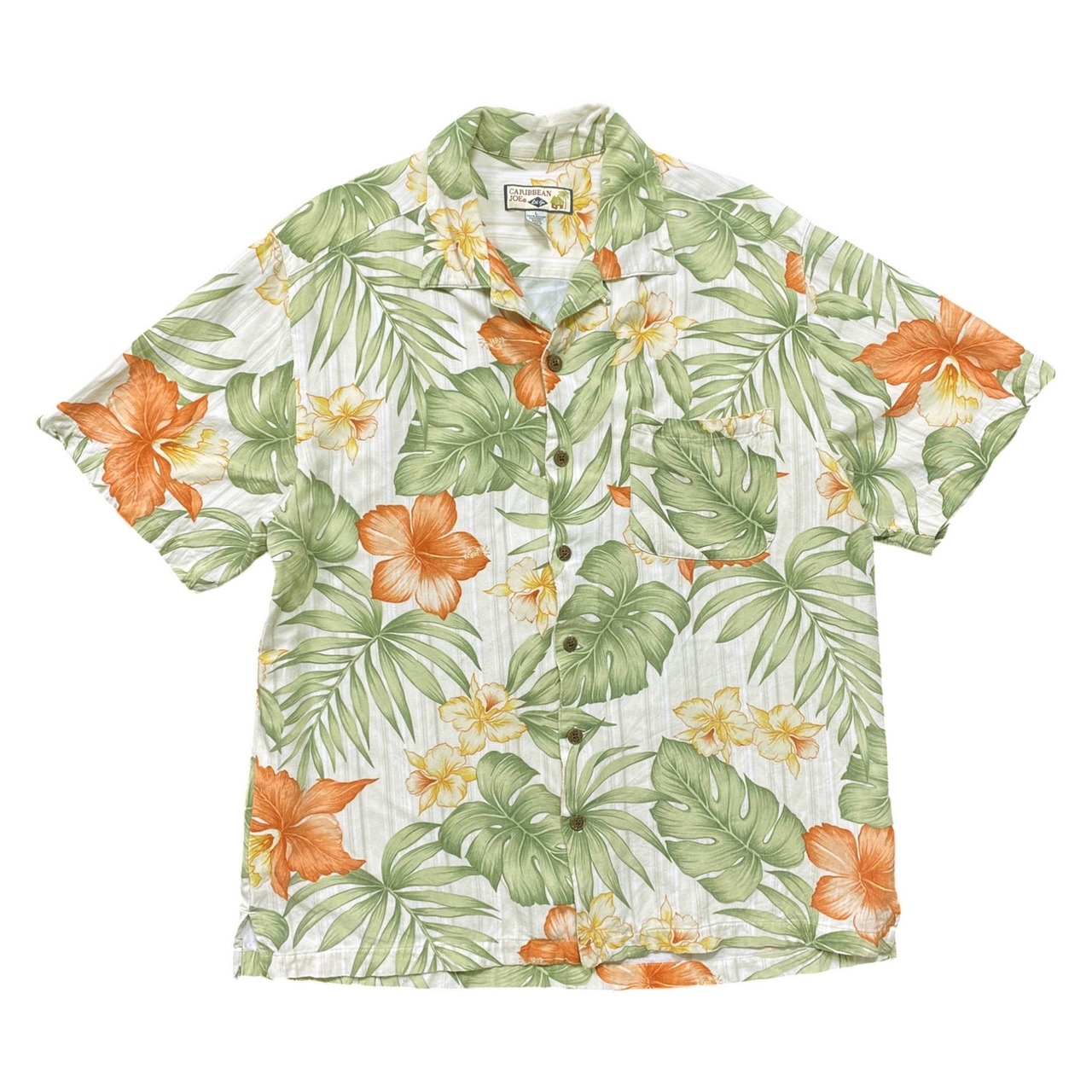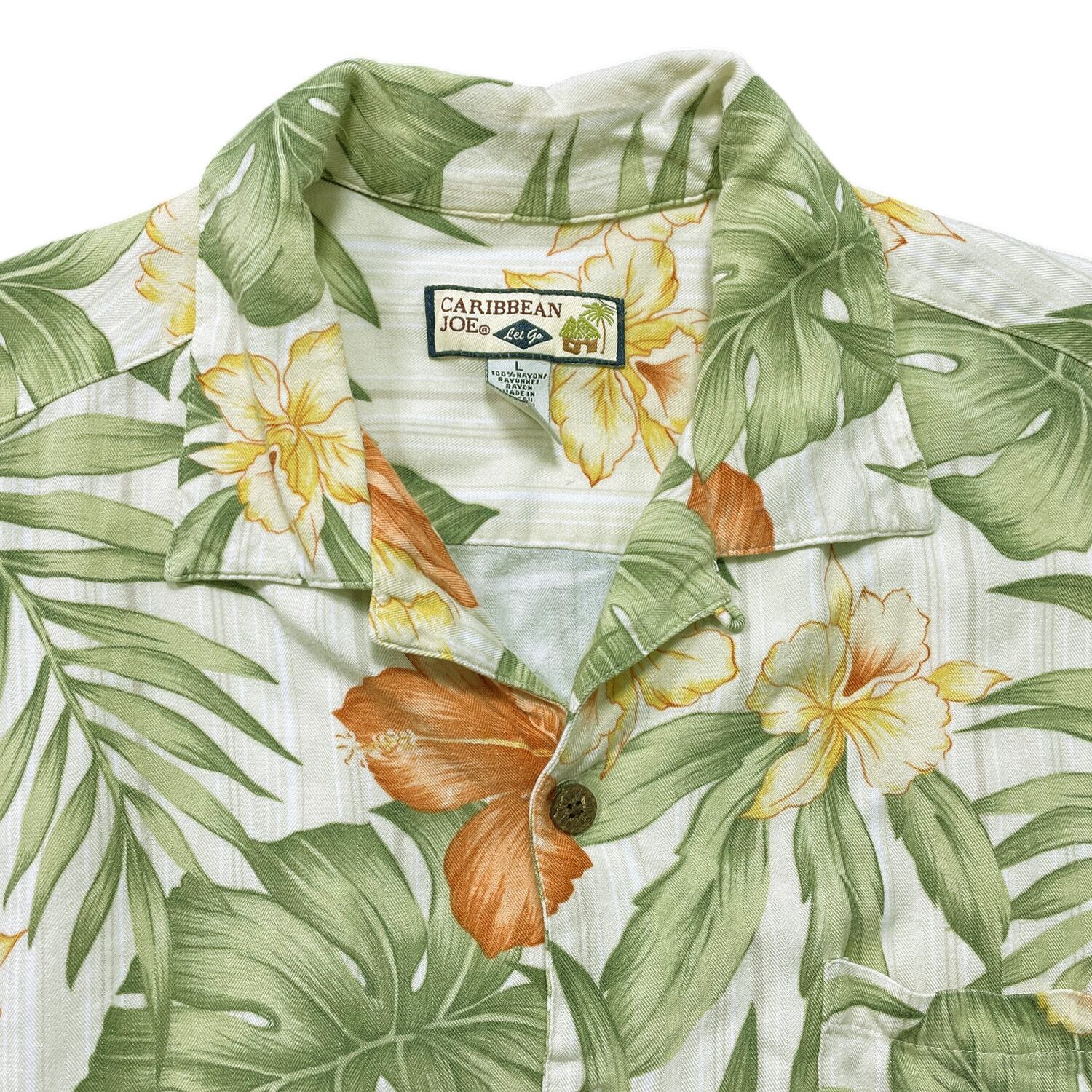 USA 古着 CARIBBEAN JOE カリビアンジョー レーヨン 開襟 アロハシャツ ハワイアンシャツ ハイビスカス柄 メンズL アイボリー BF3952