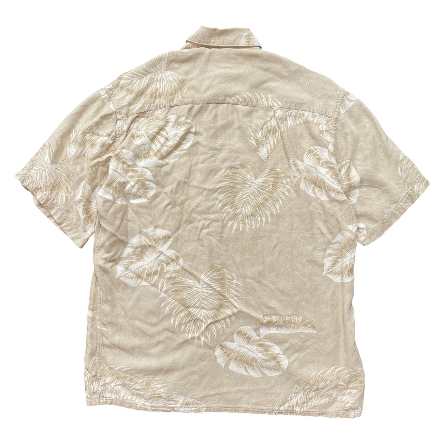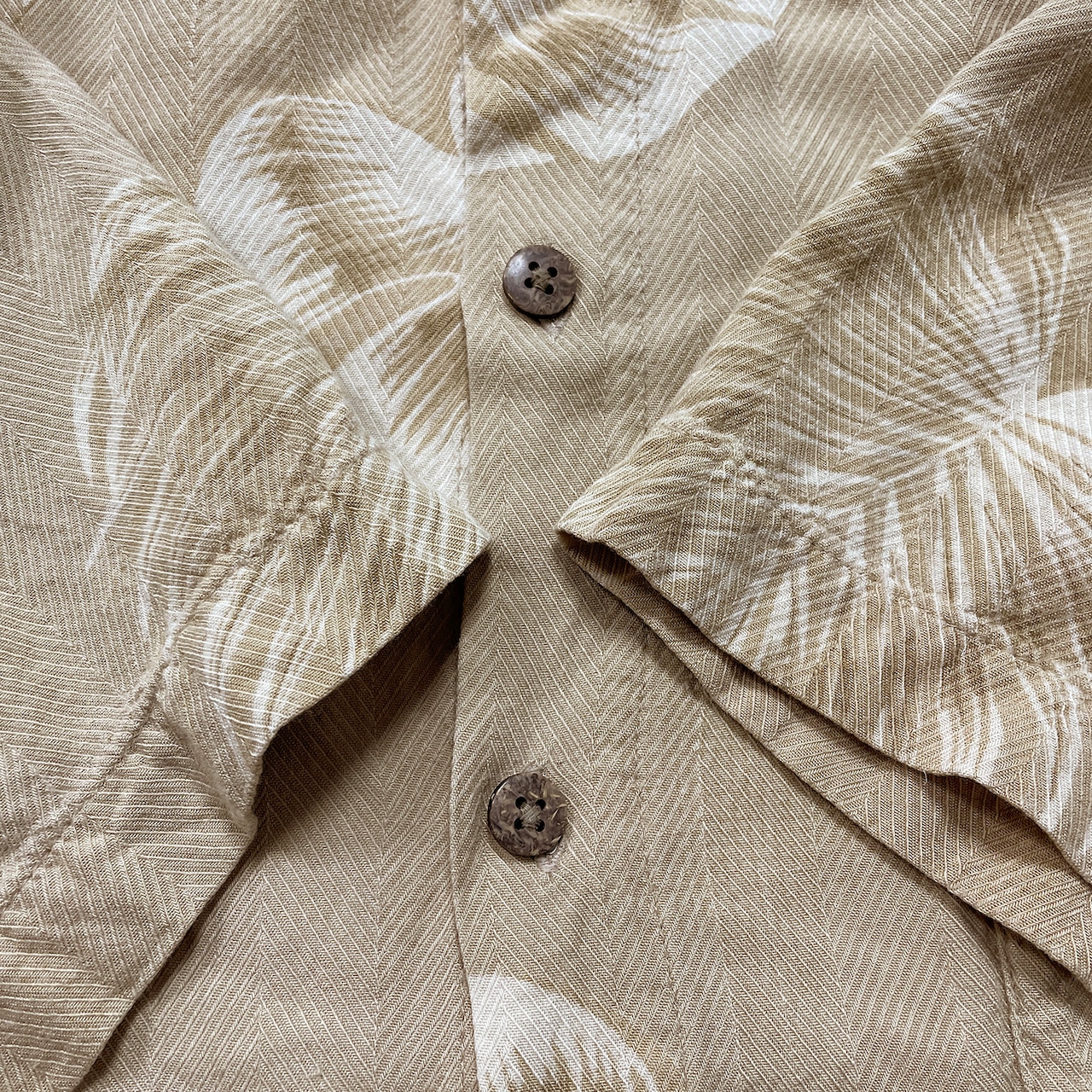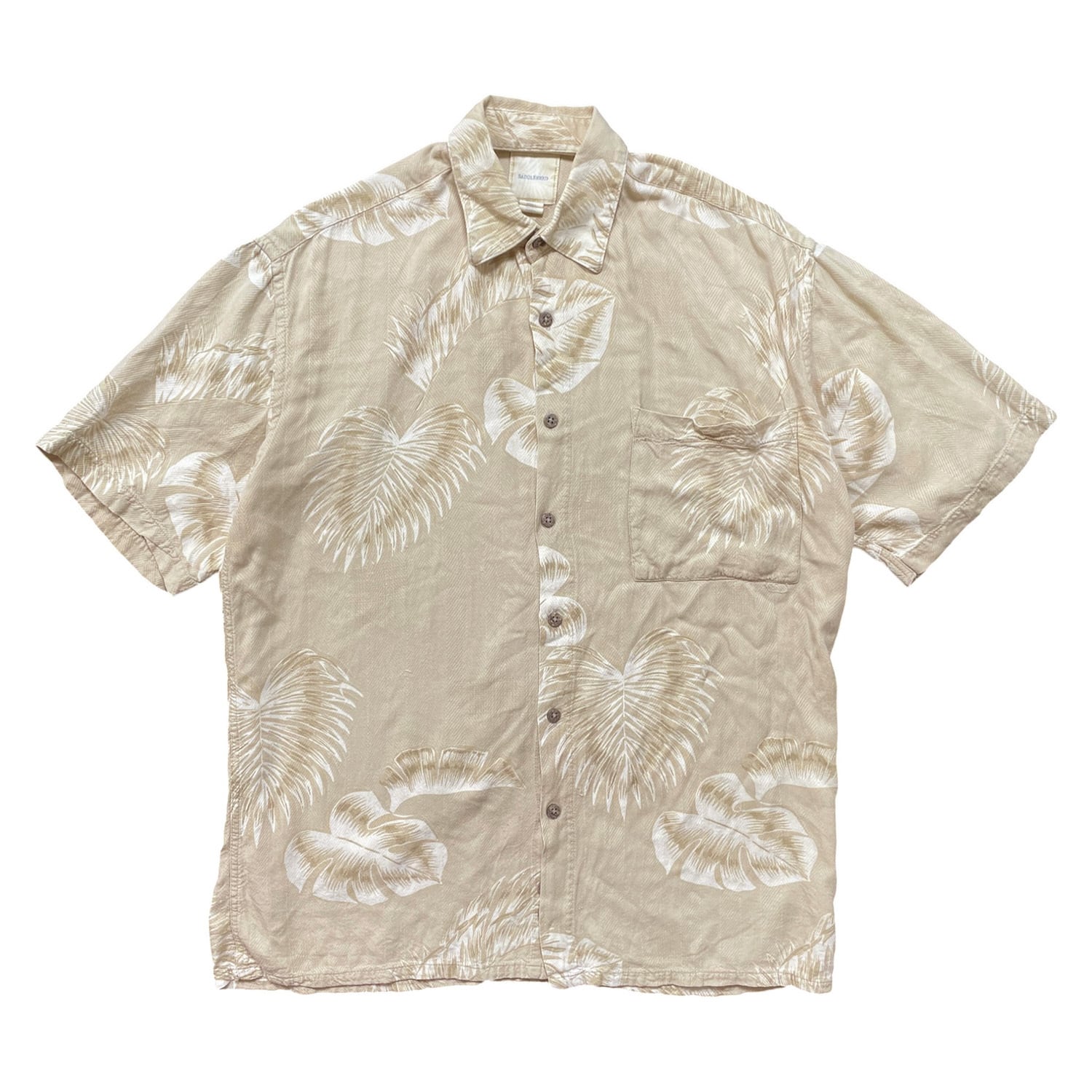 USA 古着 SADDLEBRED サドルブレッド レーヨン アロハシャツ ハワイアンシャツ リーフ柄 総柄 メンズS ベージュ BF3957