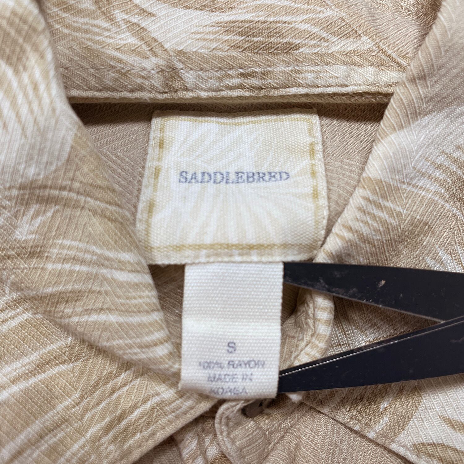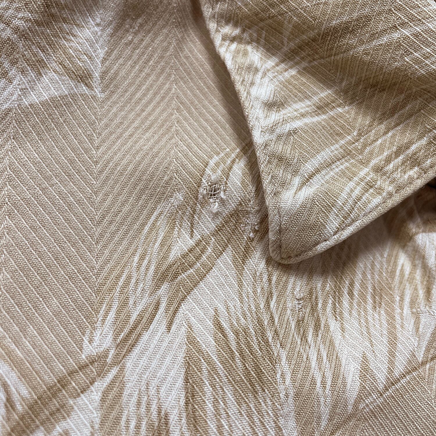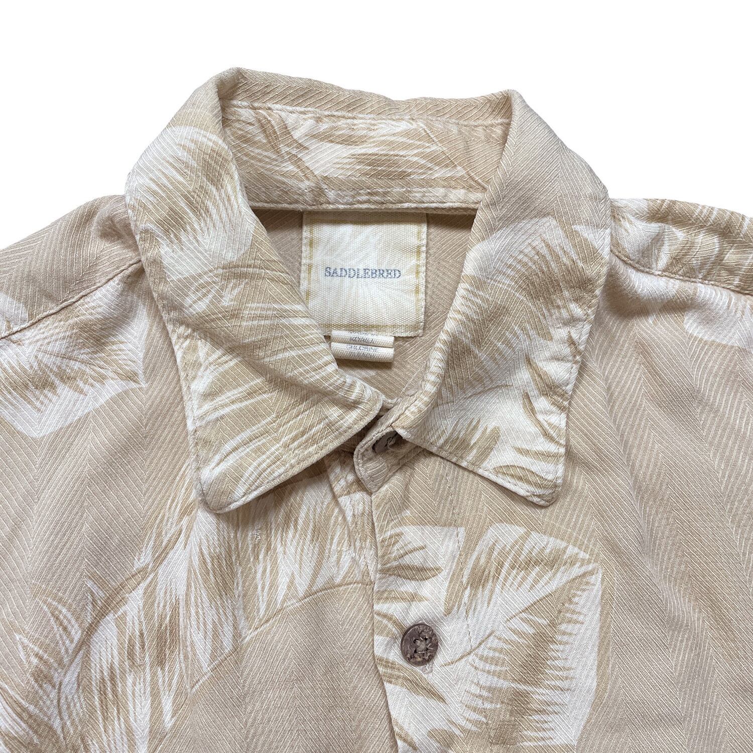 USA 古着 SADDLEBRED サドルブレッド レーヨン アロハシャツ ハワイアンシャツ リーフ柄 総柄 メンズS ベージュ BF3957