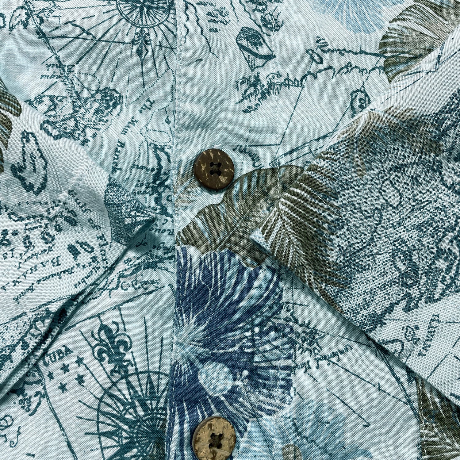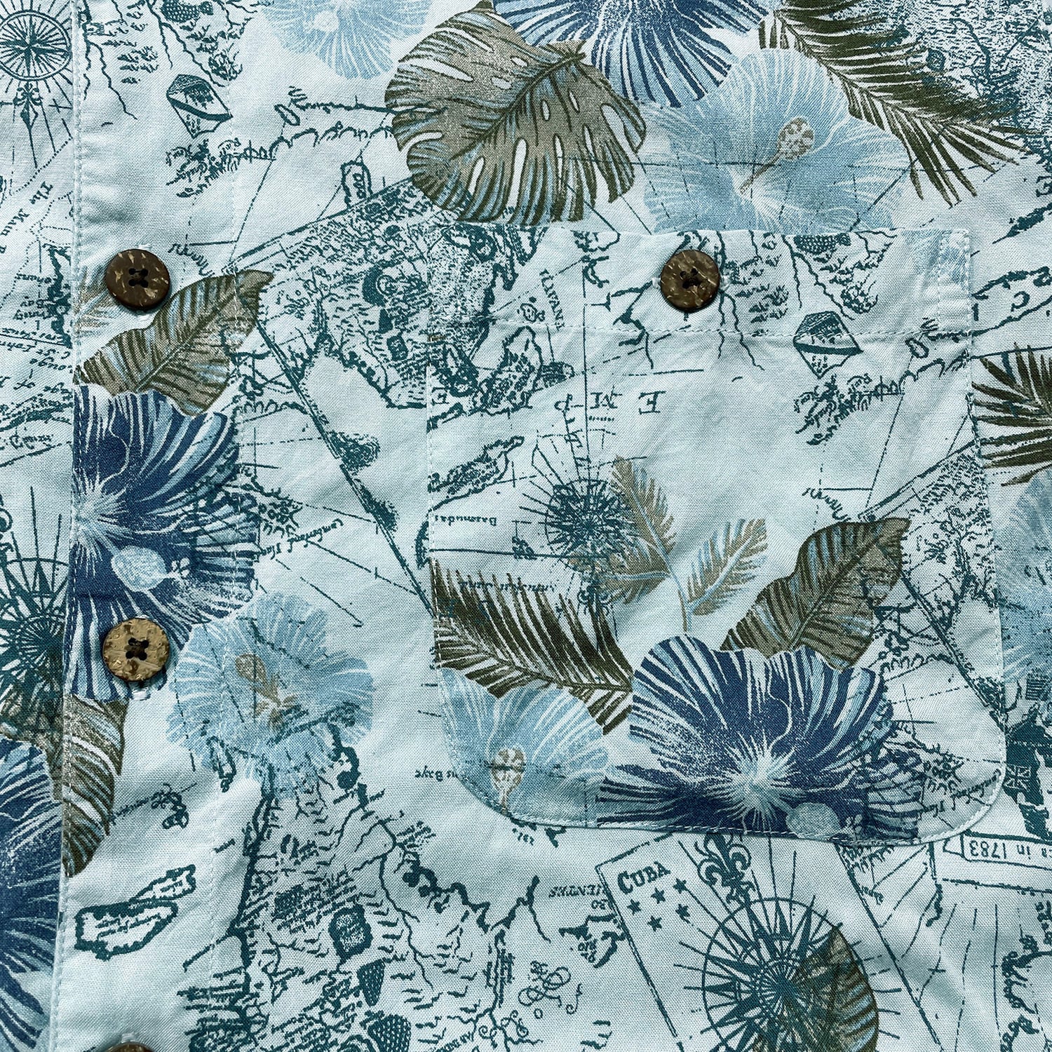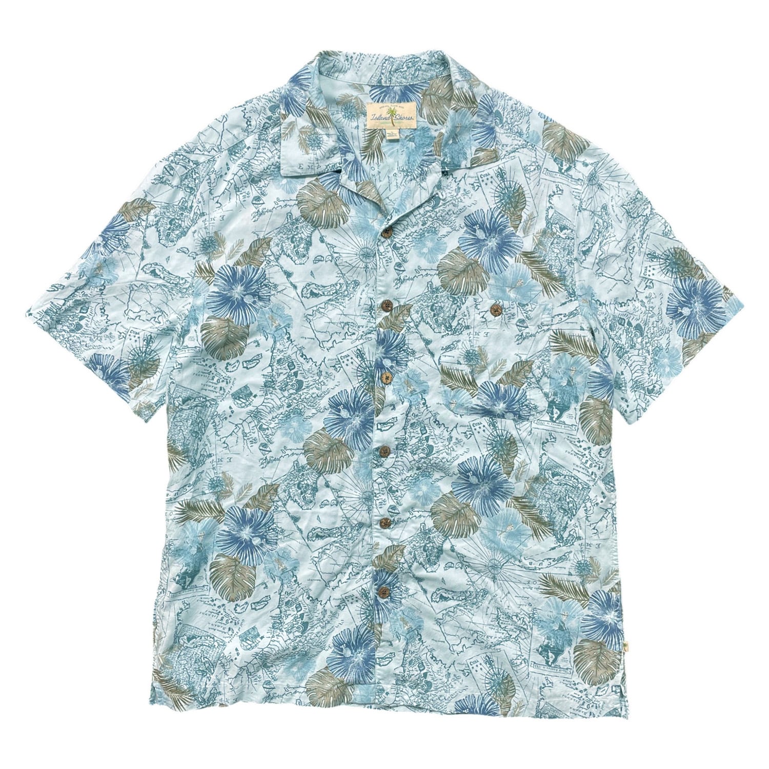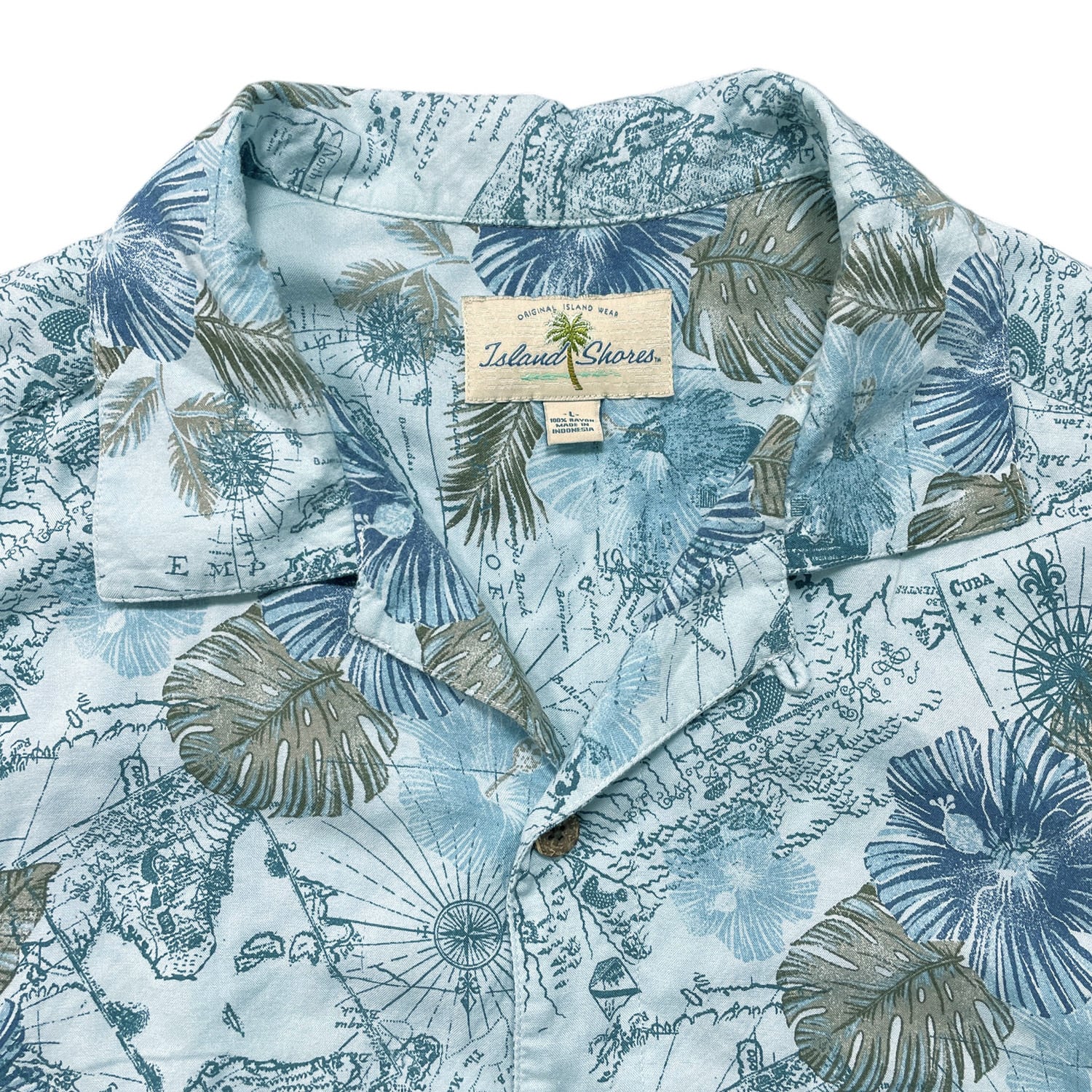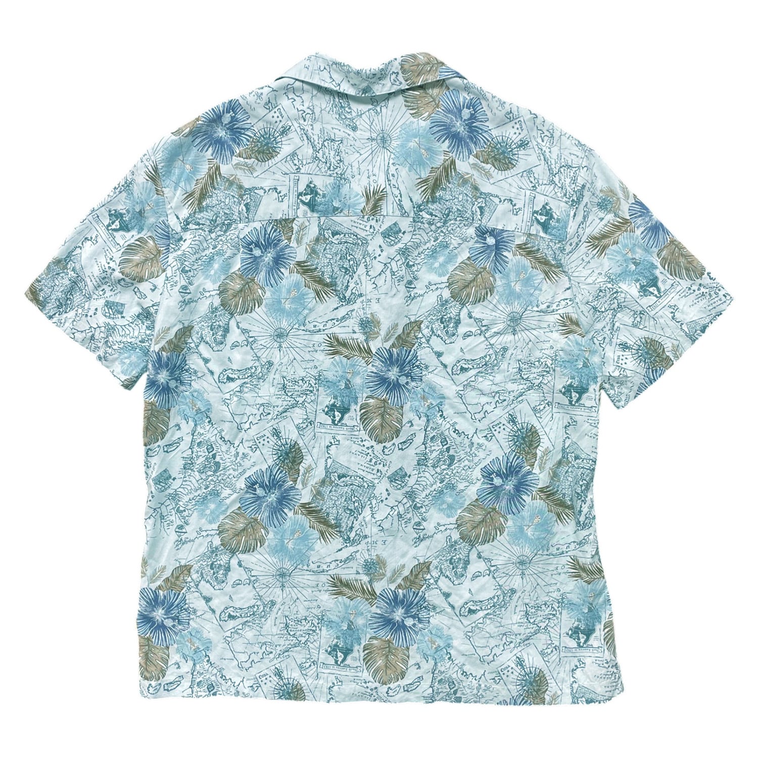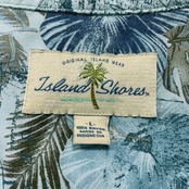USA 古着 Island Shores アイランドショアーズ レーヨン 開襟 アロハシャツ ハワイアンシャツ マップ柄 メンズL ブルー BF3959