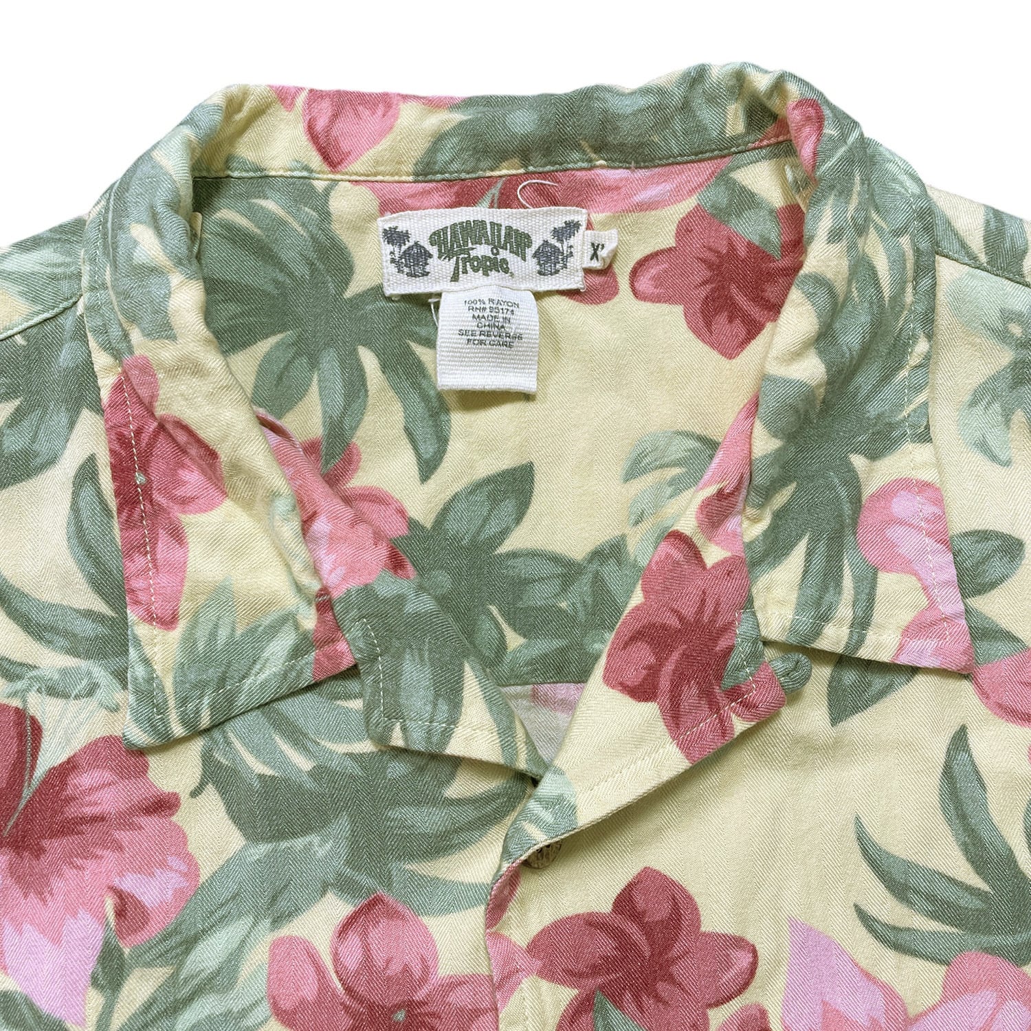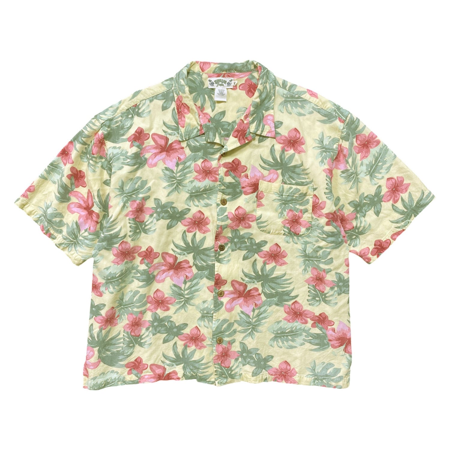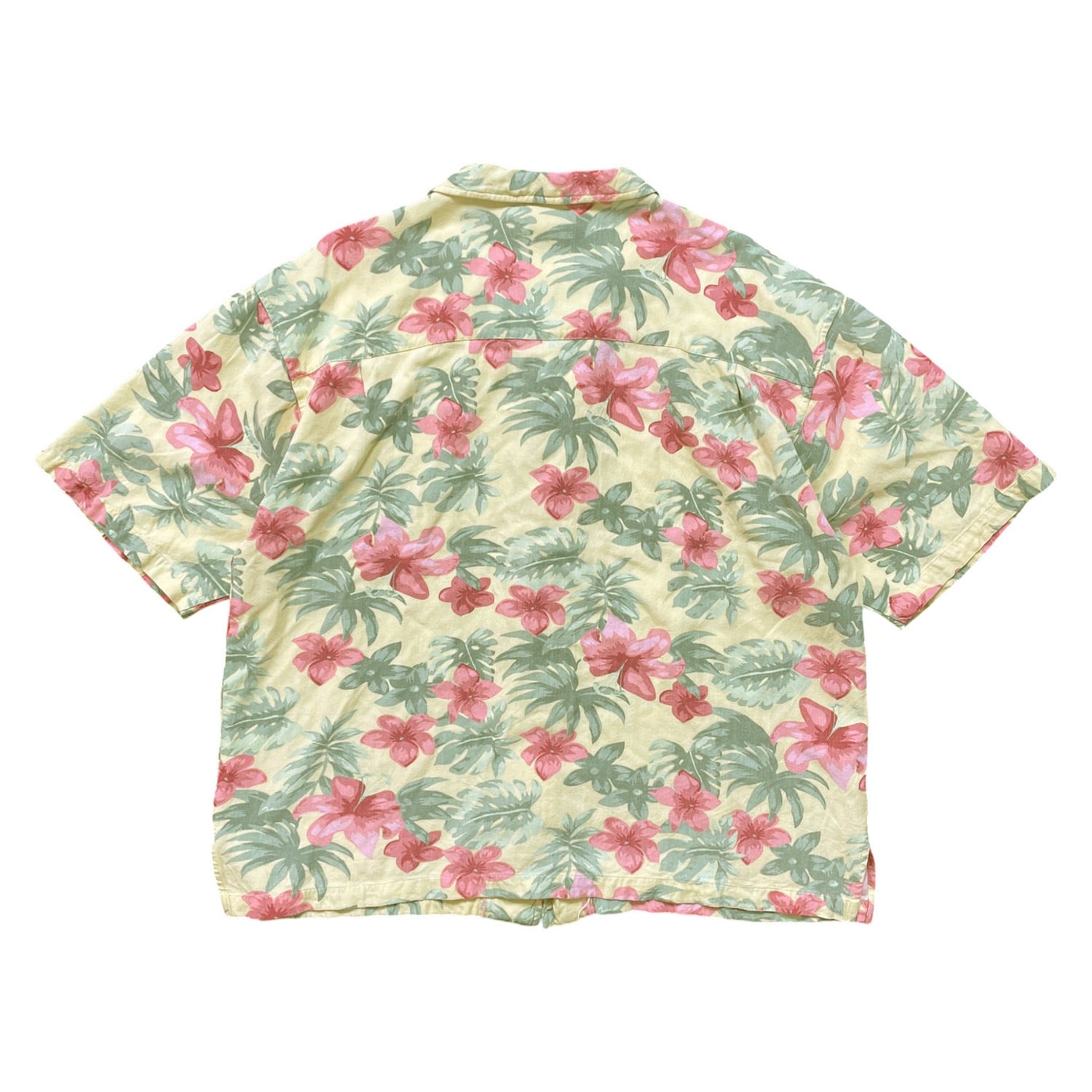 USA 古着 Hawaiian Tropic ハワイアントロピック レーヨン 開襟 アロハシャツ ハワイアンシャツ 花柄 フローラル柄 メンズXL イエロー BF3960