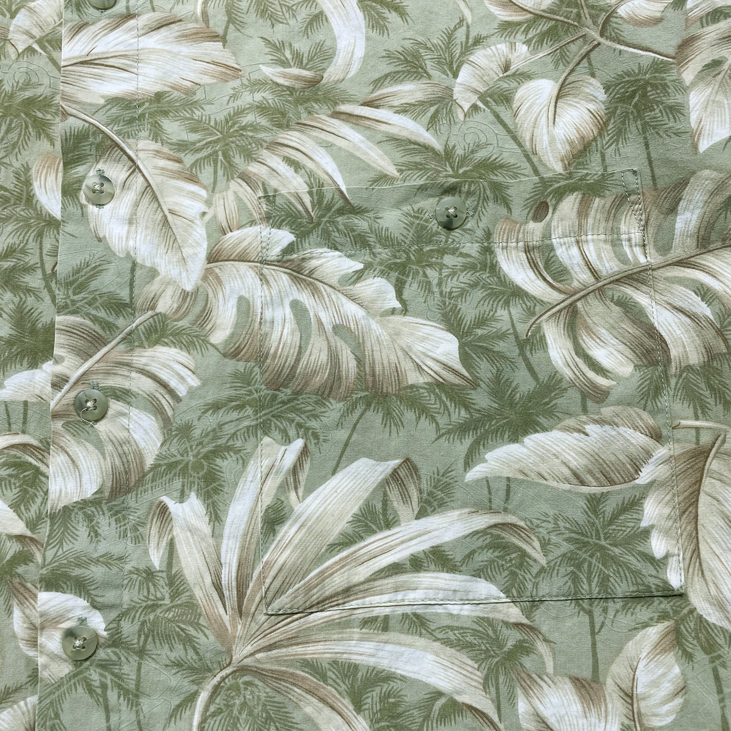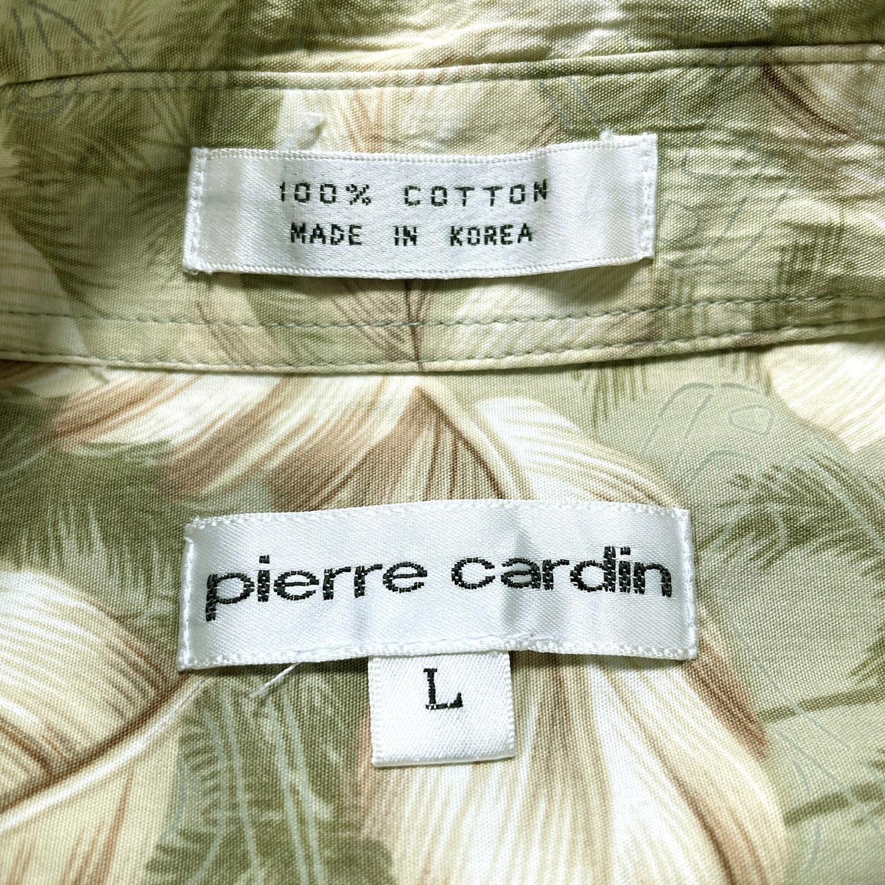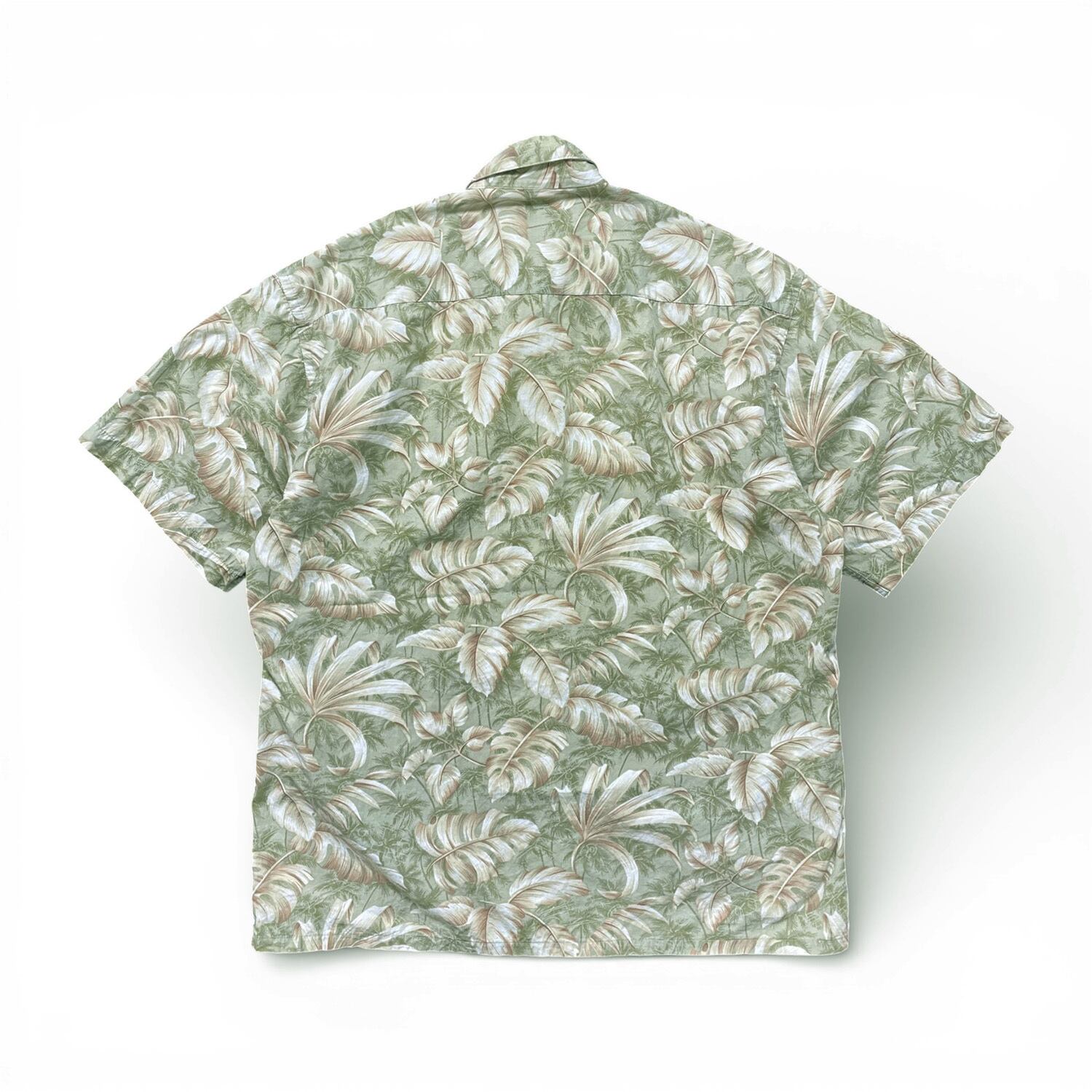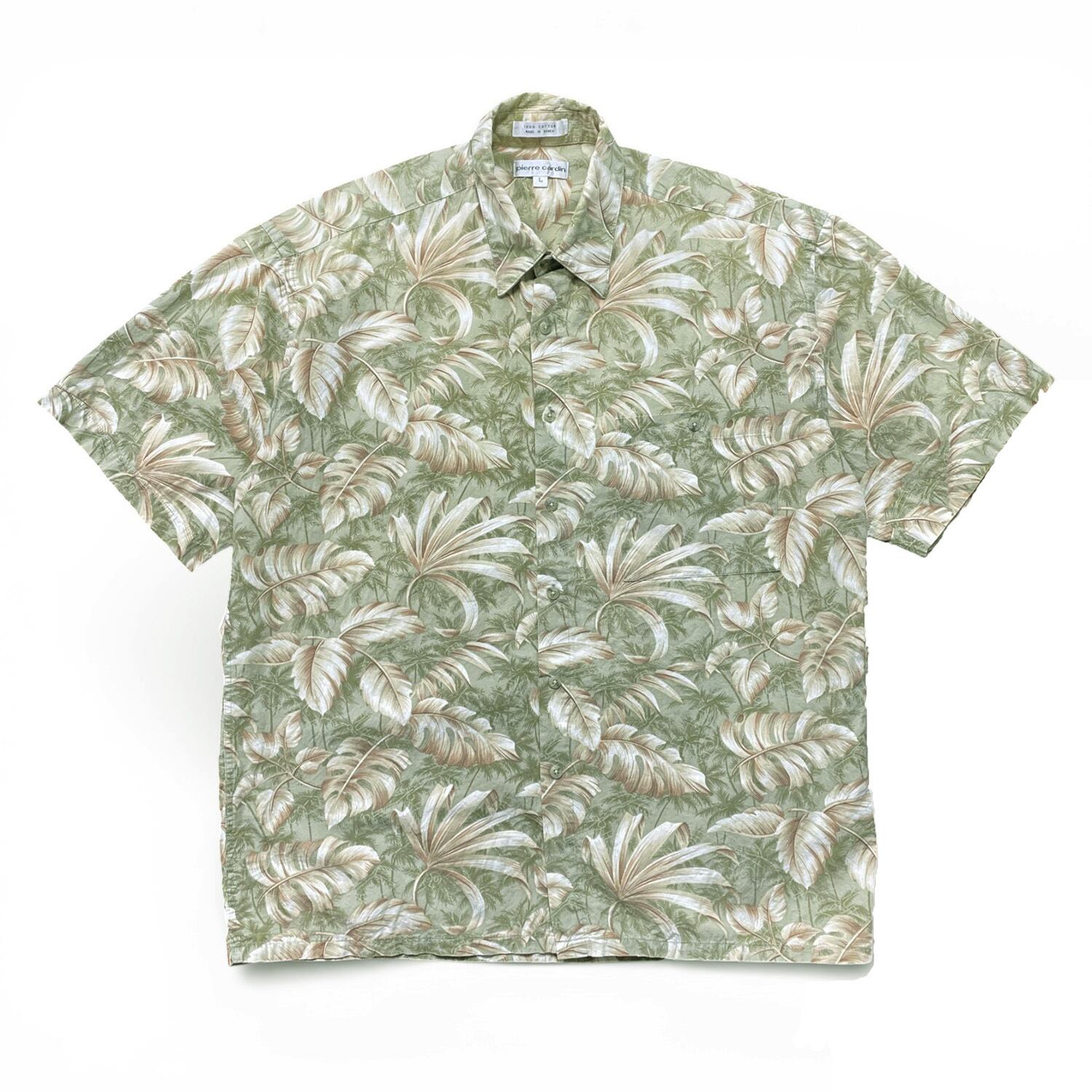 USA 古着 pierre cardin ピエールカルダン コットン アロハシャツ ハワイアンシャツ リーフ柄 メンズL グリーン系 BF3887