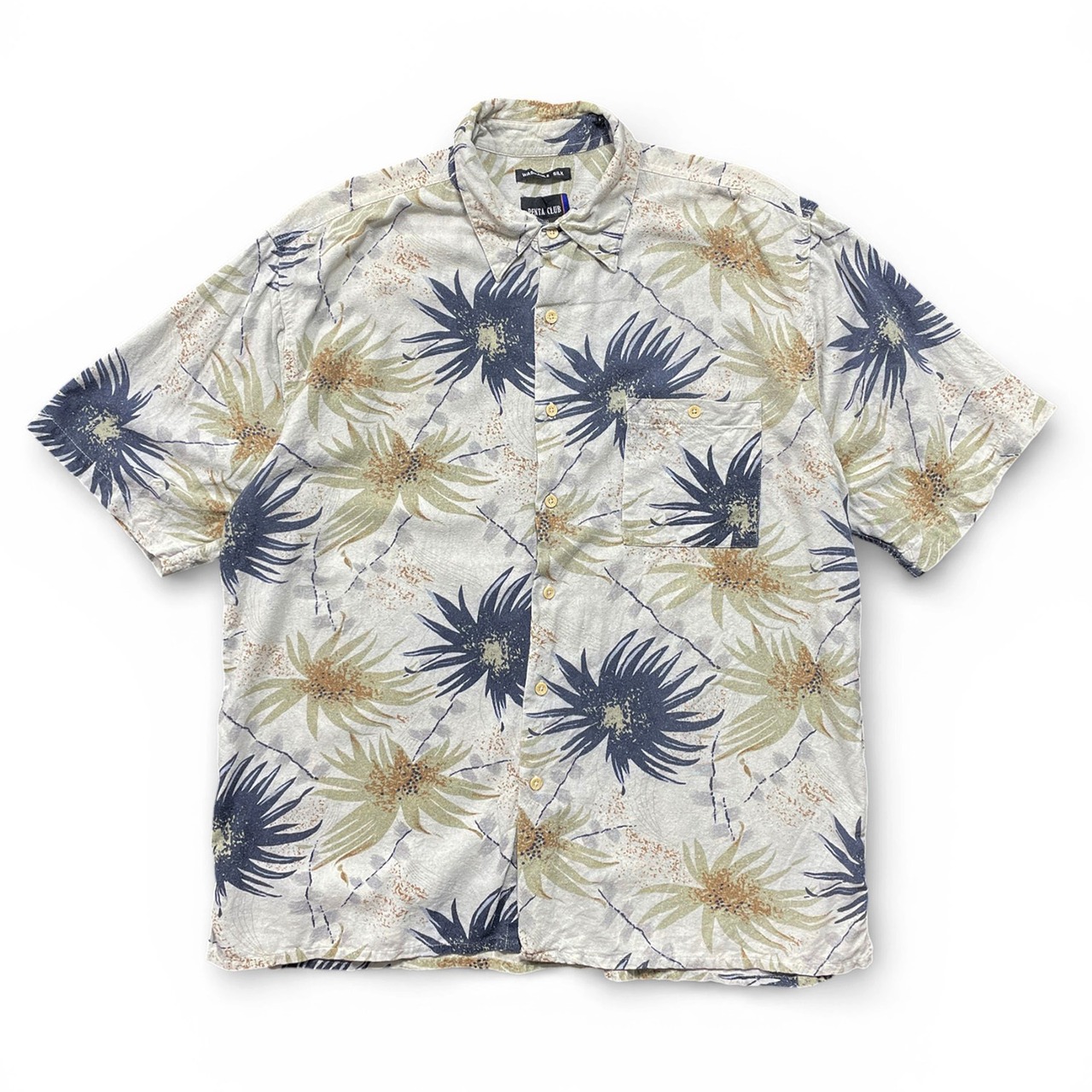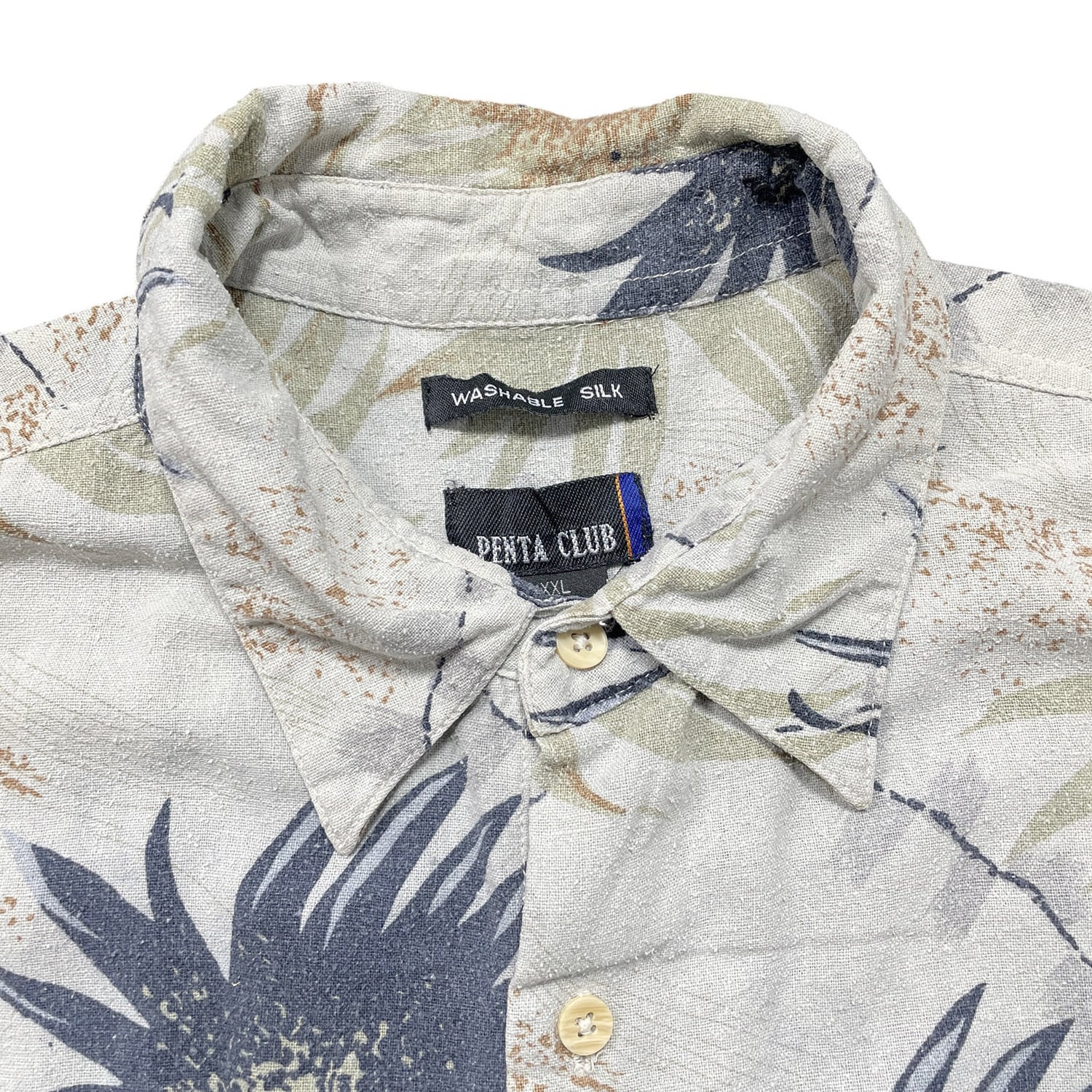 USA 古着 PENTA CLUB ペンタクラブ シルク アロハシャツ ハワイアンシャツ 花柄 メンズXXL グレー 大きいサイズ BF3888