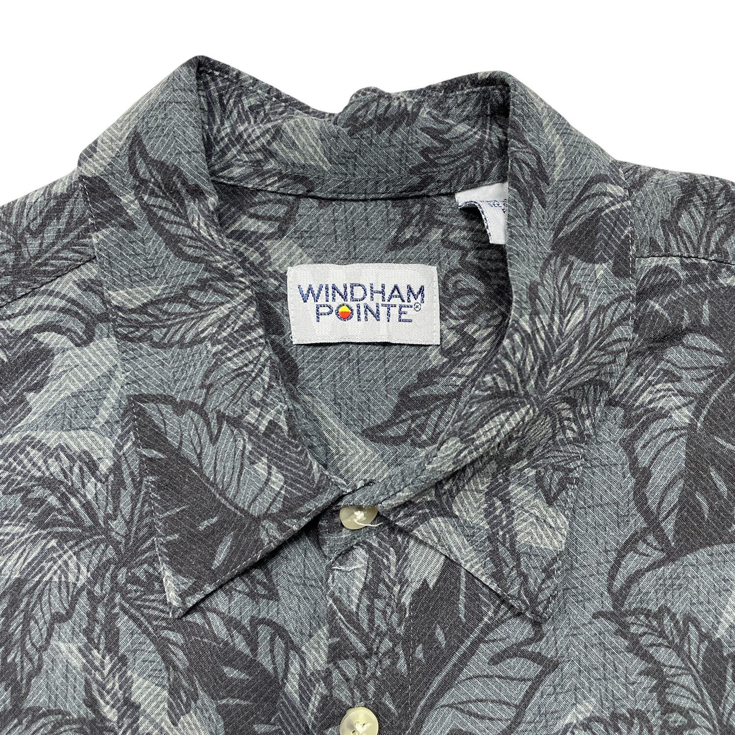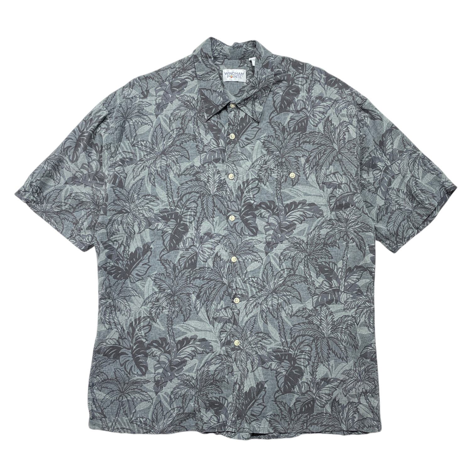 USA 古着 WINDHAM POINTE ウィンダムポインテ レーヨン アロハシャツ ハワイアンシャツ パームツリー柄 メンズXL チャコールグレー BF3931