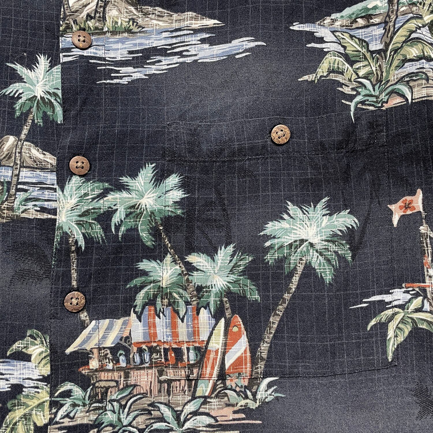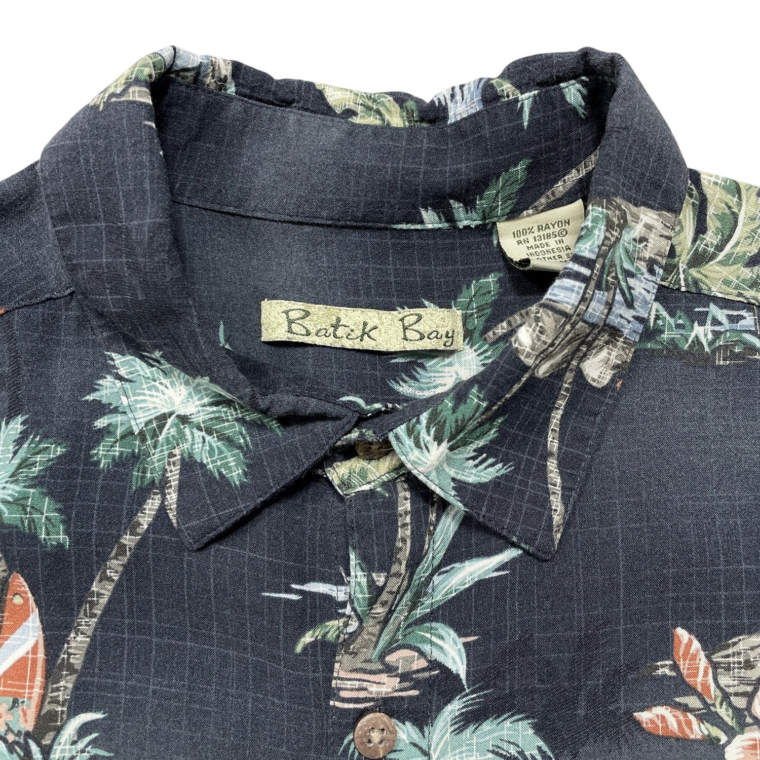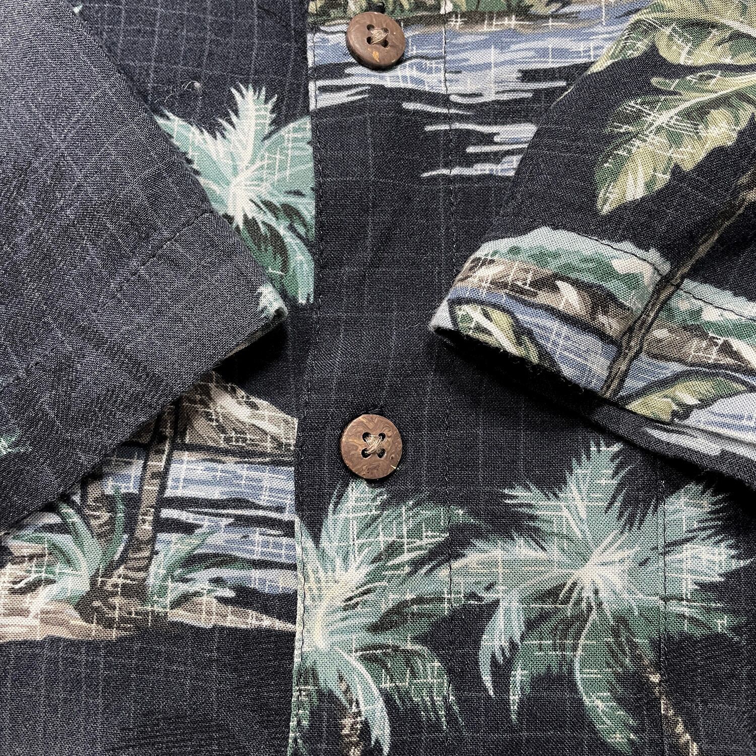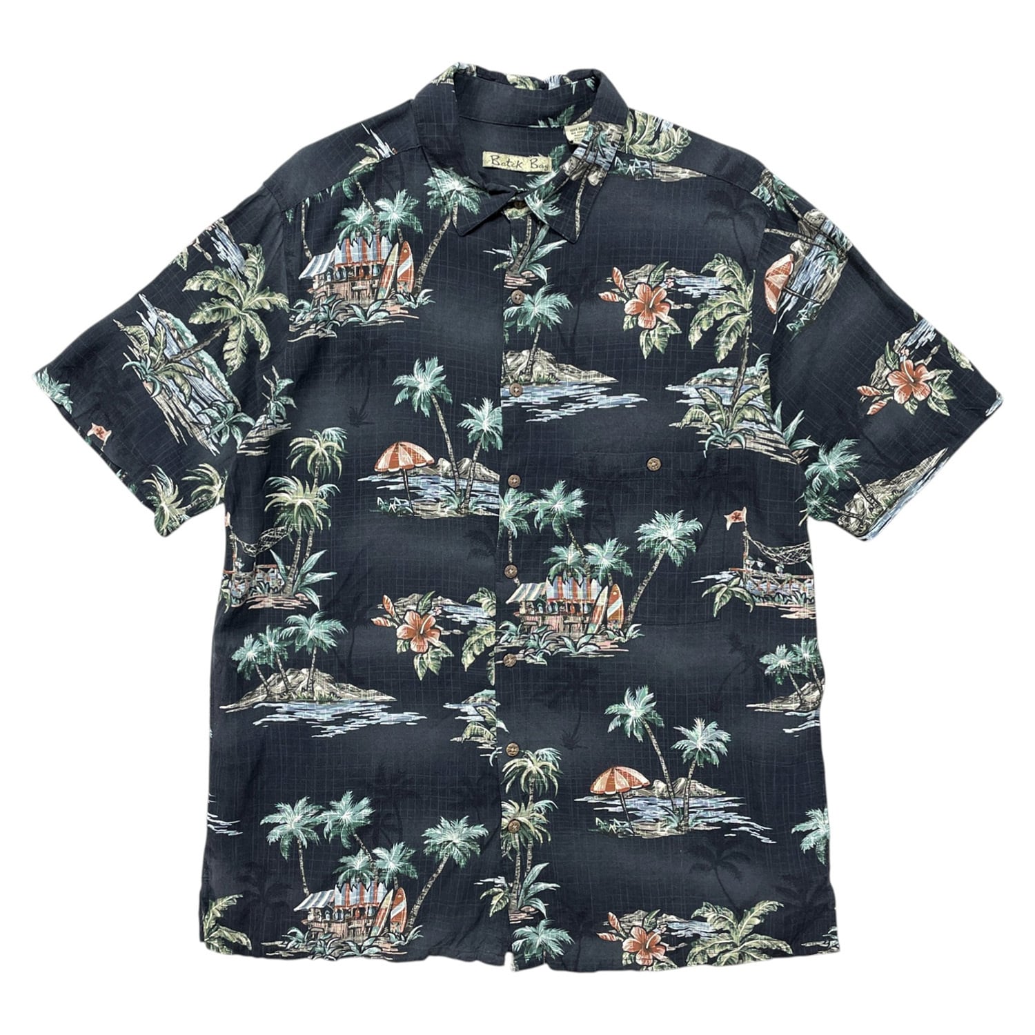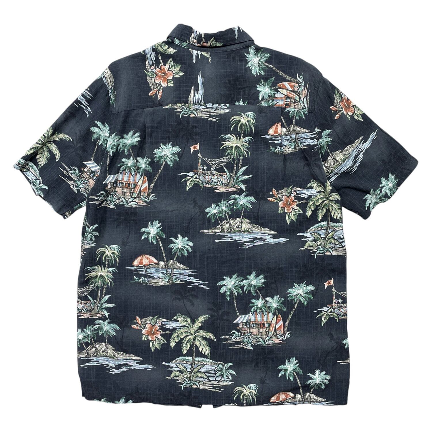 USA 古着 Batik Bay バティックベイ レーヨン アロハシャツ ハワイアンシャツ サーフボード柄 メンズL ブラック BF3937