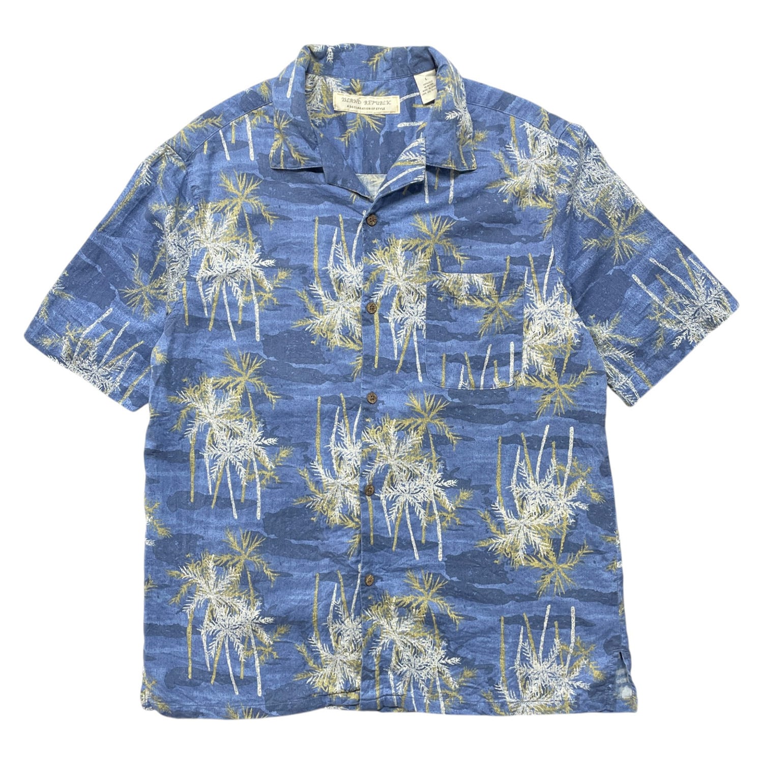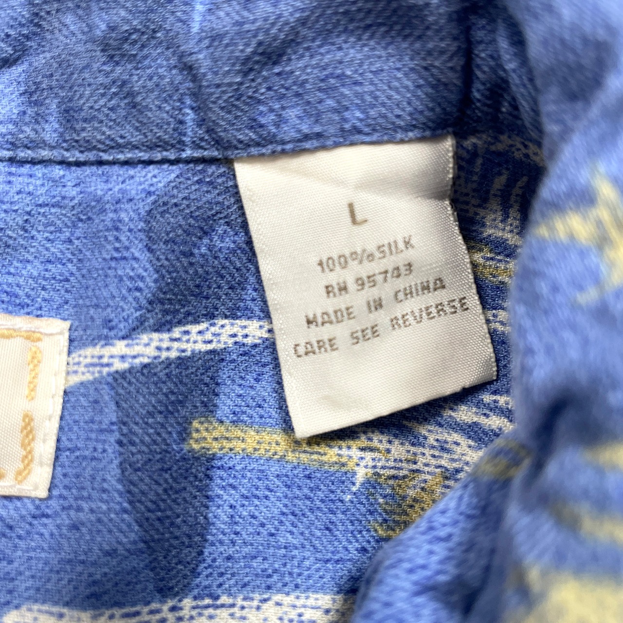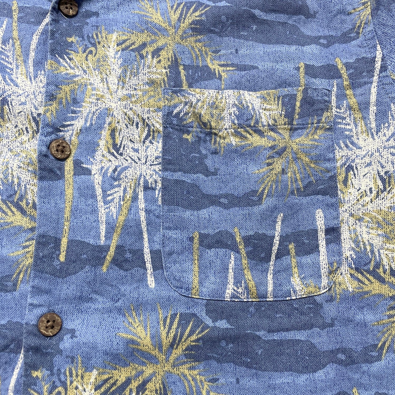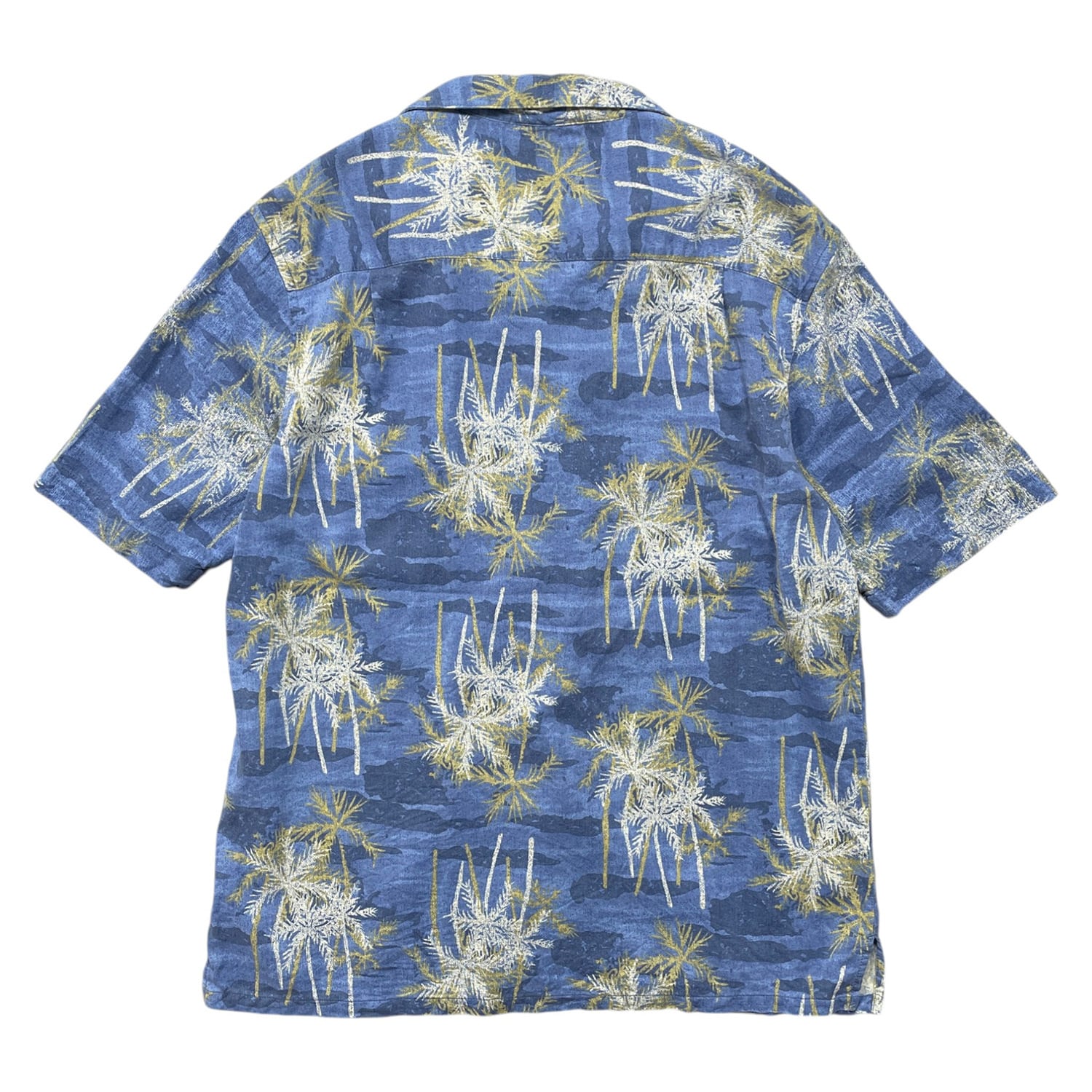USA 古着 ISLAND REPUBLIC アイランドリパブリック シルク 開襟 アロハシャツ ハワイアンシャツ パームツリー柄 L ブルー BF3939