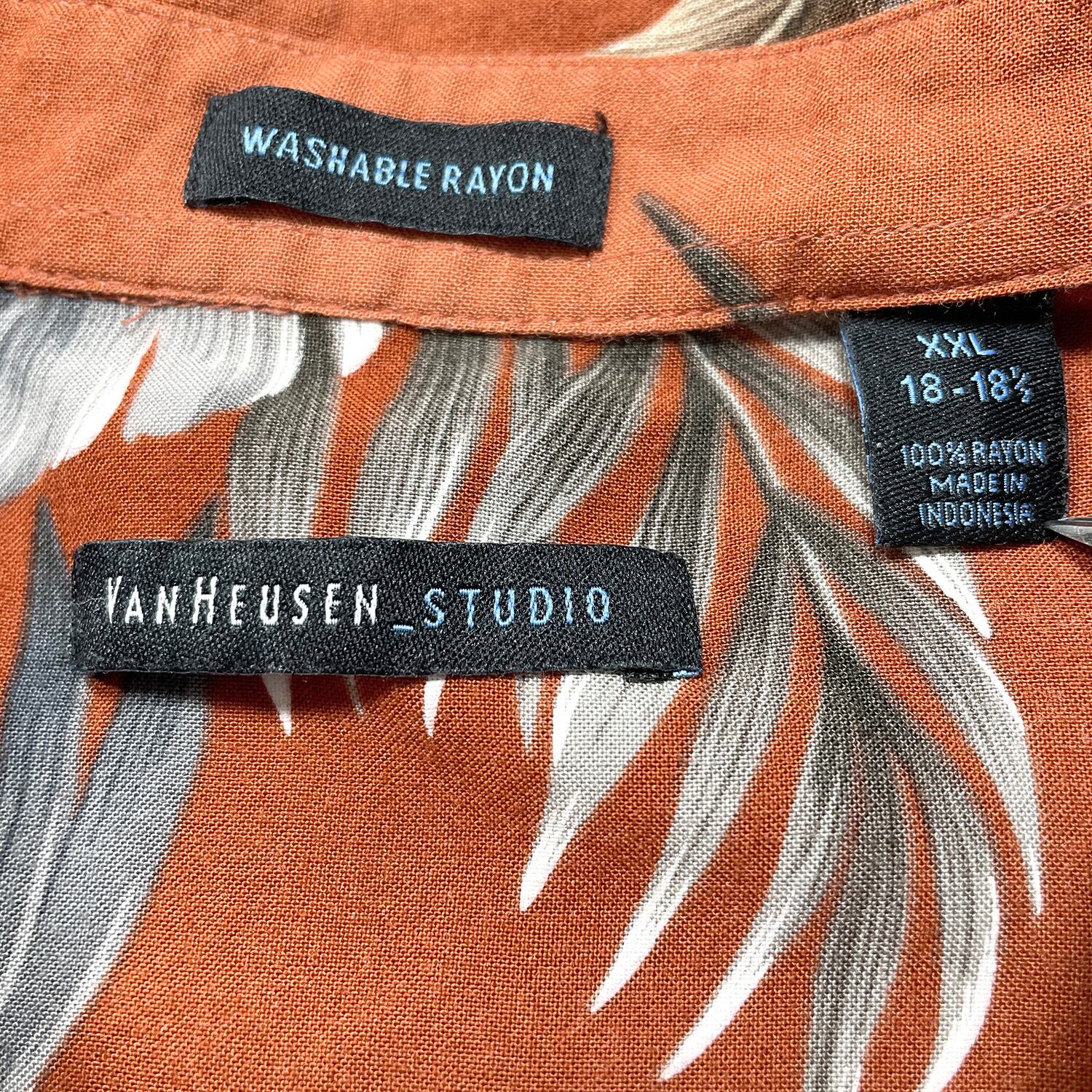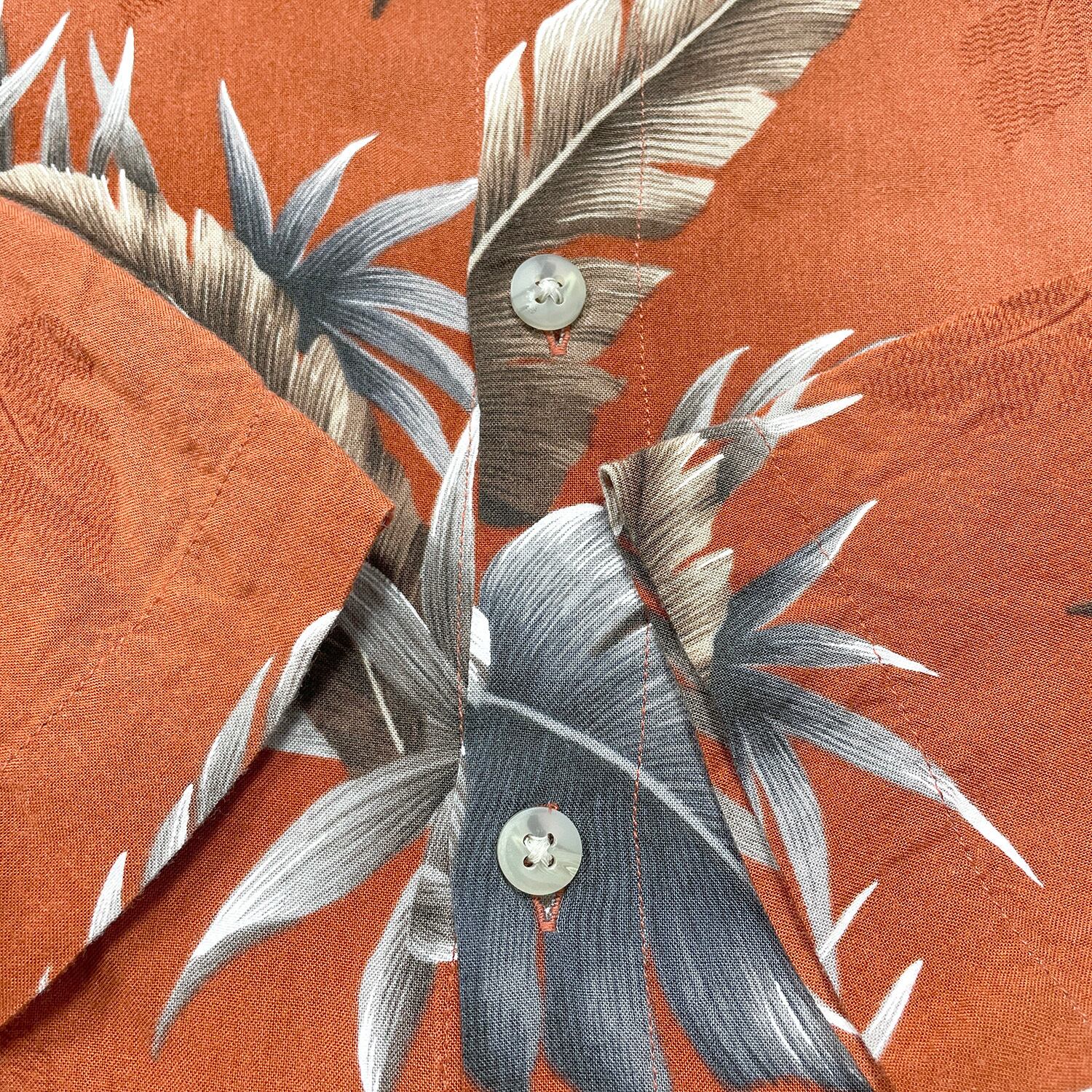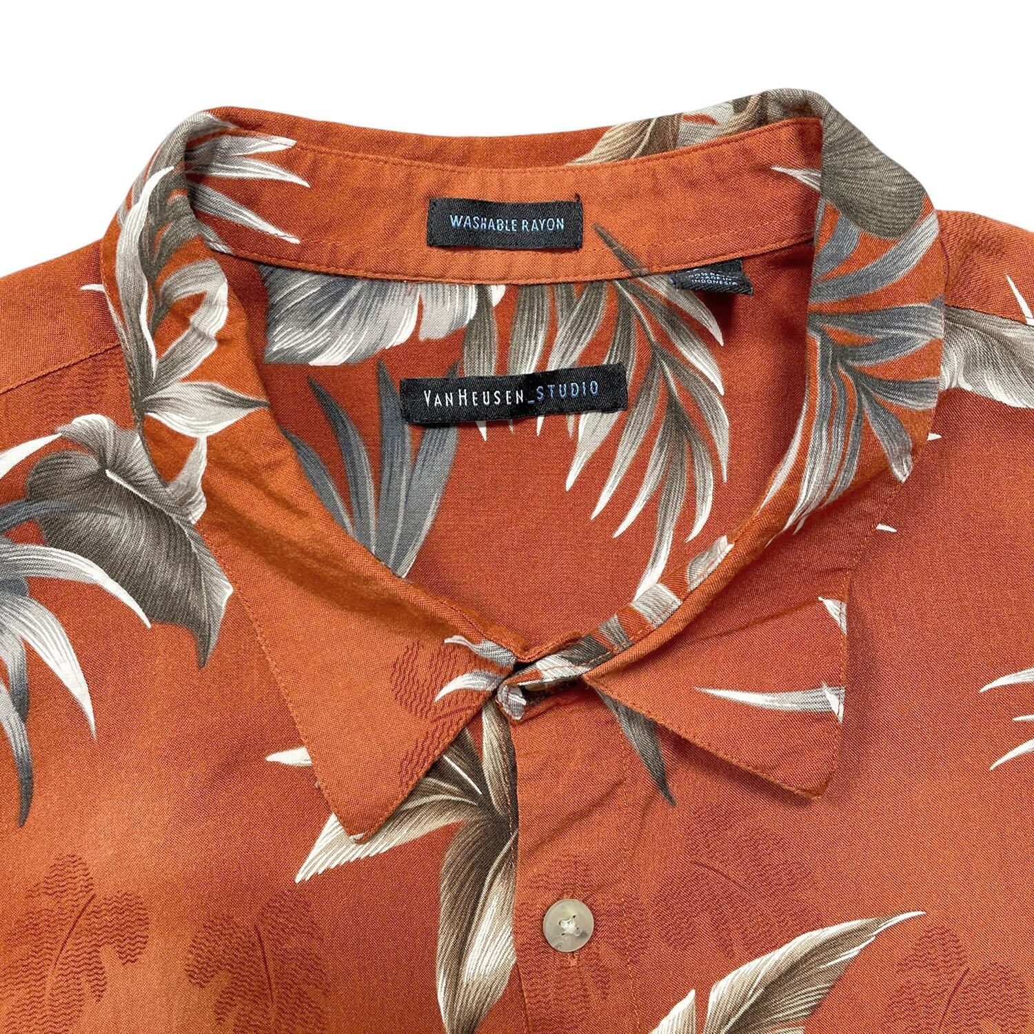 USA 古着 VAN HEUSEN ヴァンヒューゼン レーヨン アロハシャツ ハワイアンシャツ ボタニカル柄 メンズXXL 朱色 大きいサイズ BF3942