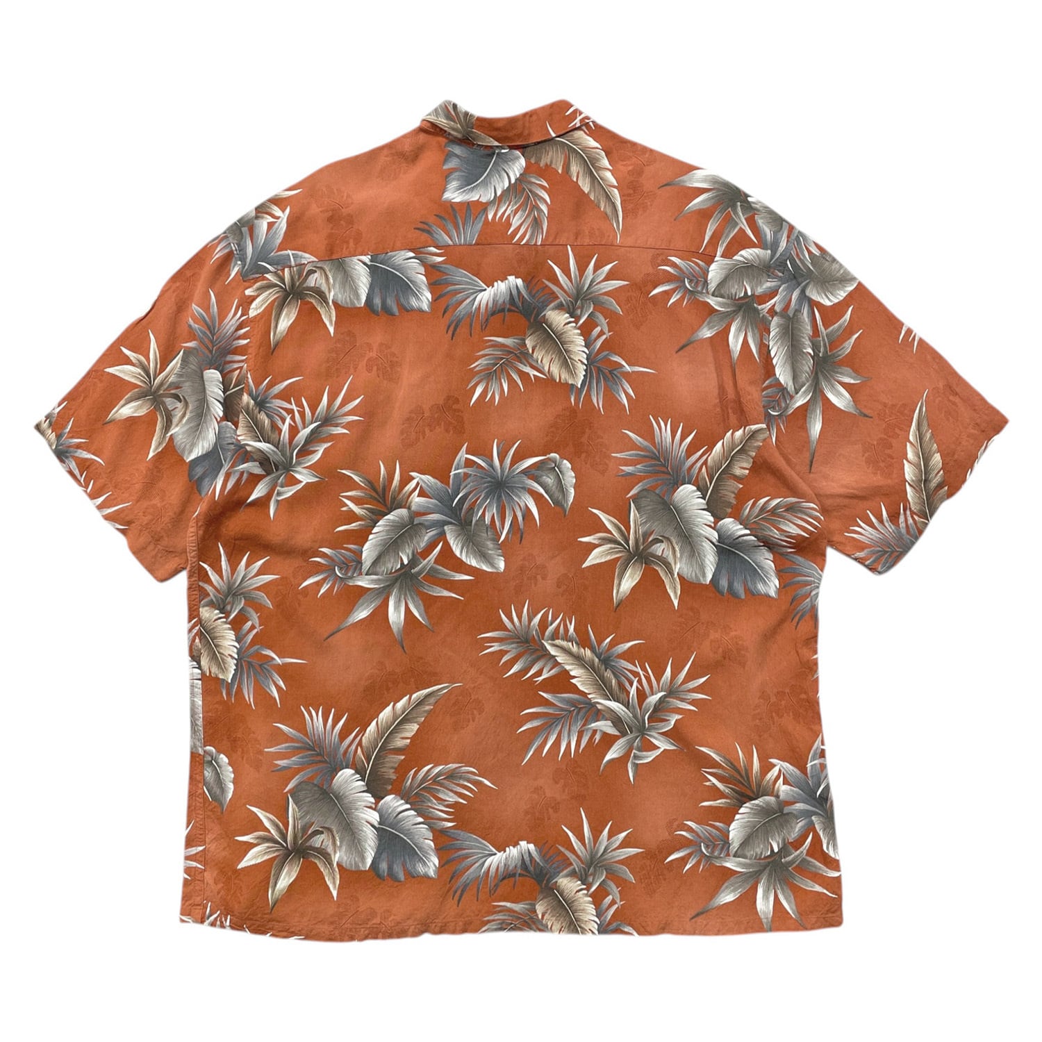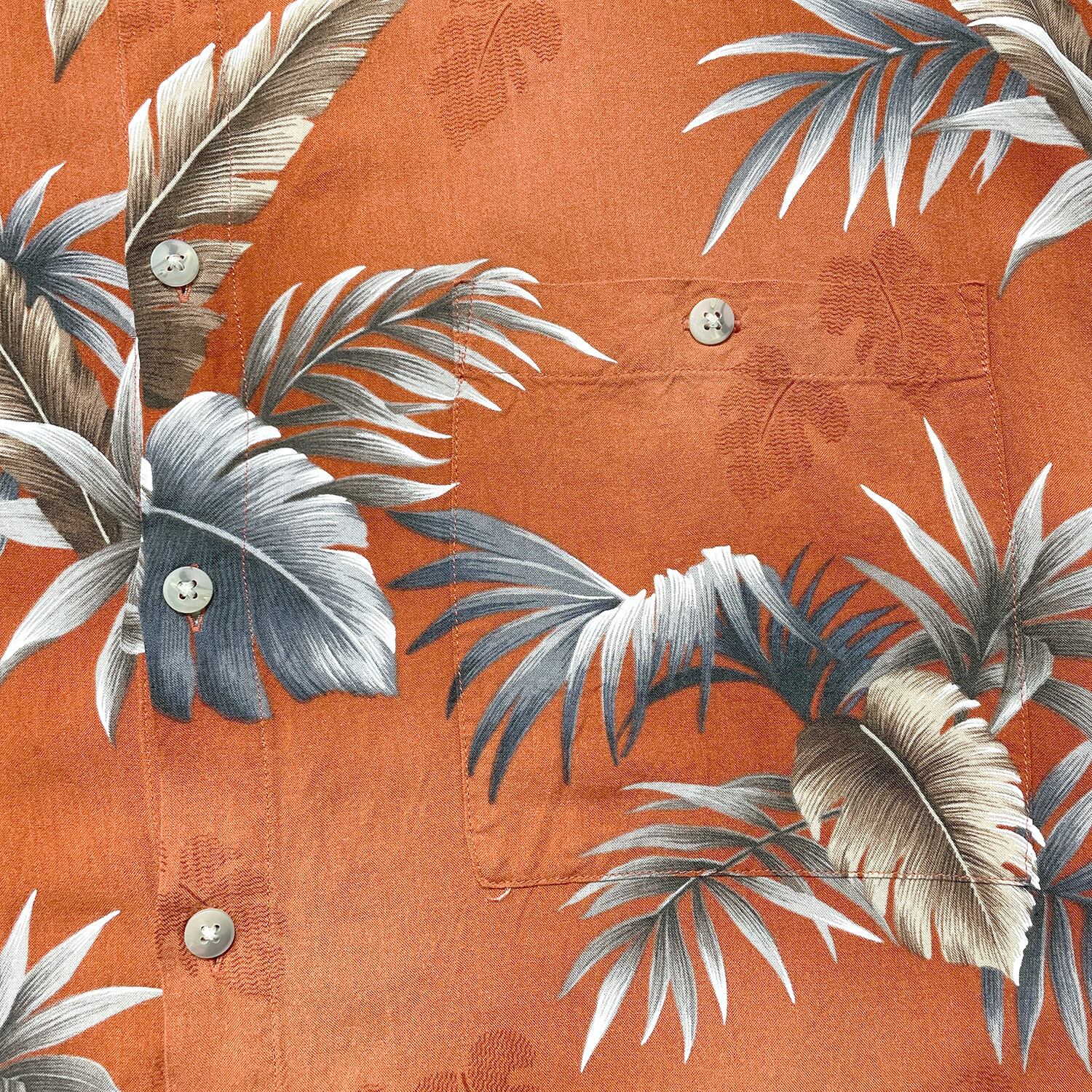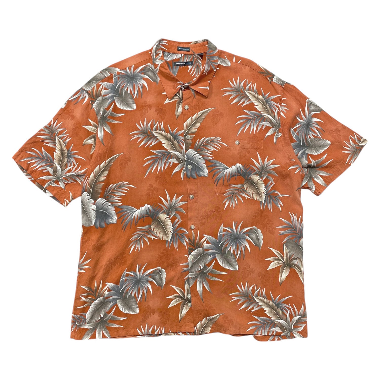 USA 古着 VAN HEUSEN ヴァンヒューゼン レーヨン アロハシャツ ハワイアンシャツ ボタニカル柄 メンズXXL 朱色 大きいサイズ BF3942