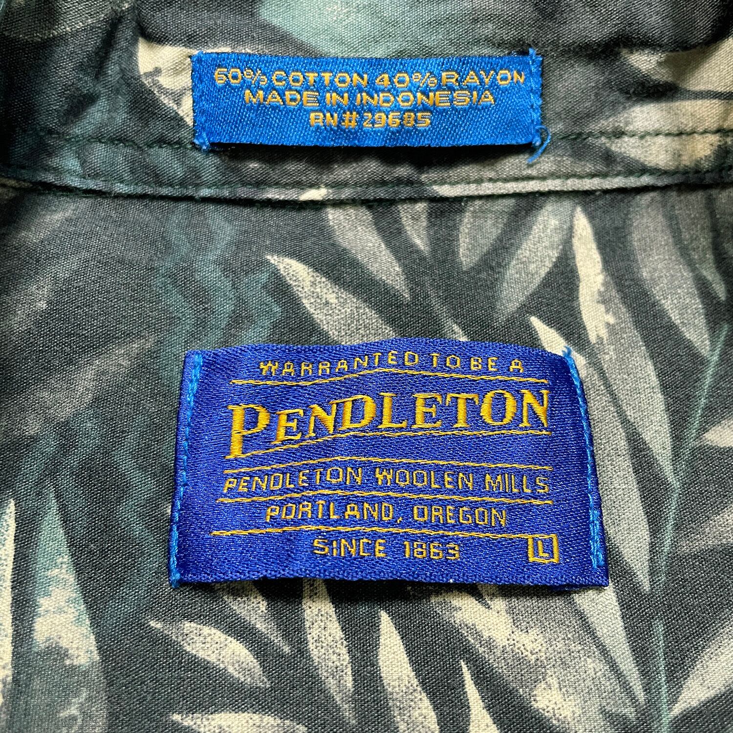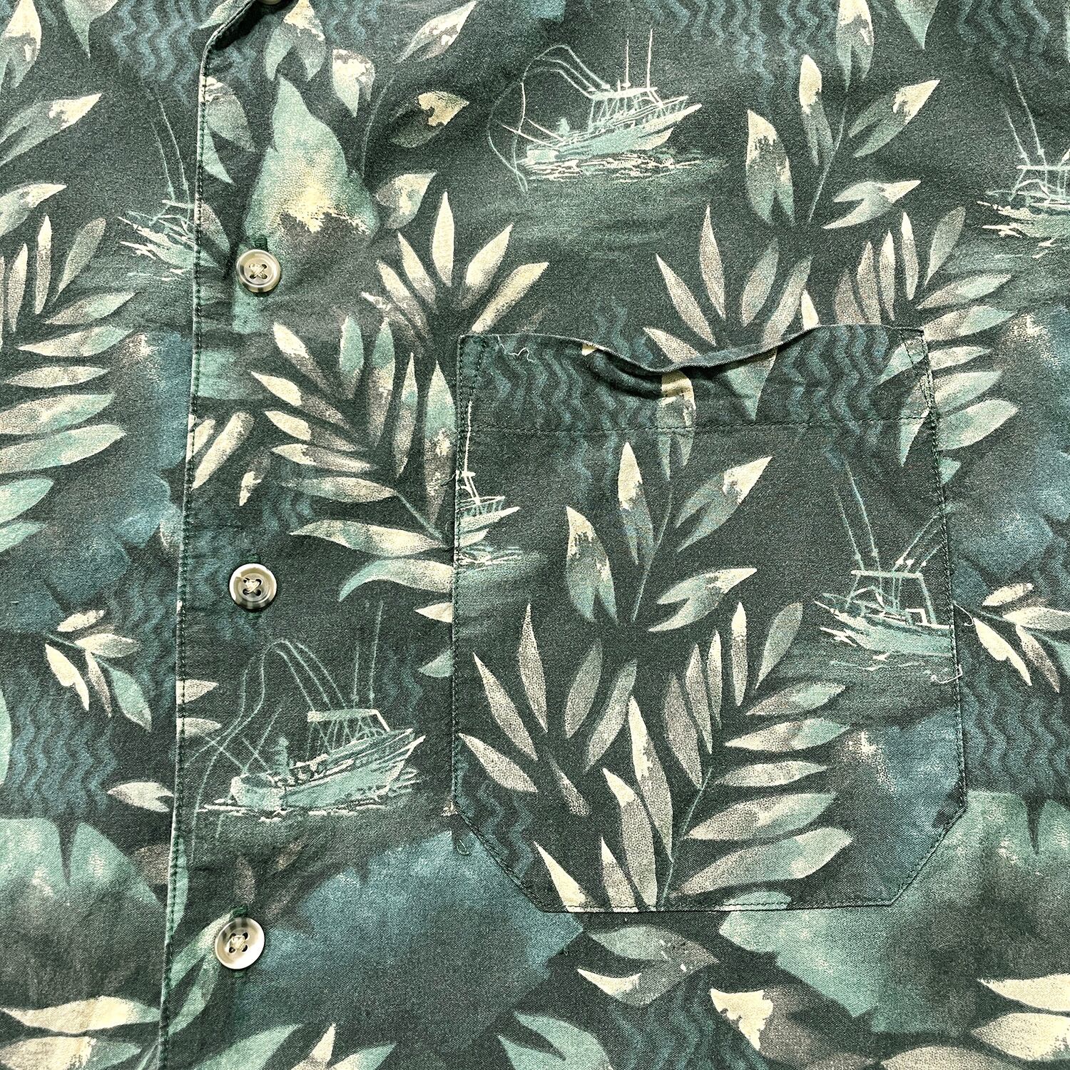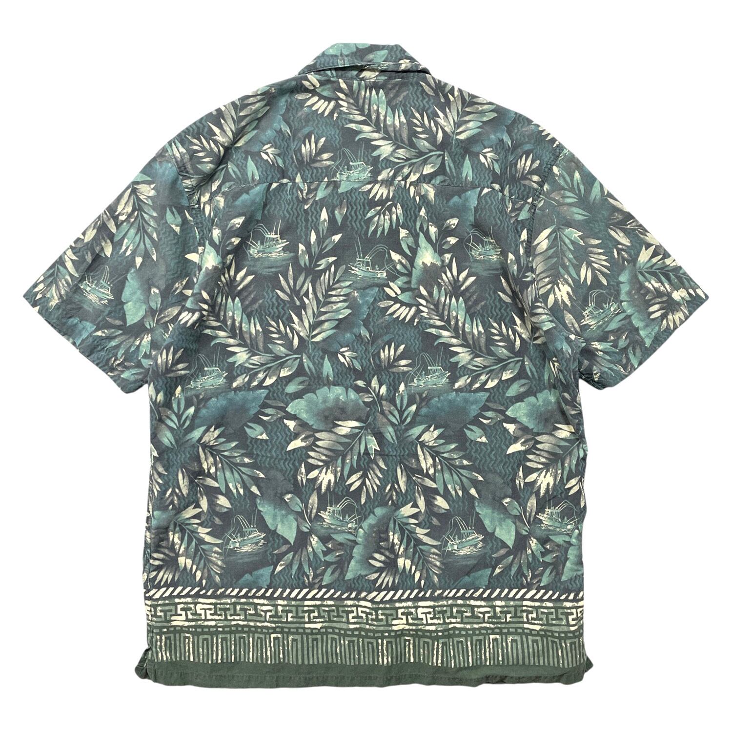 USA 古着 PENDLETON ペンドルトン コットン レーヨン 開襟 アロハシャツ ハワイアンシャツ リーフ 総柄 メンズL グリーン BF3944