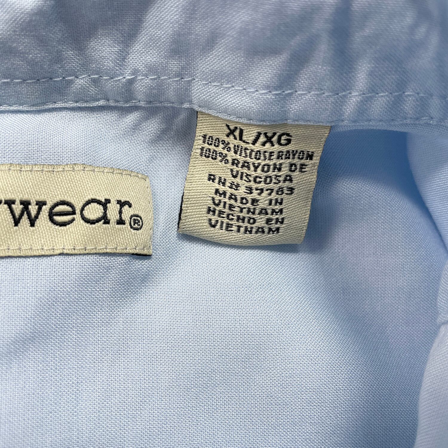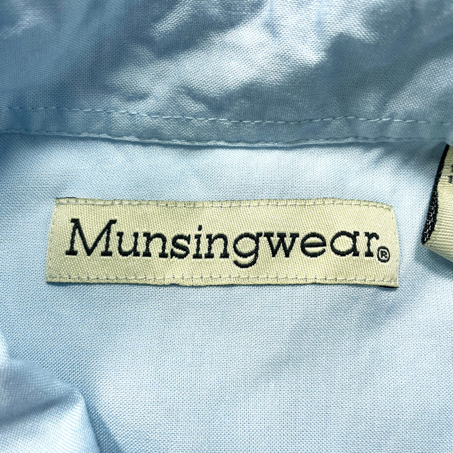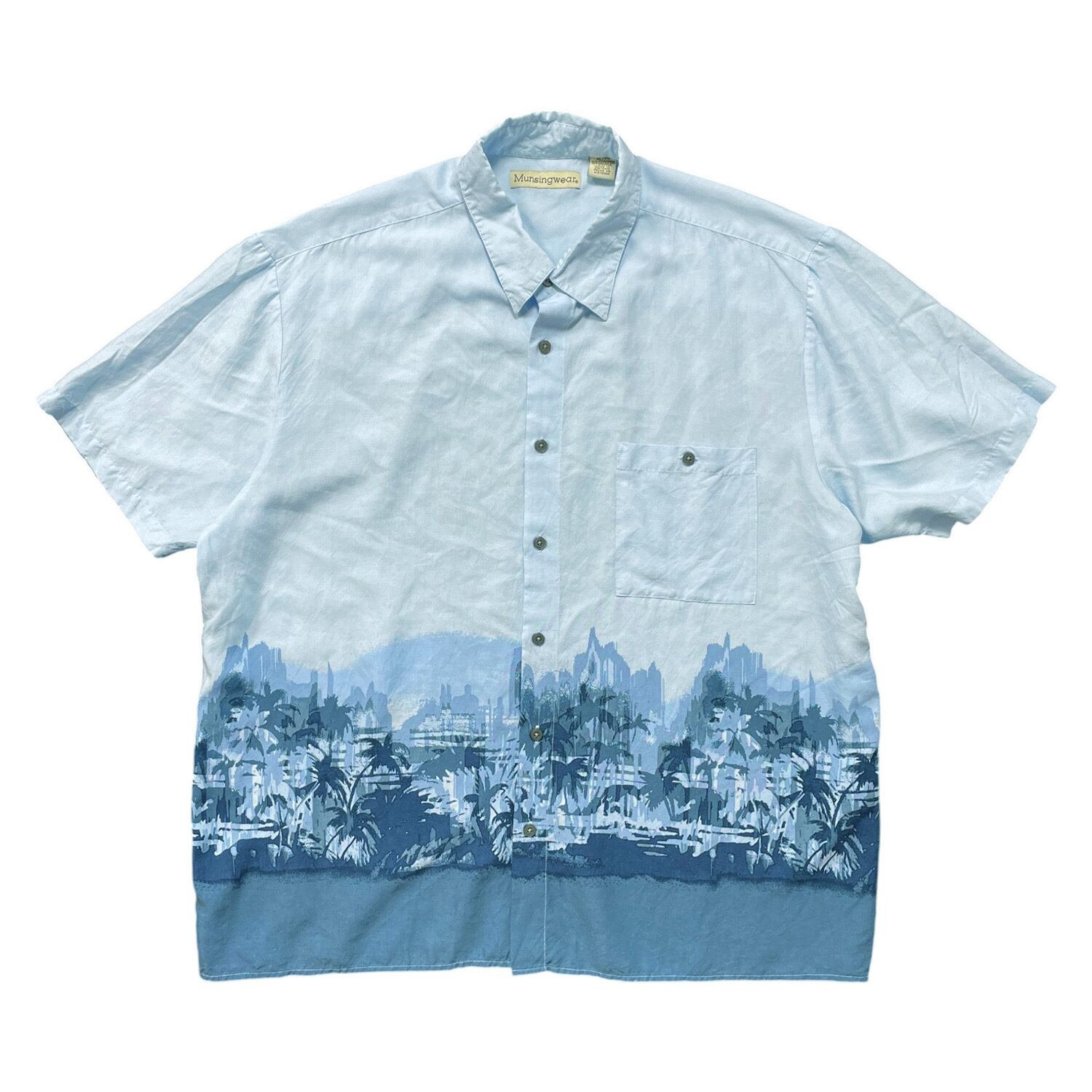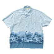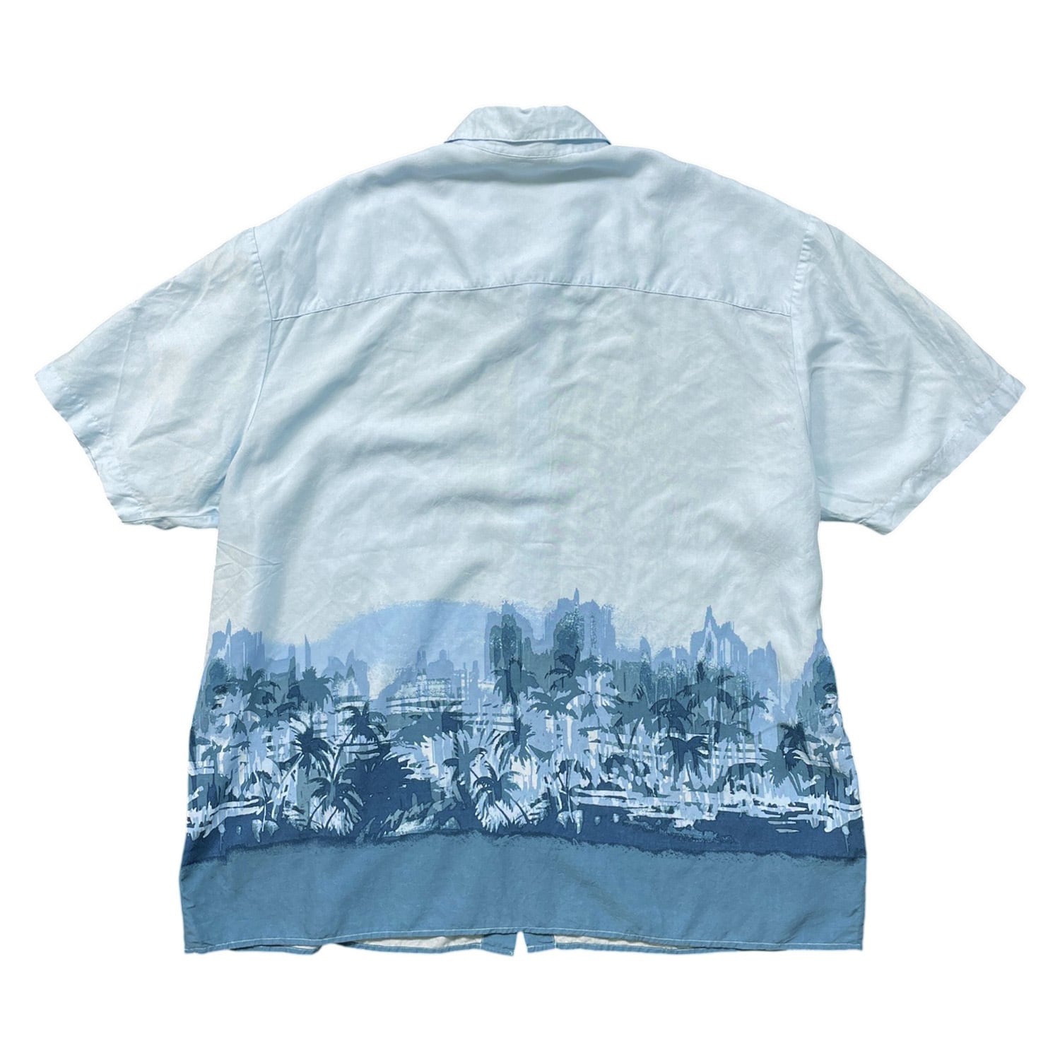 USA 古着 Munsingwear マンシングウェア レーヨン アロハシャツ ハワイアンシャツ 裾柄 パームツリー柄 メンズXL ブルー BF3965