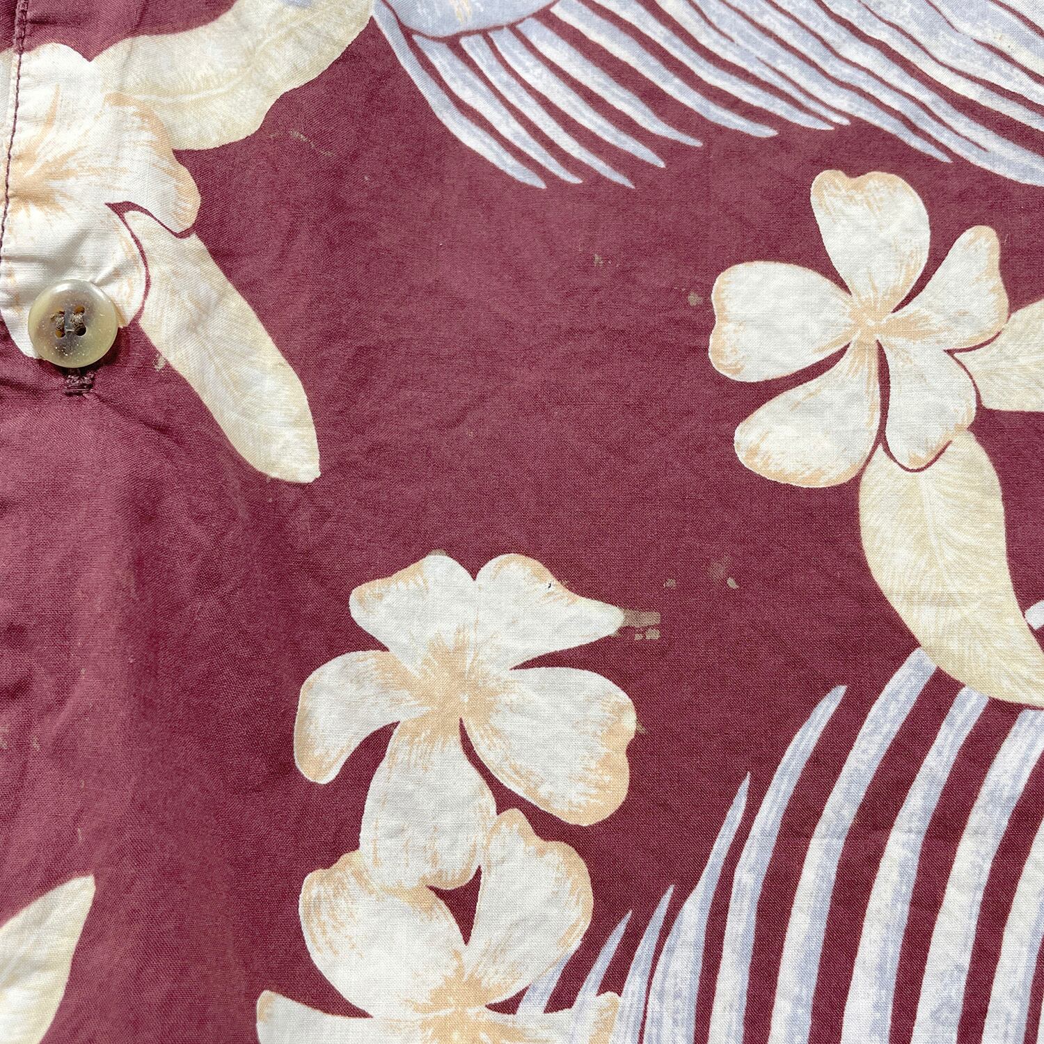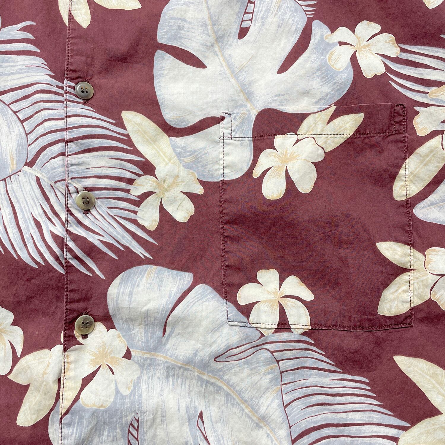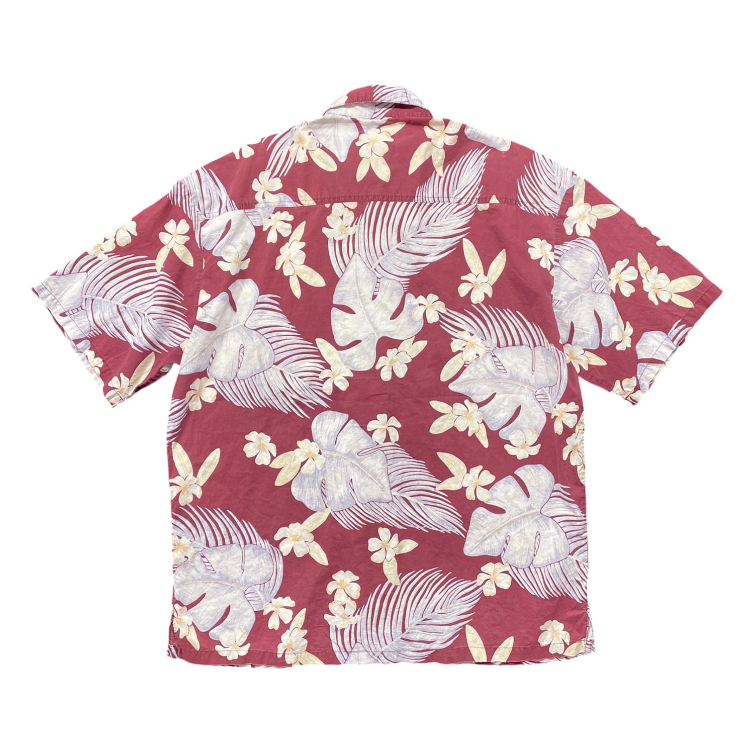 USA 古着 KAHALA カハラ コットン アロハシャツ ハワイアンシャツ モンステラ柄 プルメリア柄 メンズXL ボルドー BF3977