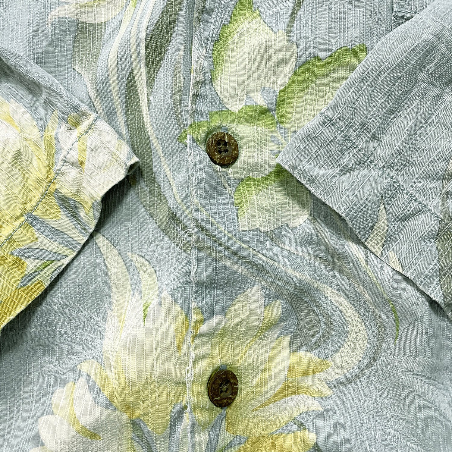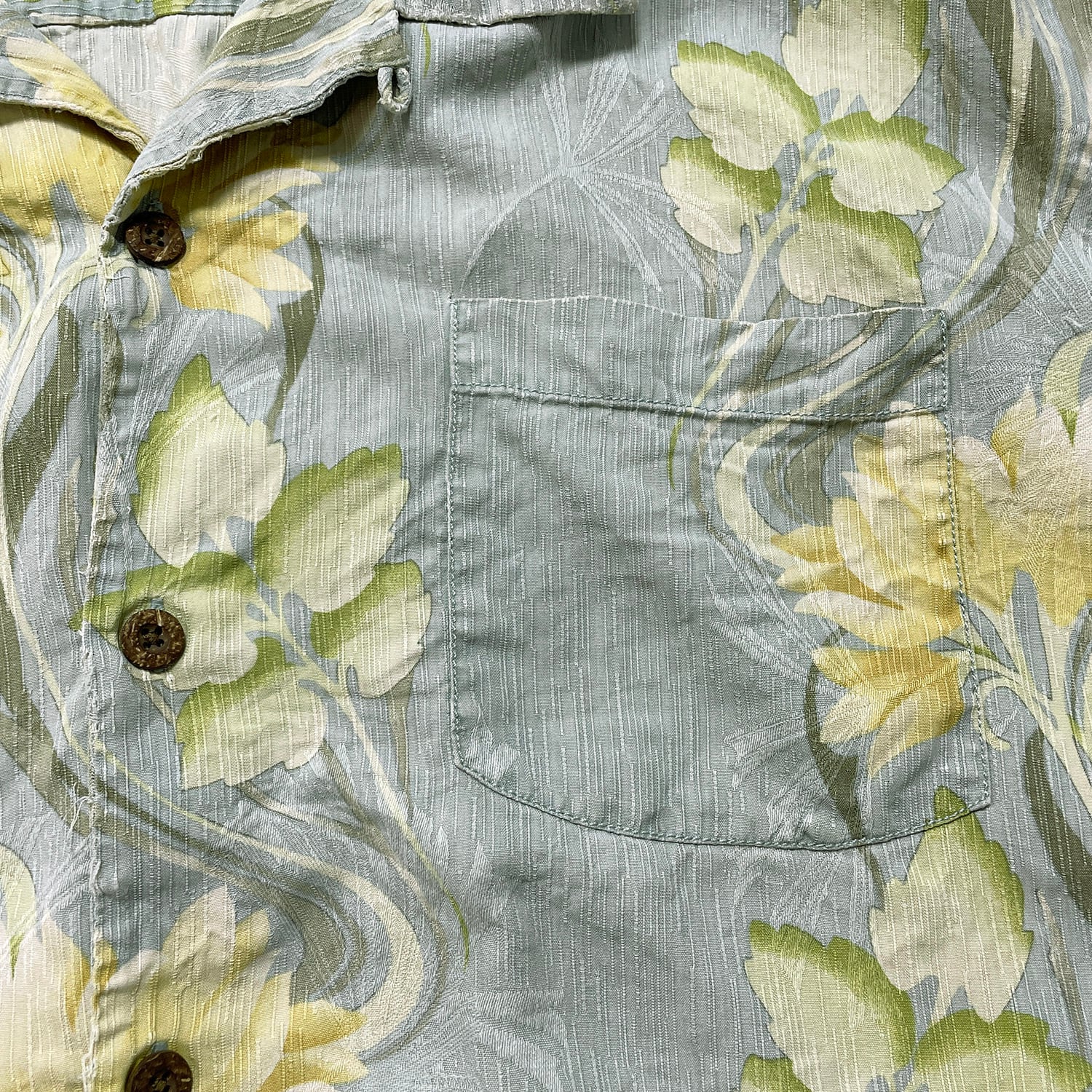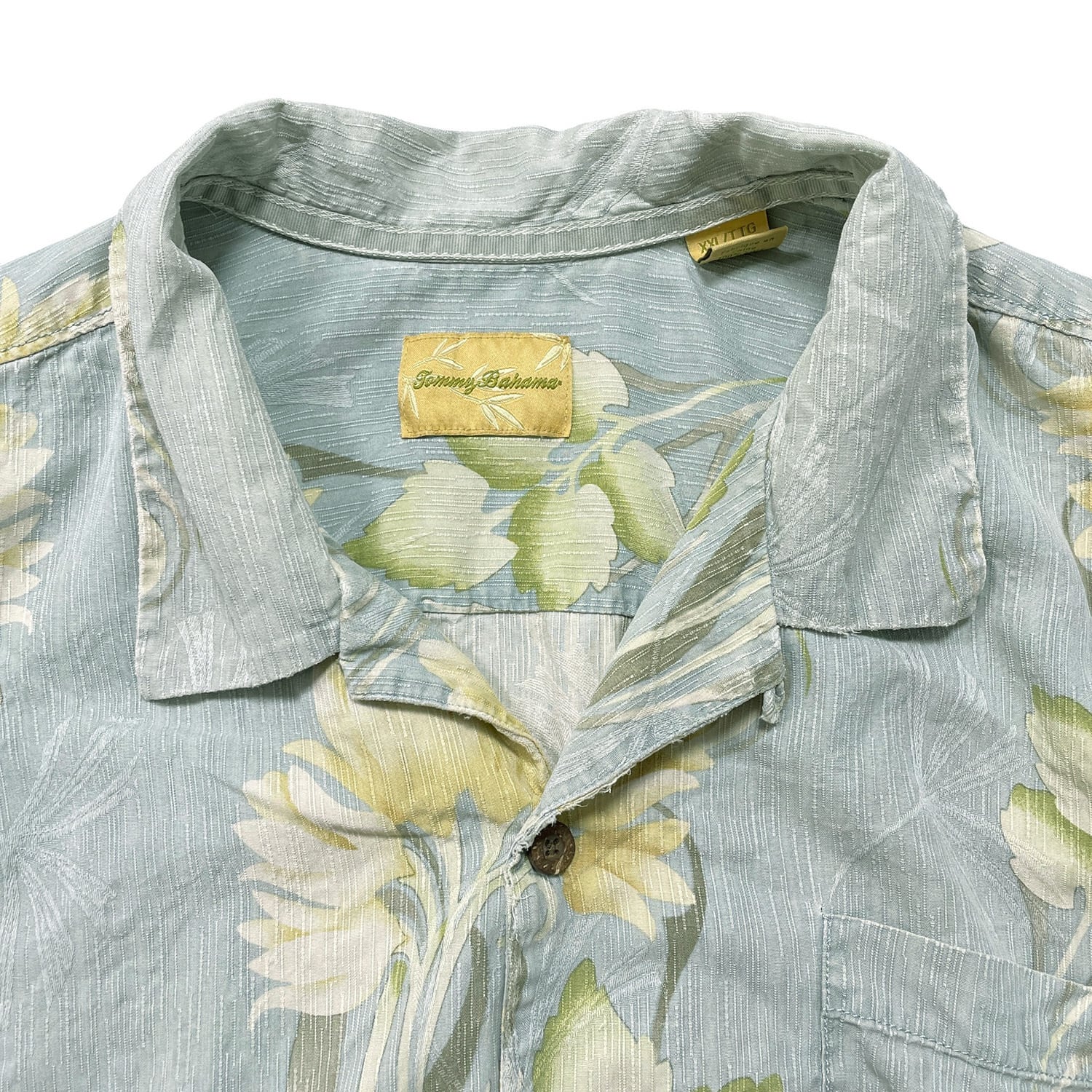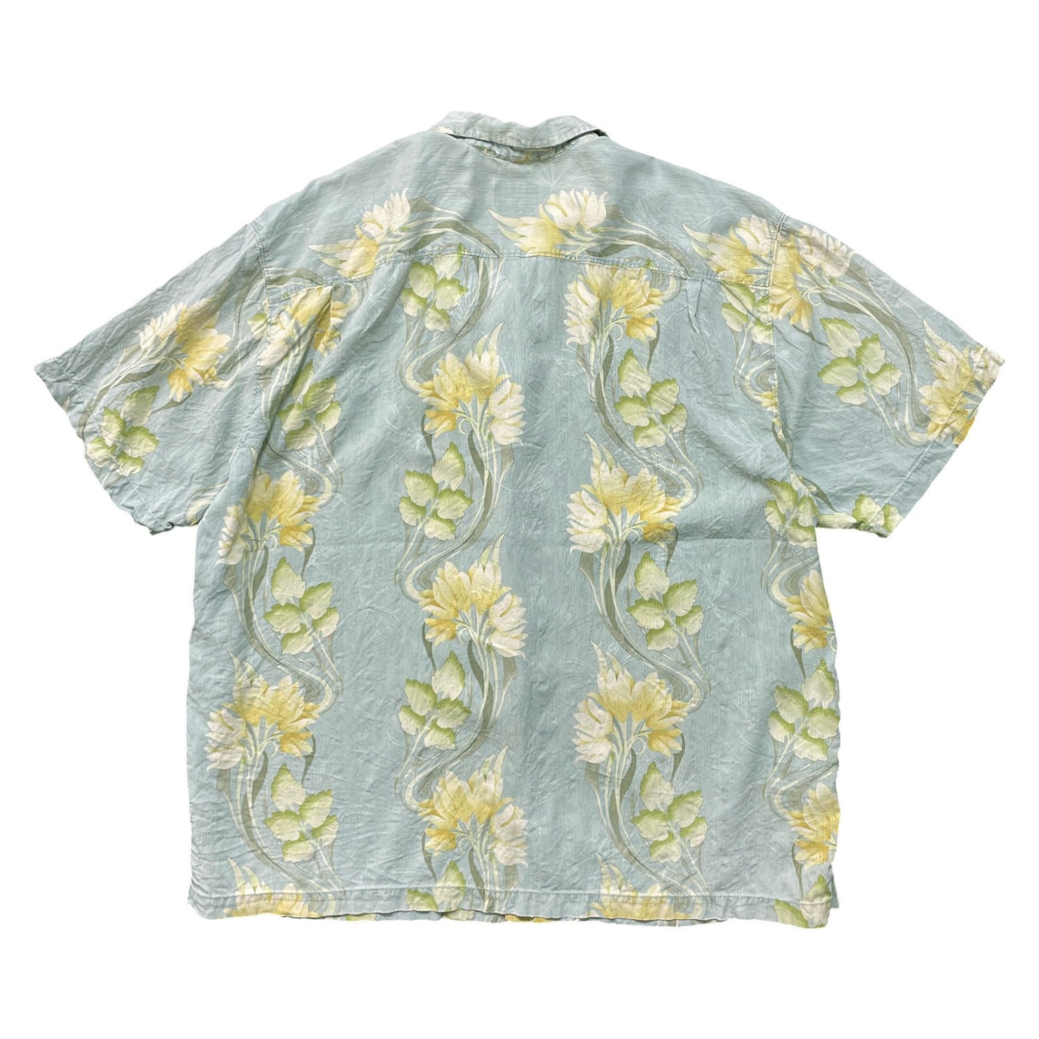 USA 古着 Tommy Bahama トミーバハマ シルク 開襟 アロハシャツ ハワイアンシャツ キャンプシャツ 花柄 メンズXL ブルー BF3974