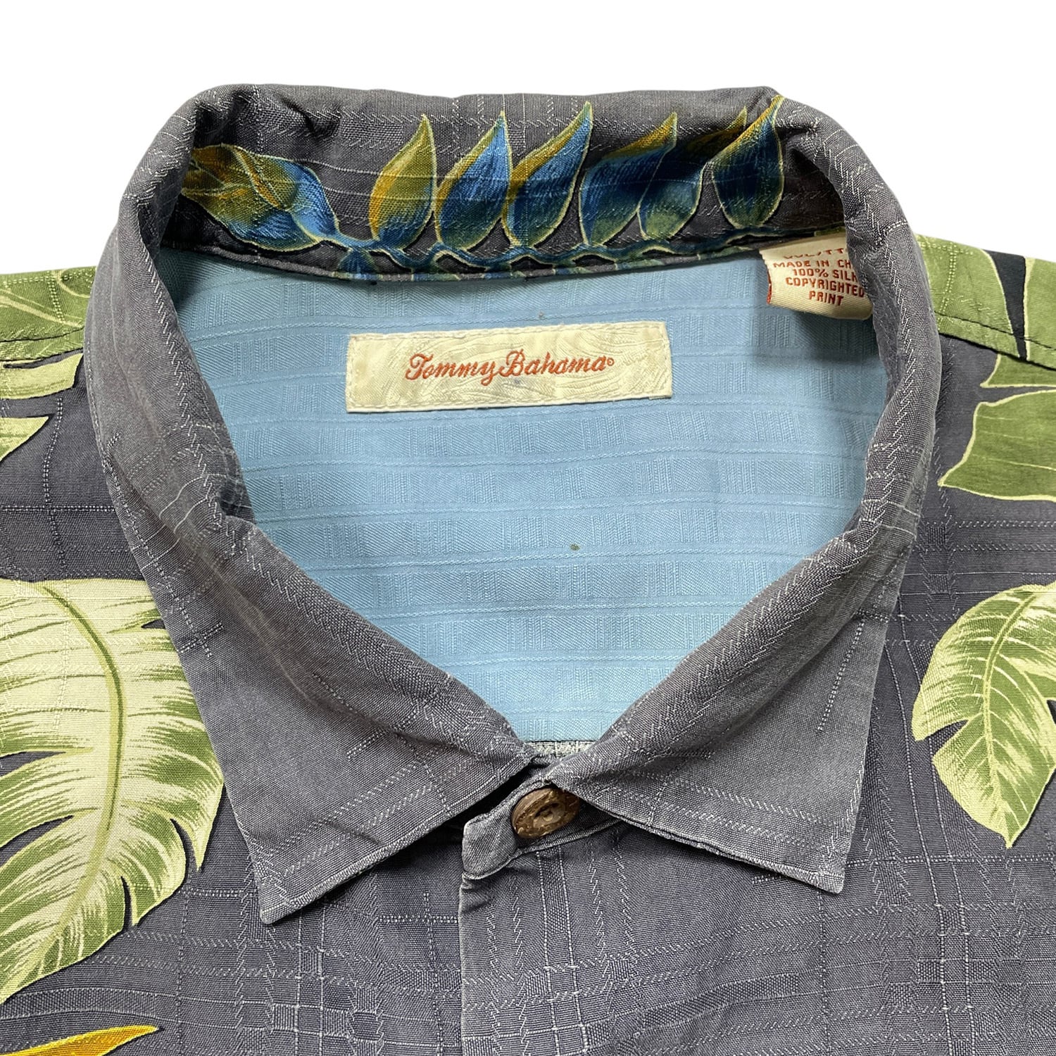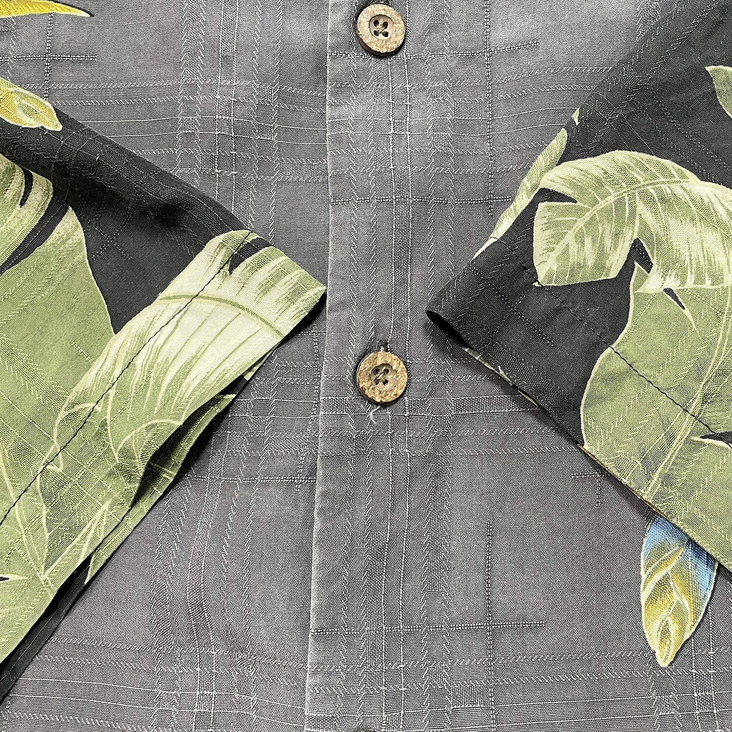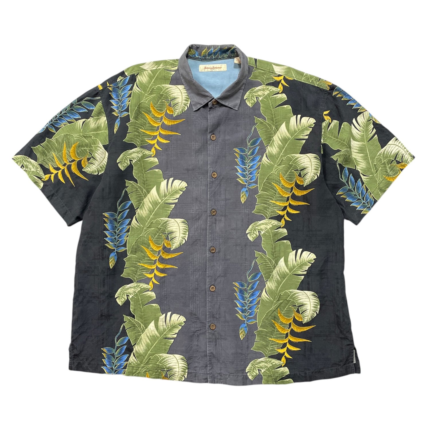 USA 古着 Tommy Bahama トミーバハマ シルク アロハシャツ ハワイアンシャツ キャンプシャツ ボタニカル柄 ストレリチア メンズXXL ブラック BF3975