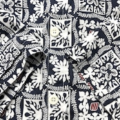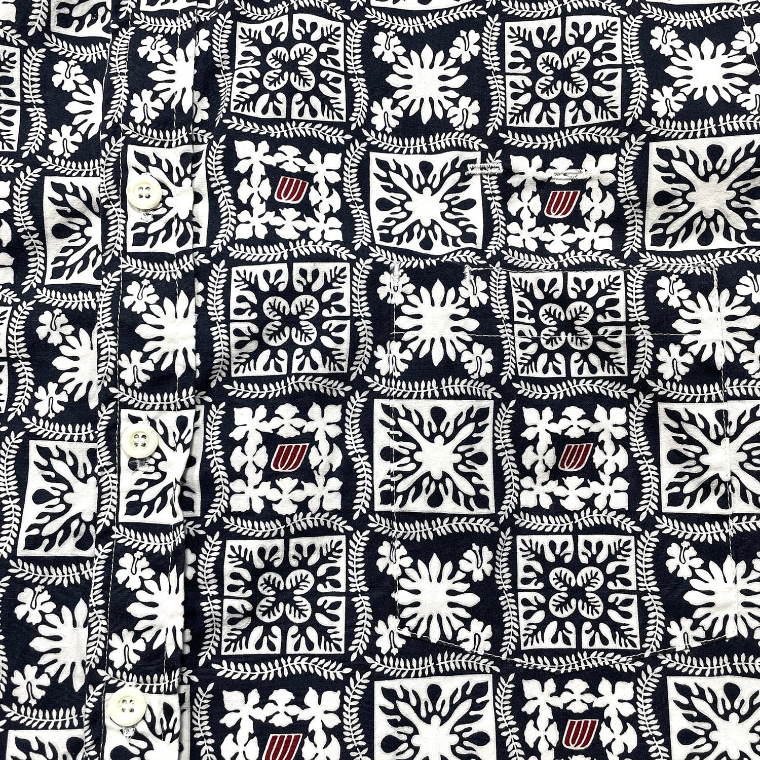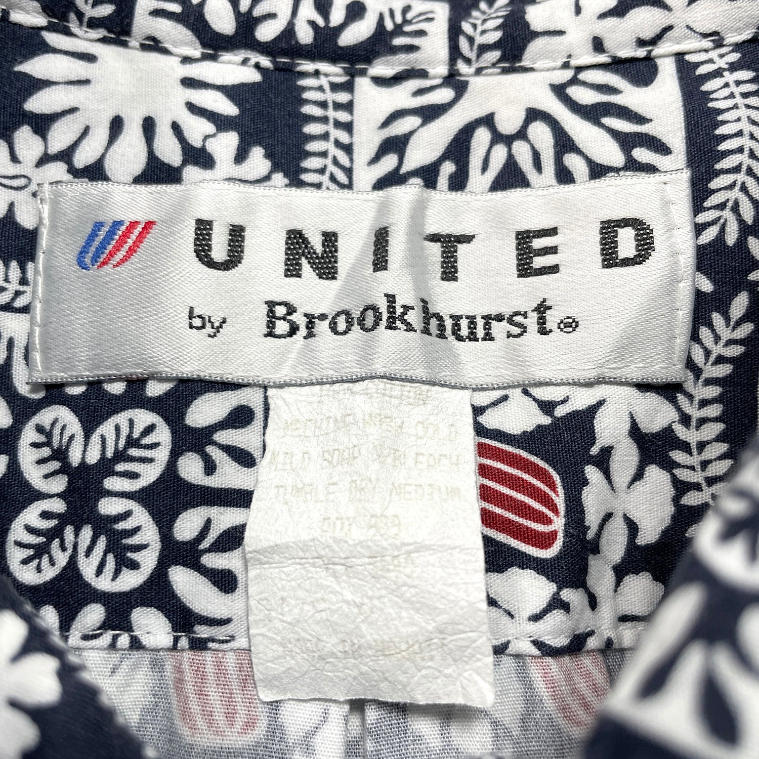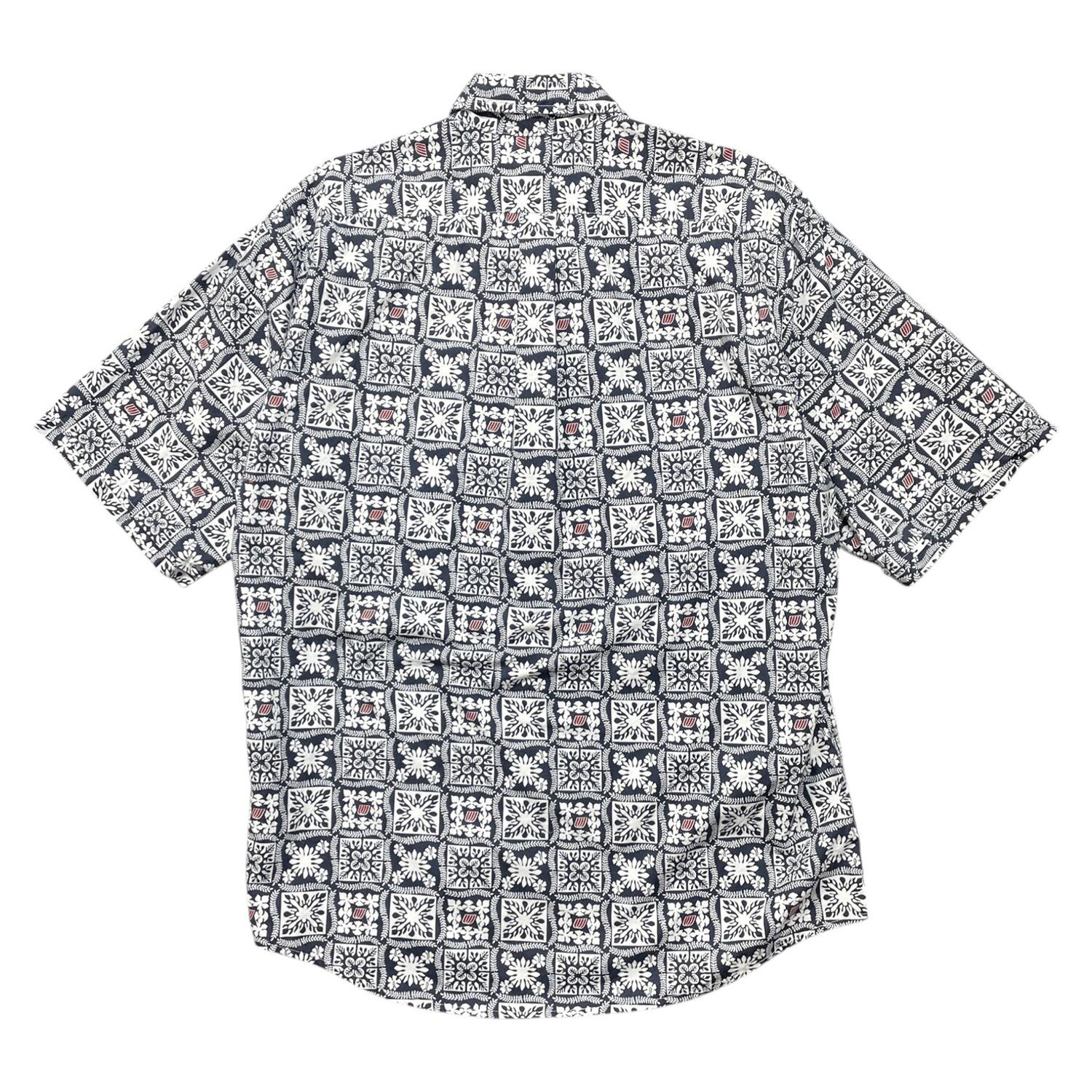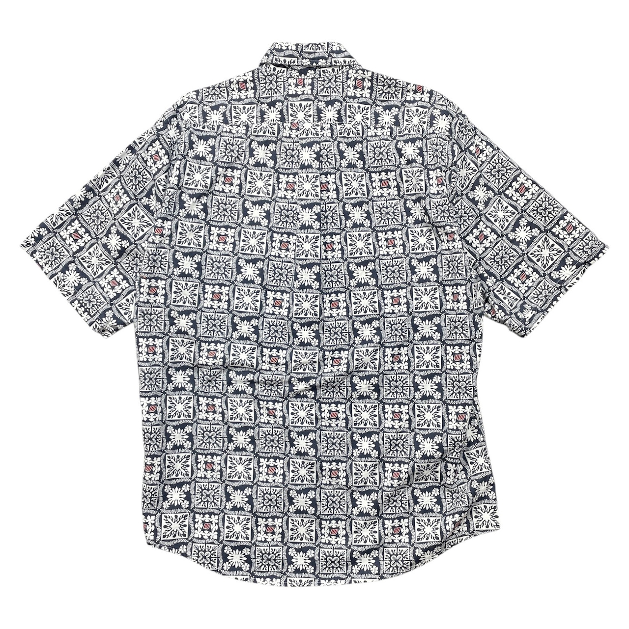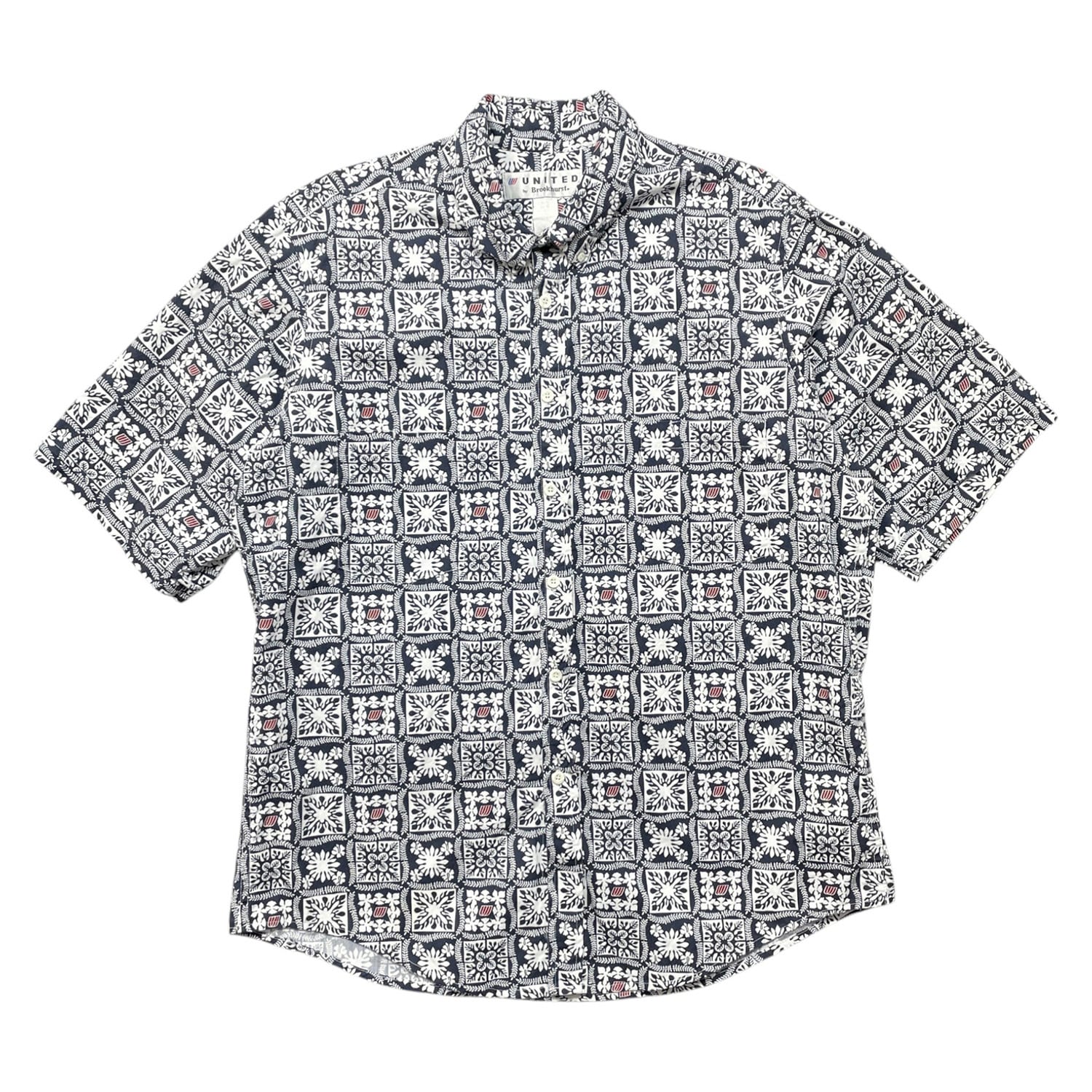 USA 古着 ハワイ製 UNITED by Brookhurst ユナイテッドバイブルックハースト ボタンダウン アロハシャツ ハワイアンシャツ 総柄 幾何学模様 メンズXL ネイビー BF3993