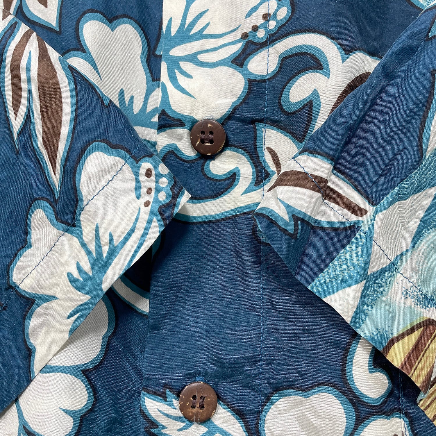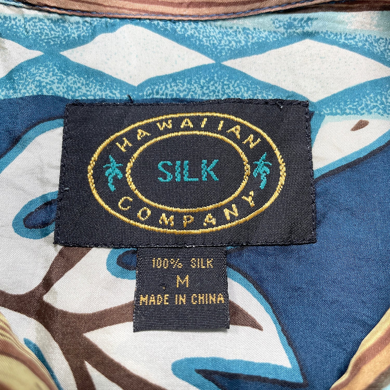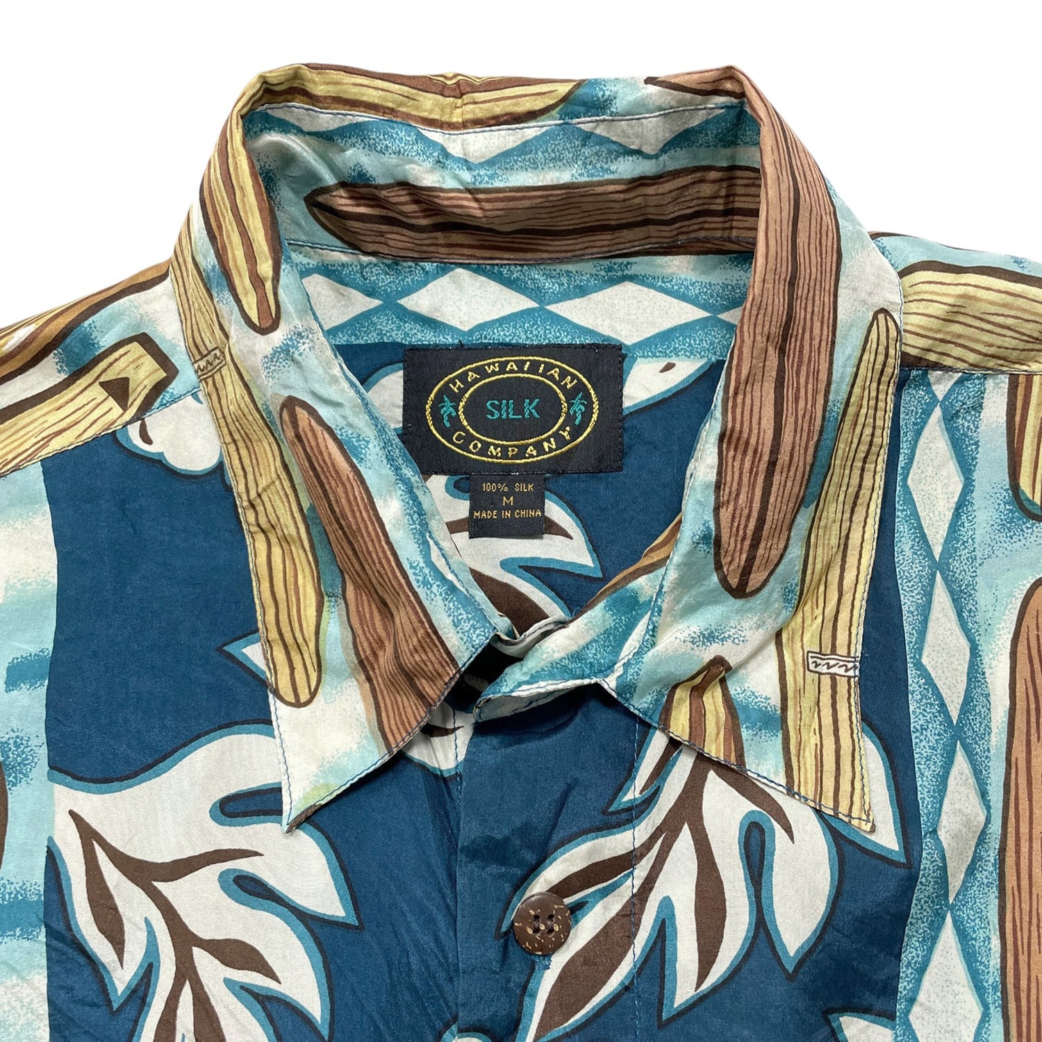 USA 古着 HAWAIIAN SILK COMPANY ハワイアンシルクカンパニー シルク アロハシャツ ハワイアンシャツ サーフボード柄 ハイビスカス柄 メンズM ネイビー BF3996