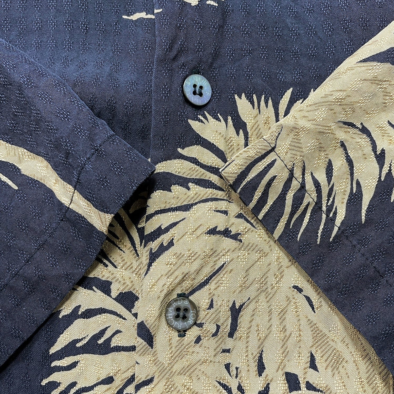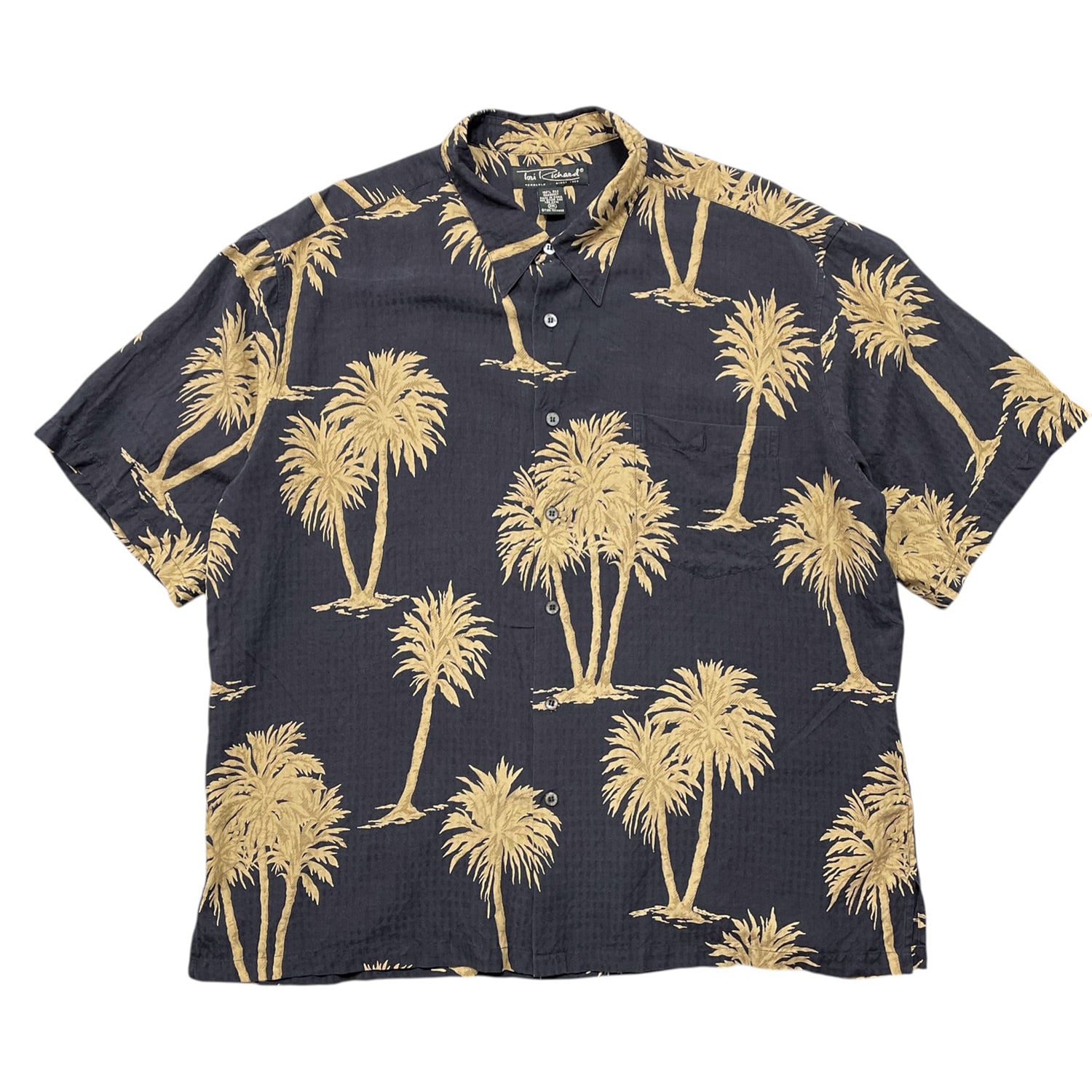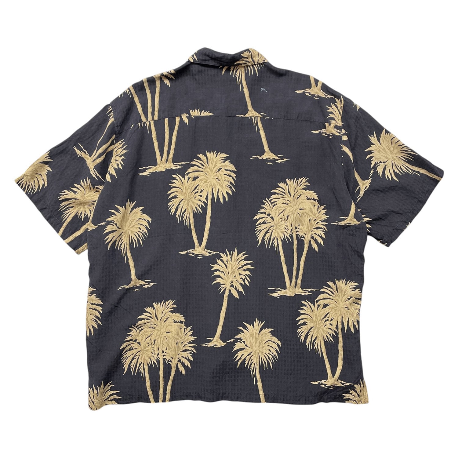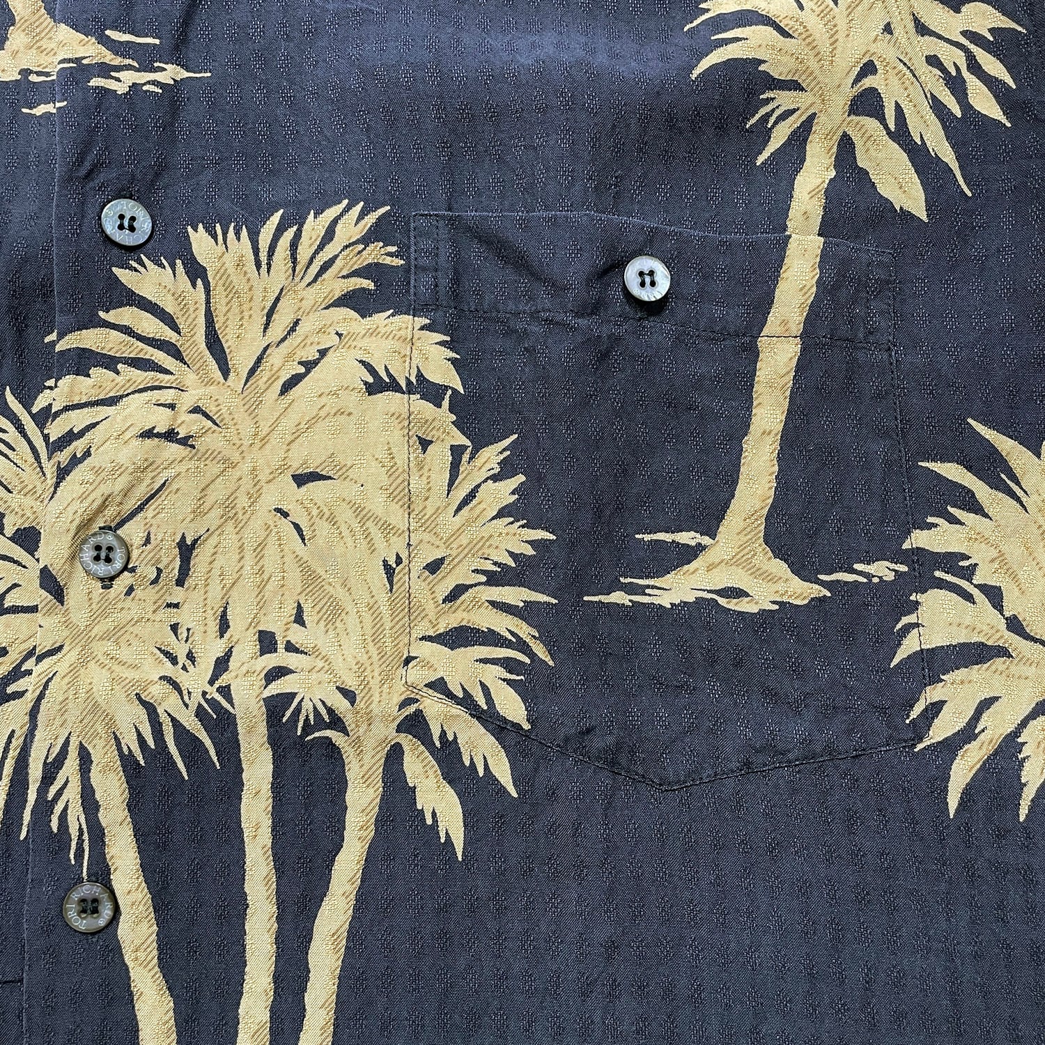 USA 古着 Tori Richard トリ リチャード シルク アロハシャツ ハワイアンシャツ 柄合わせ パームツリー柄 ヤシの木 メンズ2XL ブラック 大きいサイズ BF3999