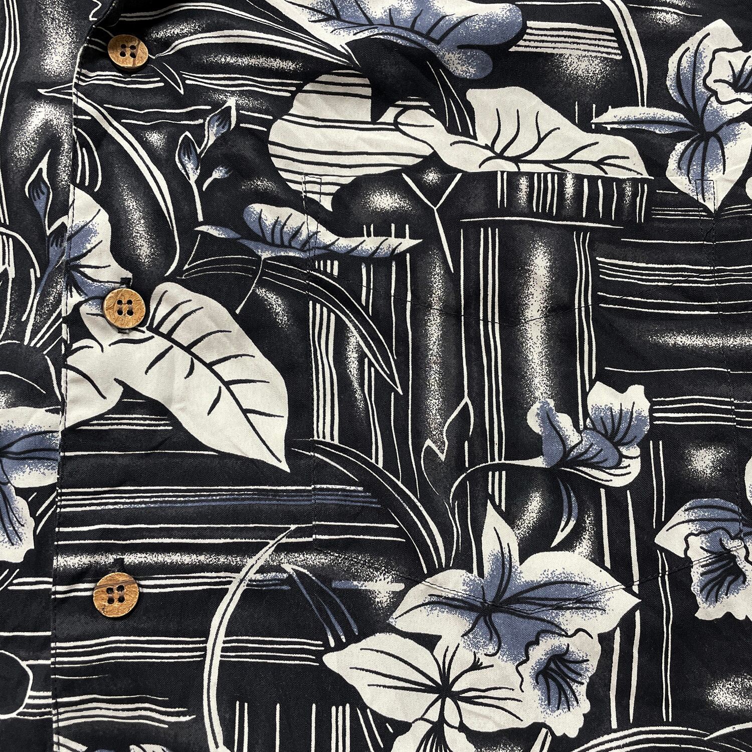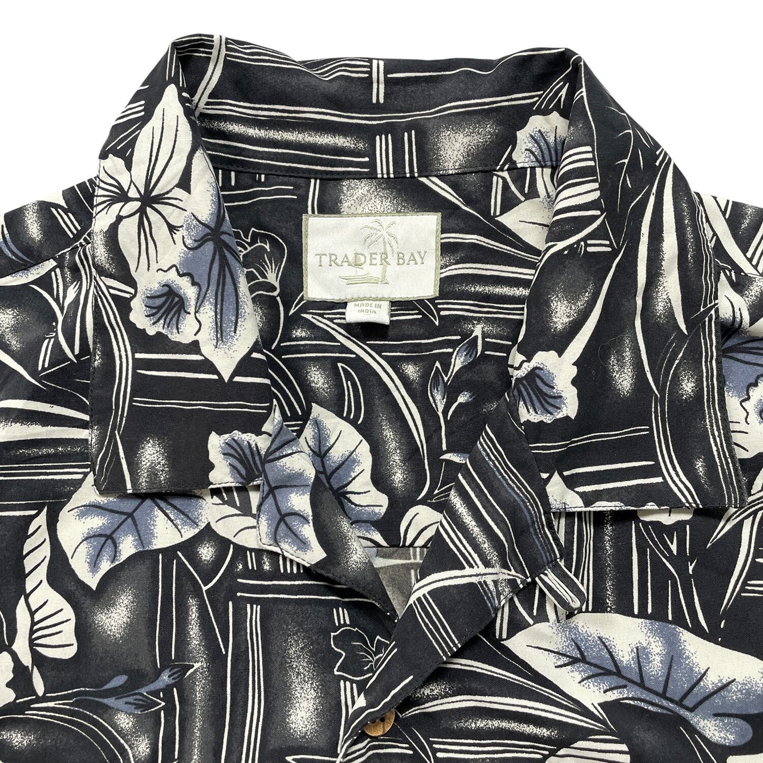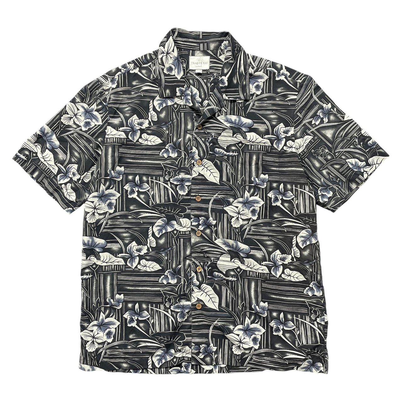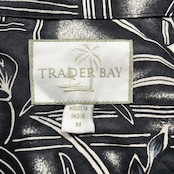 USA 古着 TRADER BAY トレーダーベイ ポリエステル 開襟 アロハシャツ ハワイアンシャツ 総柄 花柄 メンズM ネイビー BF4000