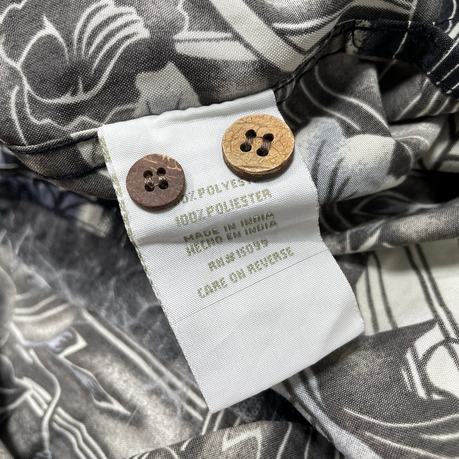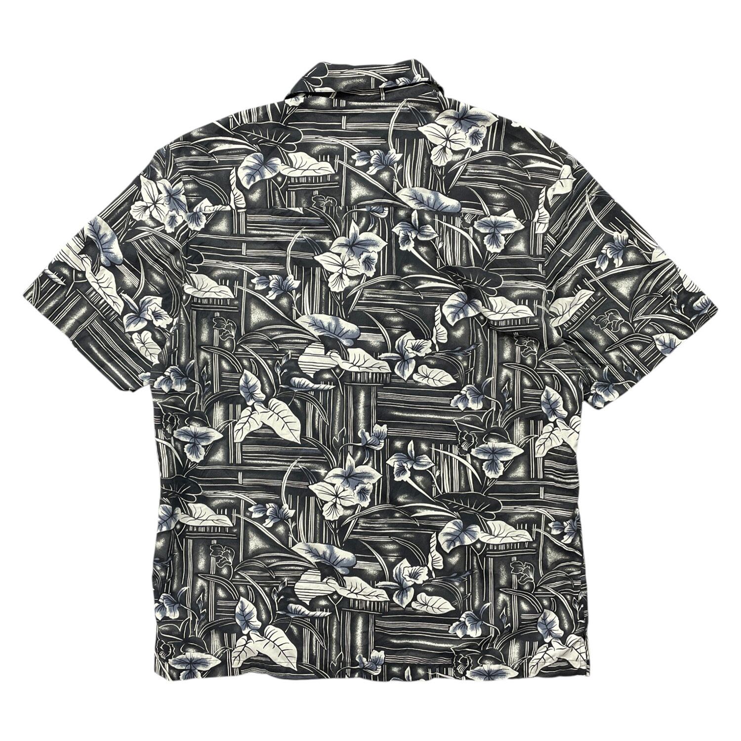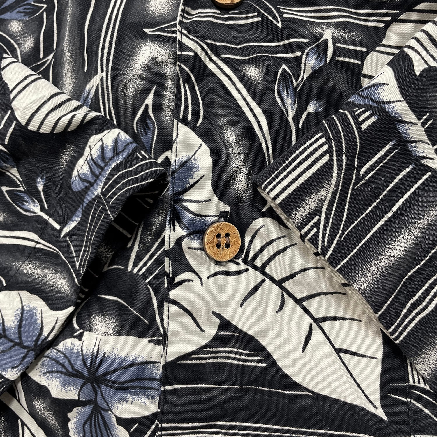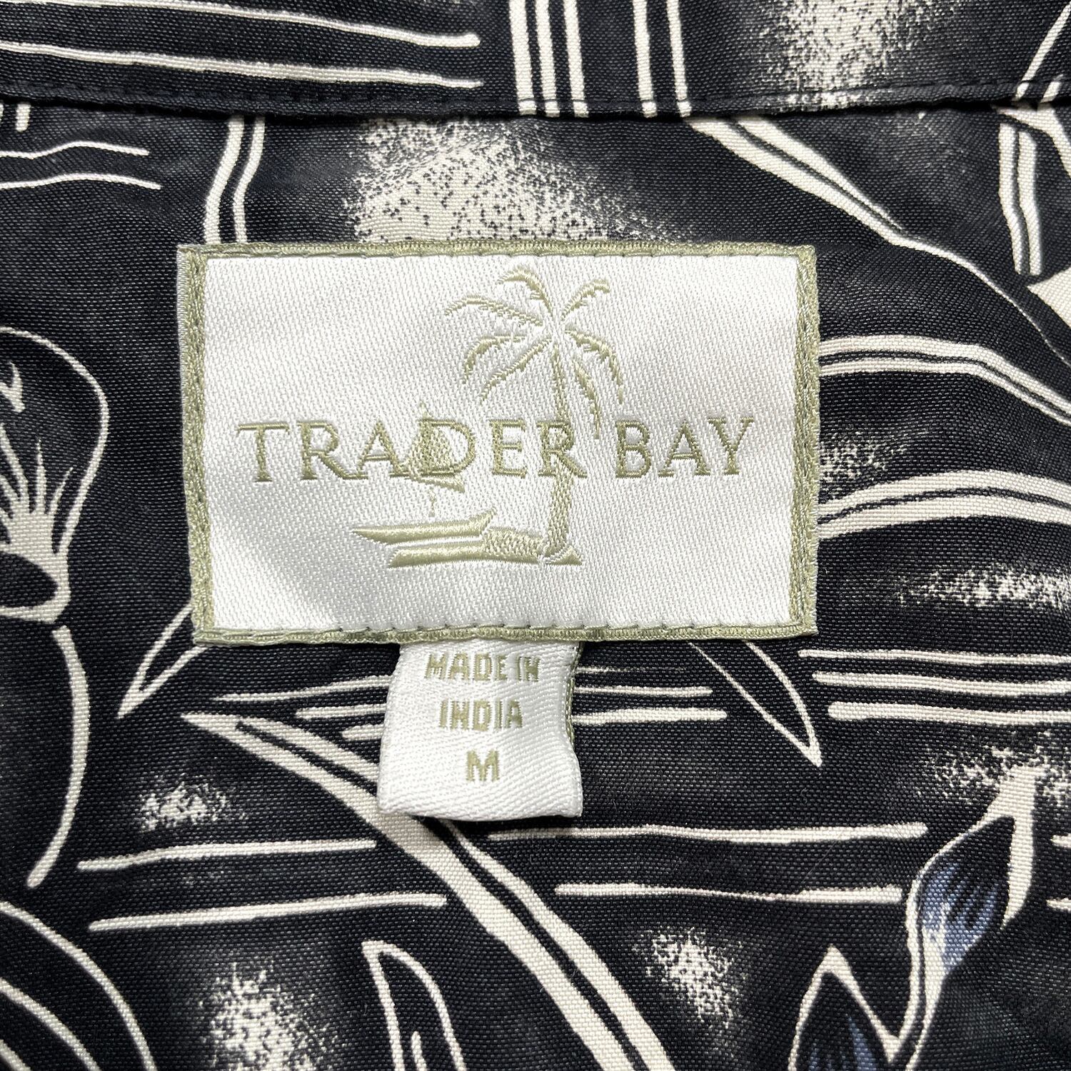 USA 古着 TRADER BAY トレーダーベイ ポリエステル 開襟 アロハシャツ ハワイアンシャツ 総柄 花柄 メンズM ネイビー BF4000