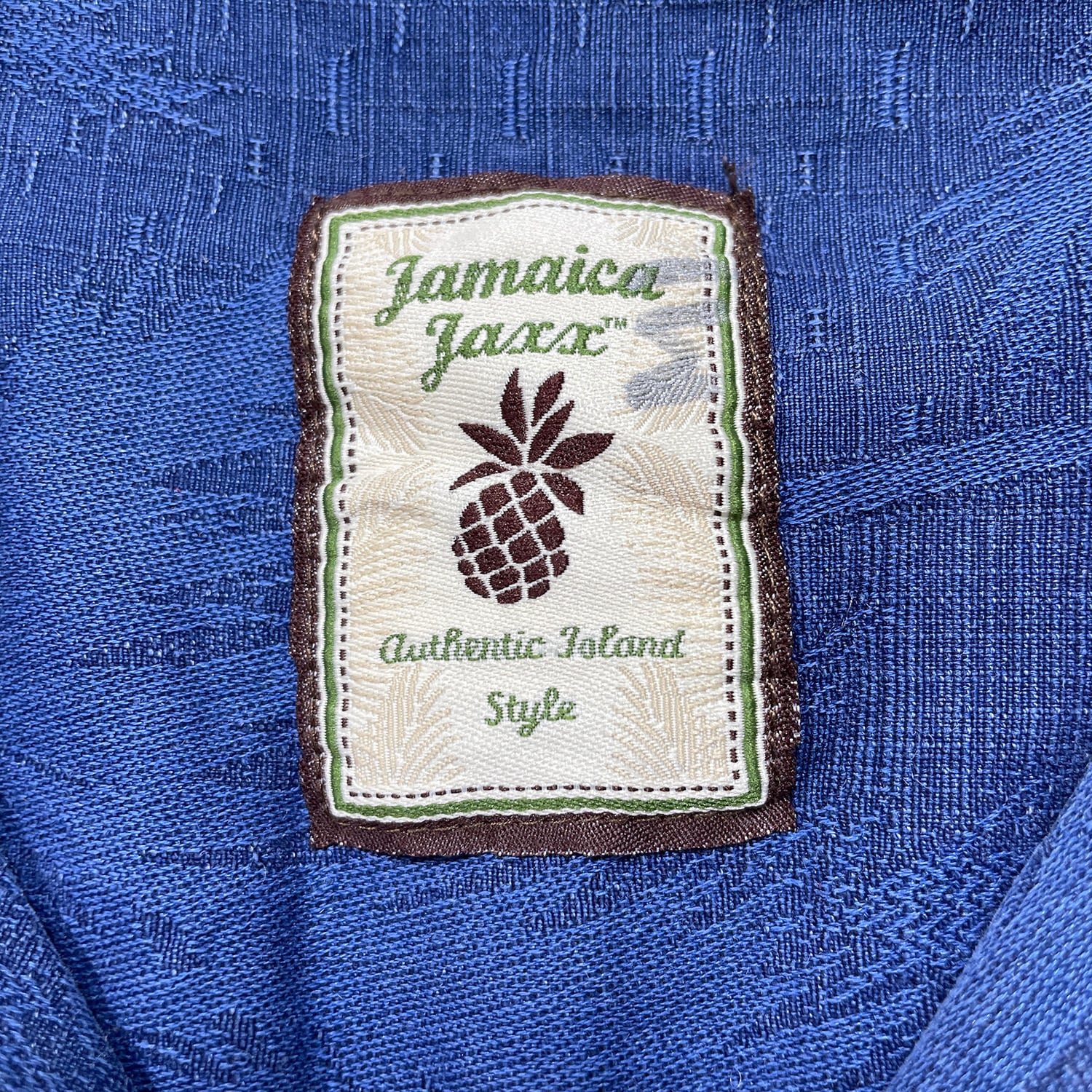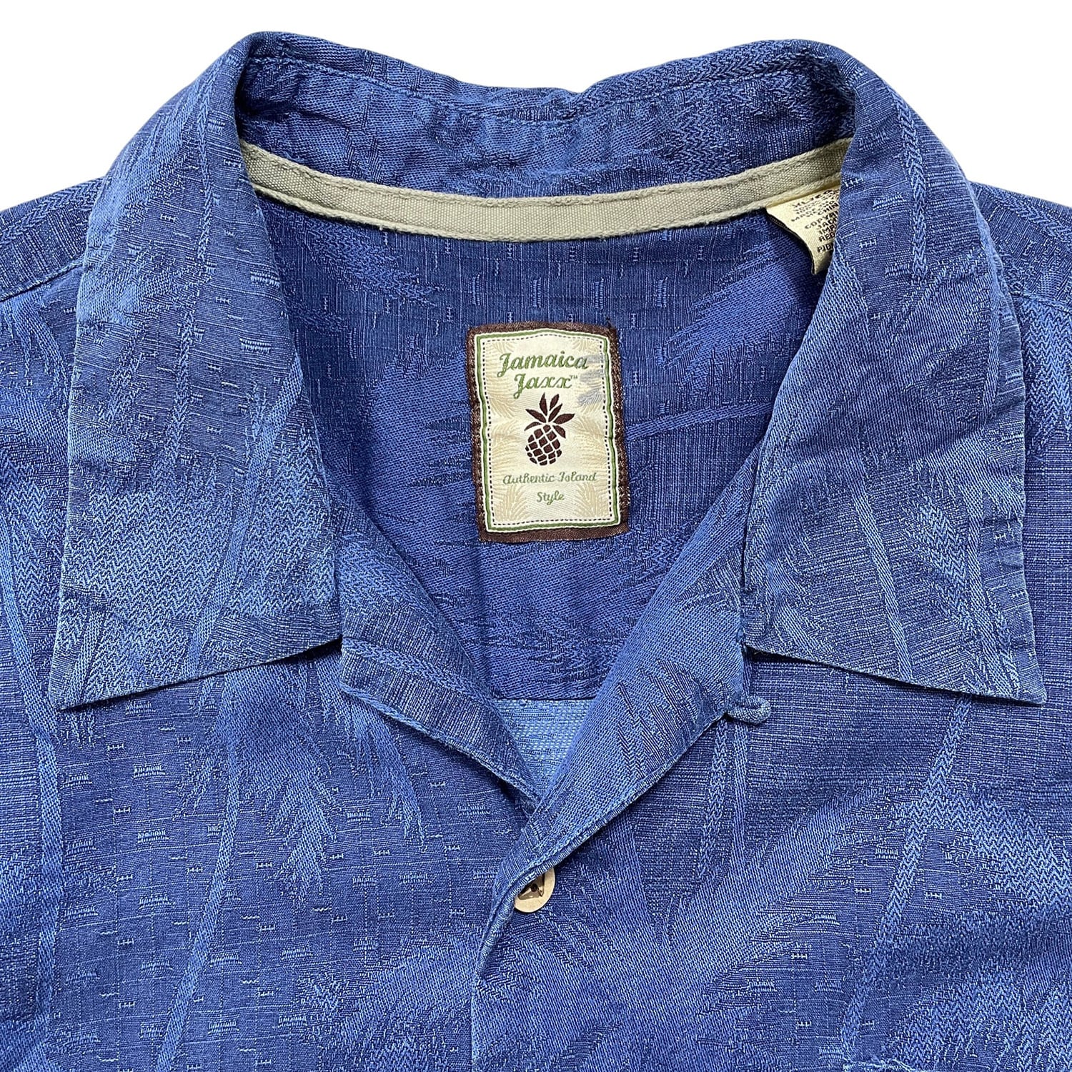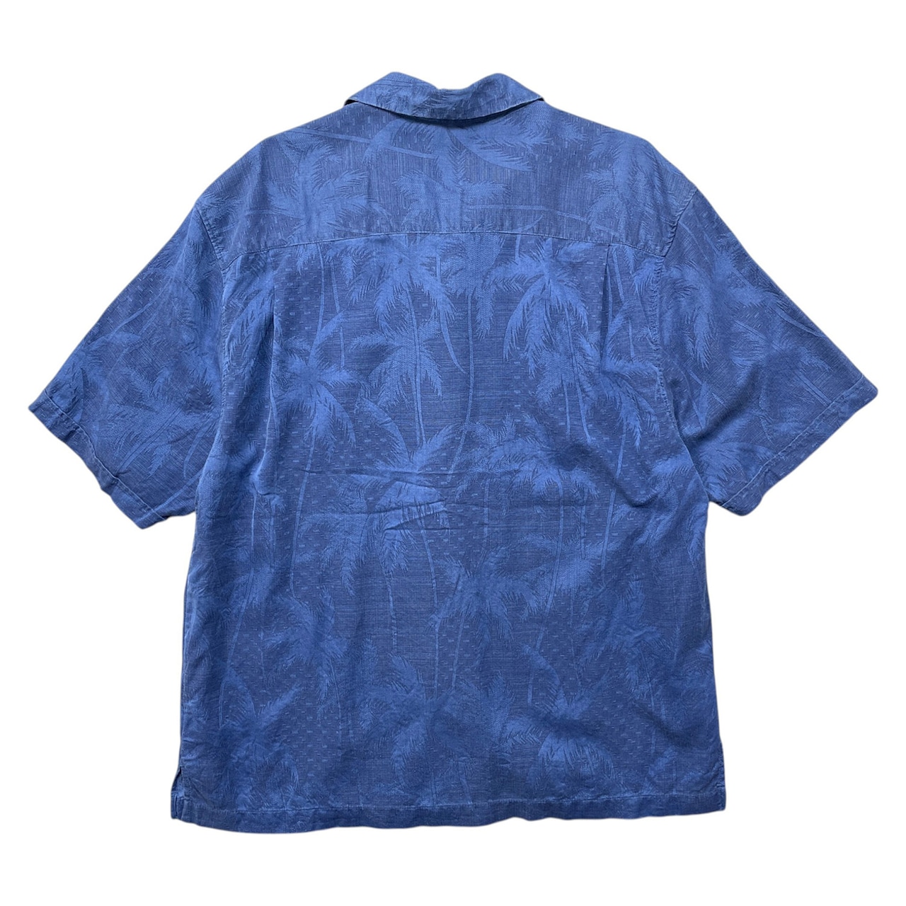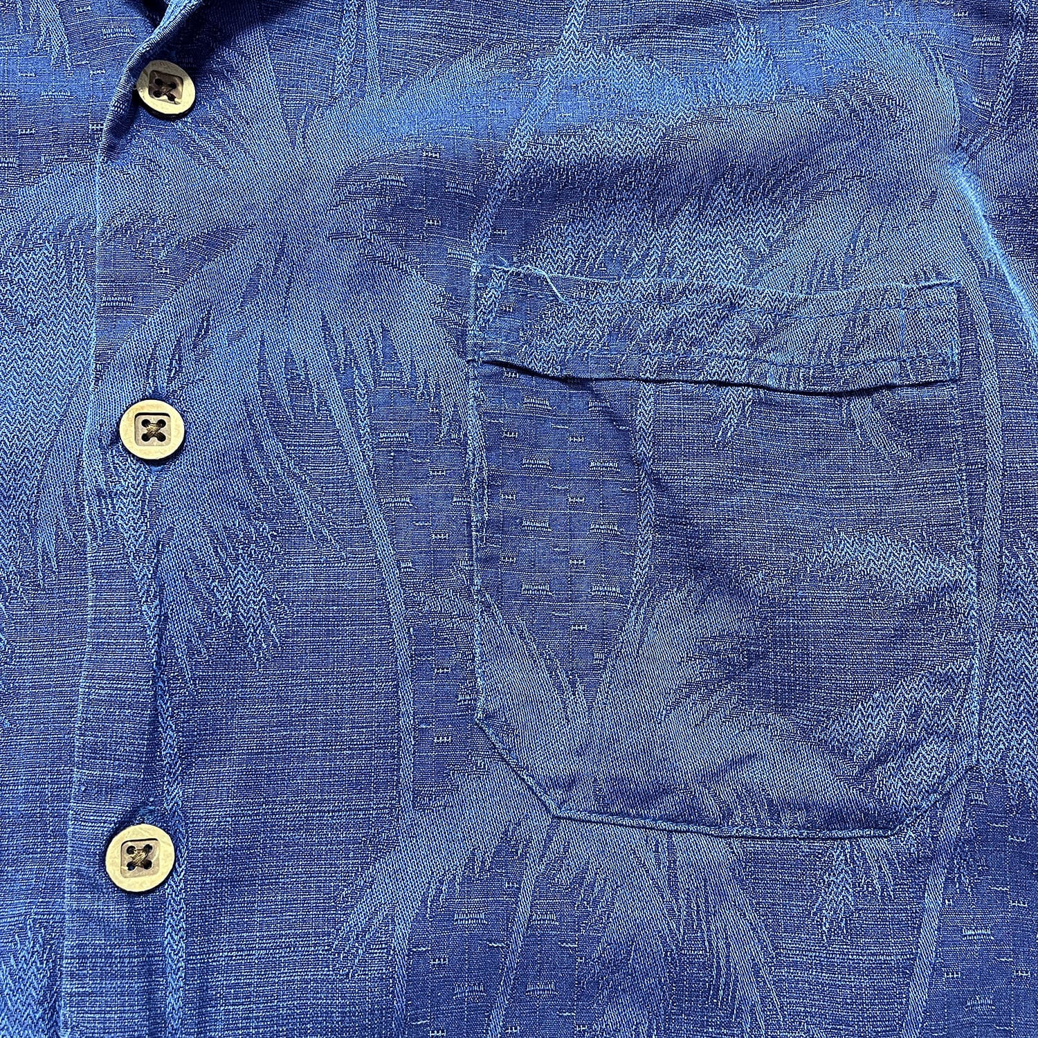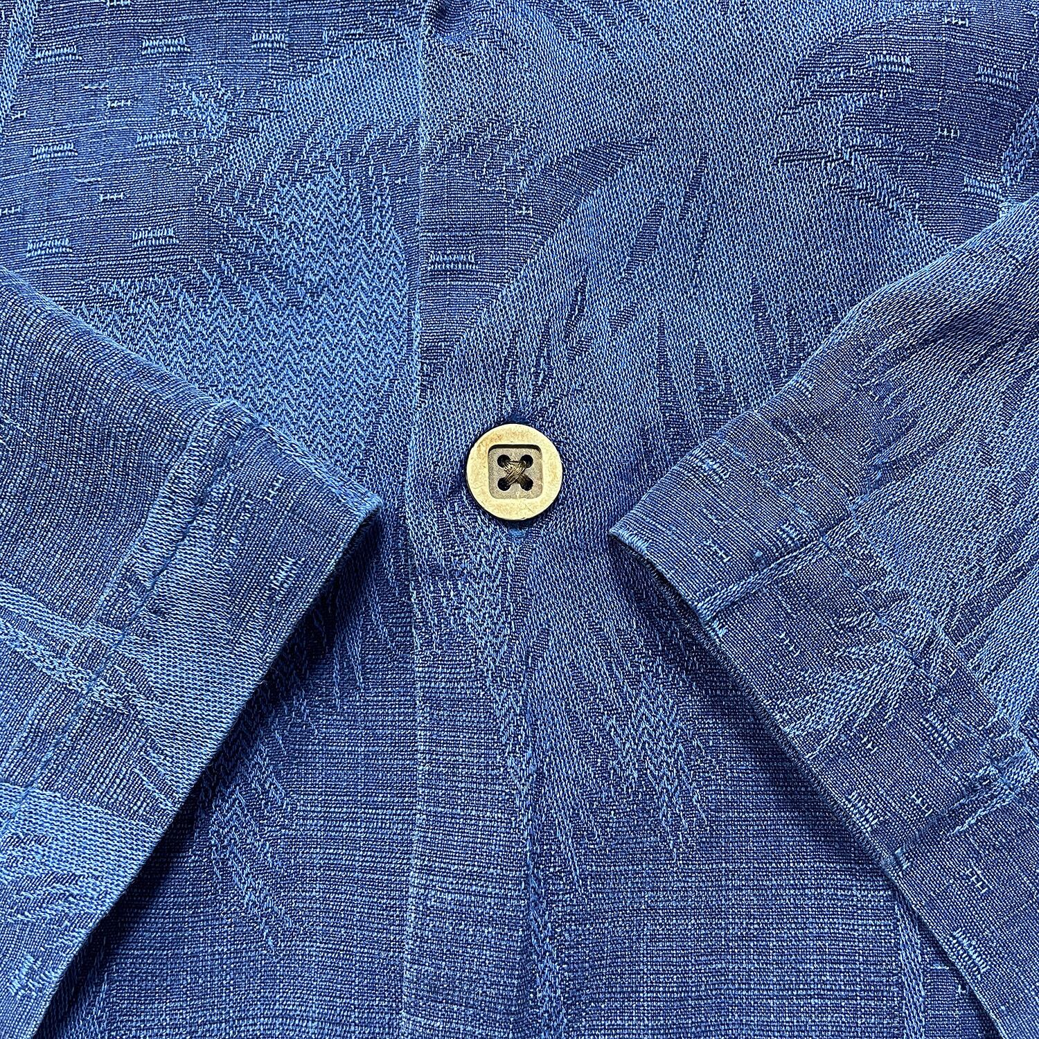 USA 古着 JAMAICA JAXX ジャマイカジャックス シルク 開襟 アロハシャツ ハワイアンシャツ ジャガード パームツリー柄 メンズXL ネイビー BF4009