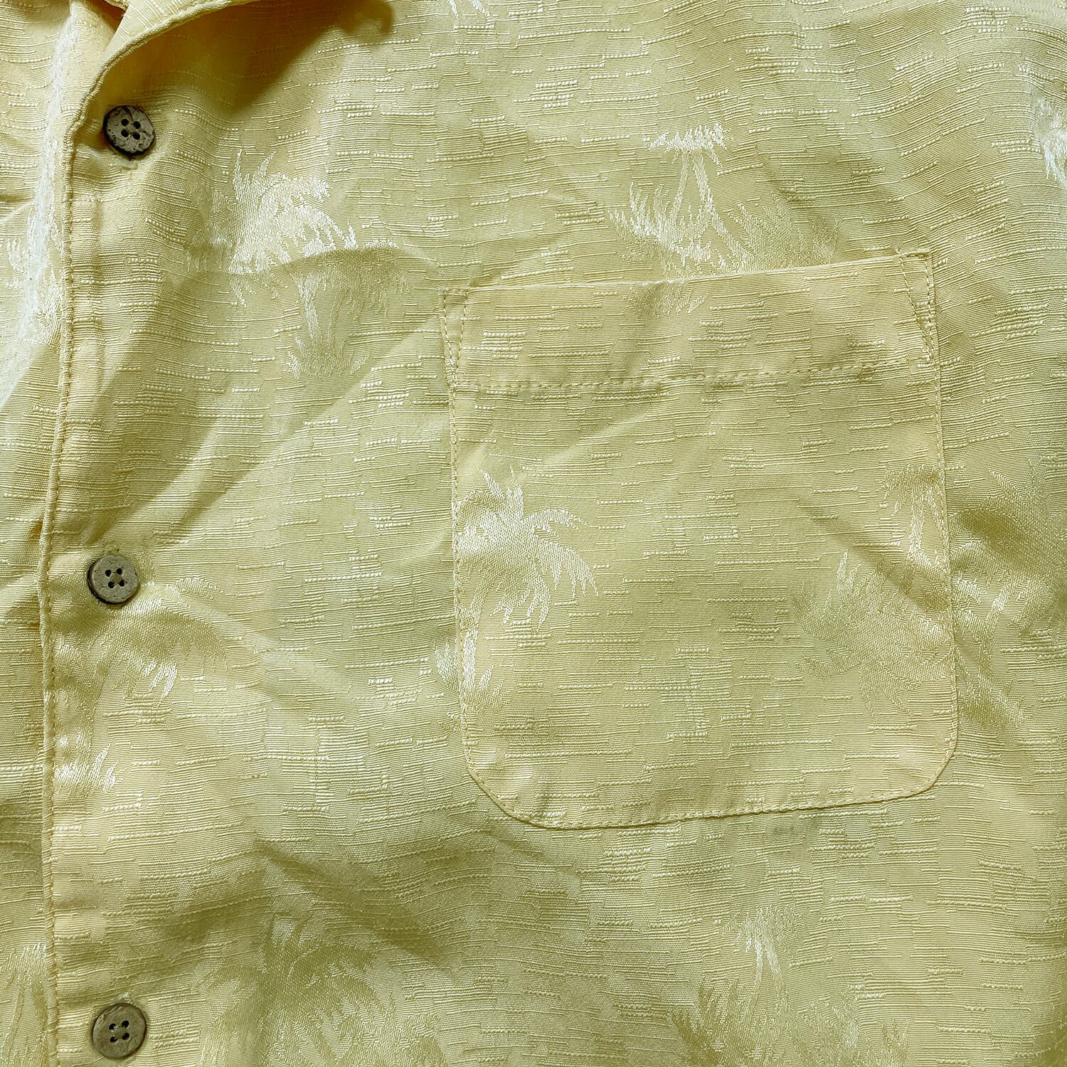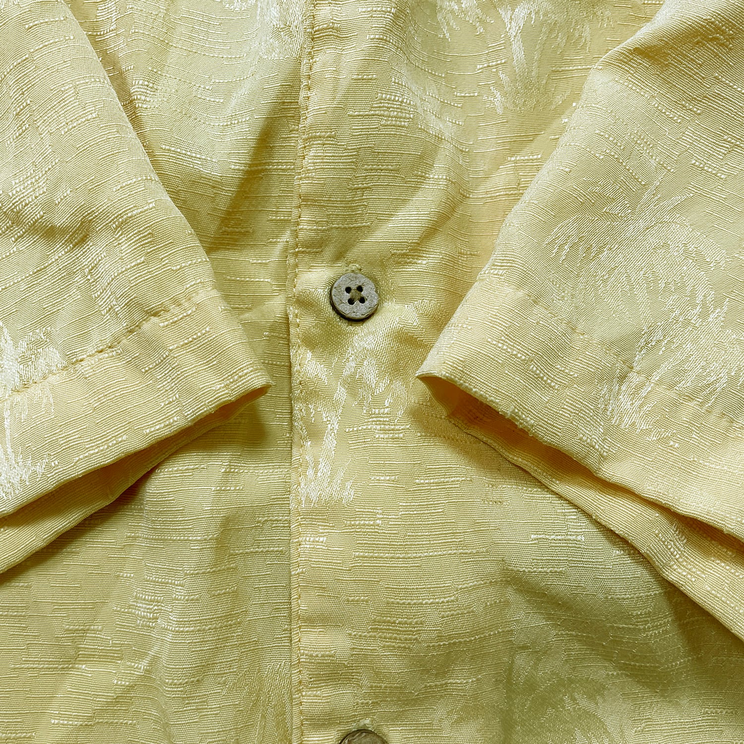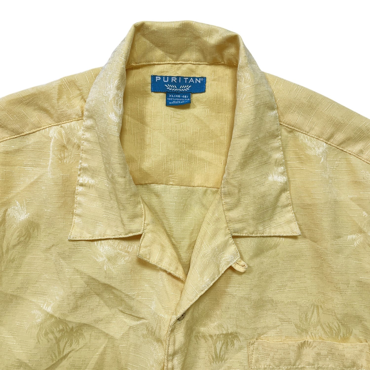 USA 古着 PURITAN ピューリタン ポリエステル 開襟 アロハシャツ ハワイアンシャツ パームツリー柄 ジャガード メンズXL イエロー BF4012