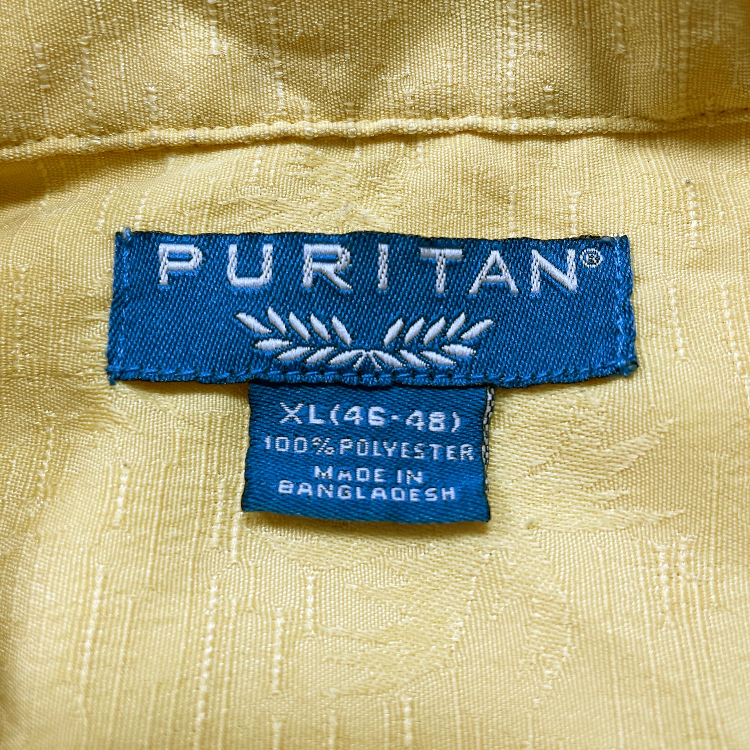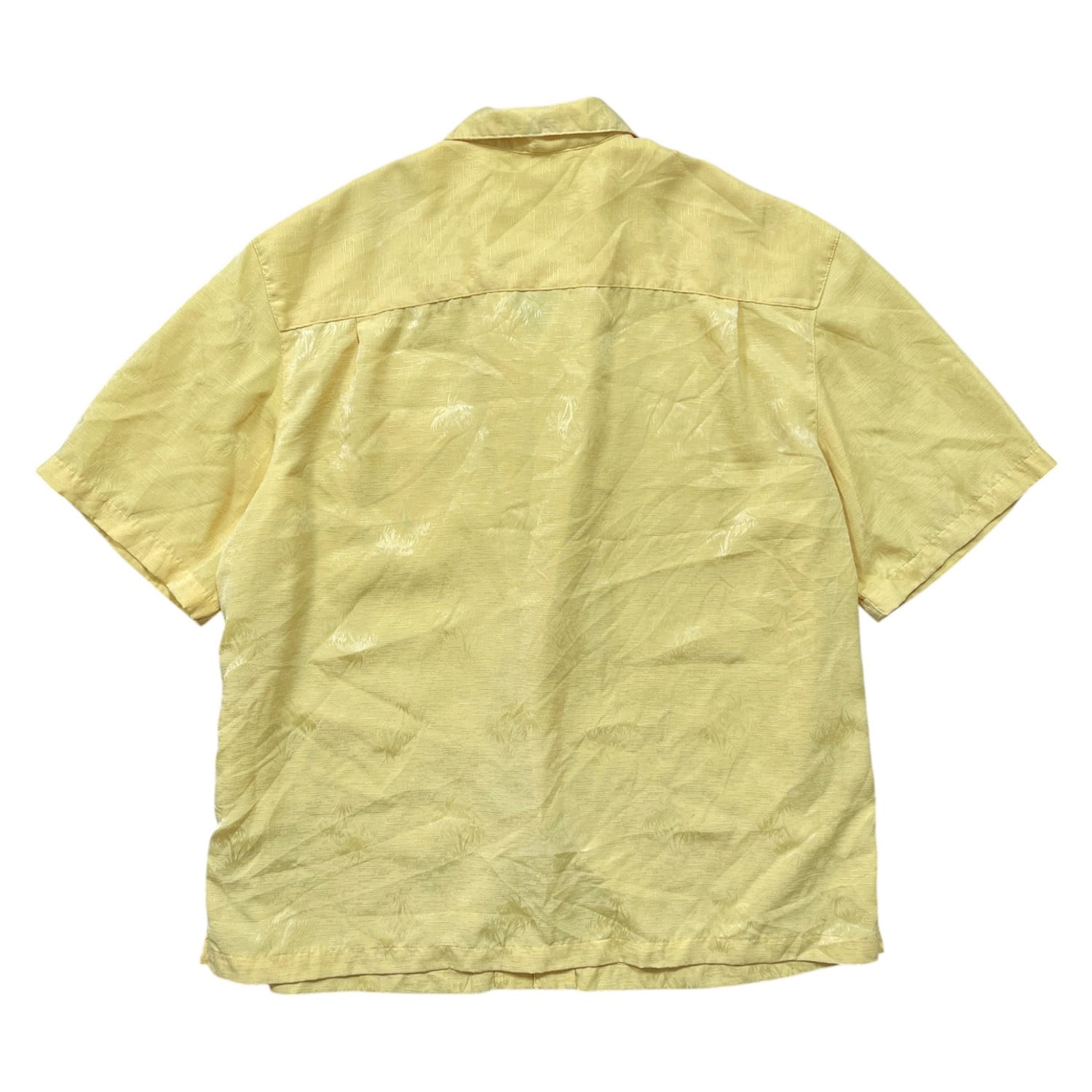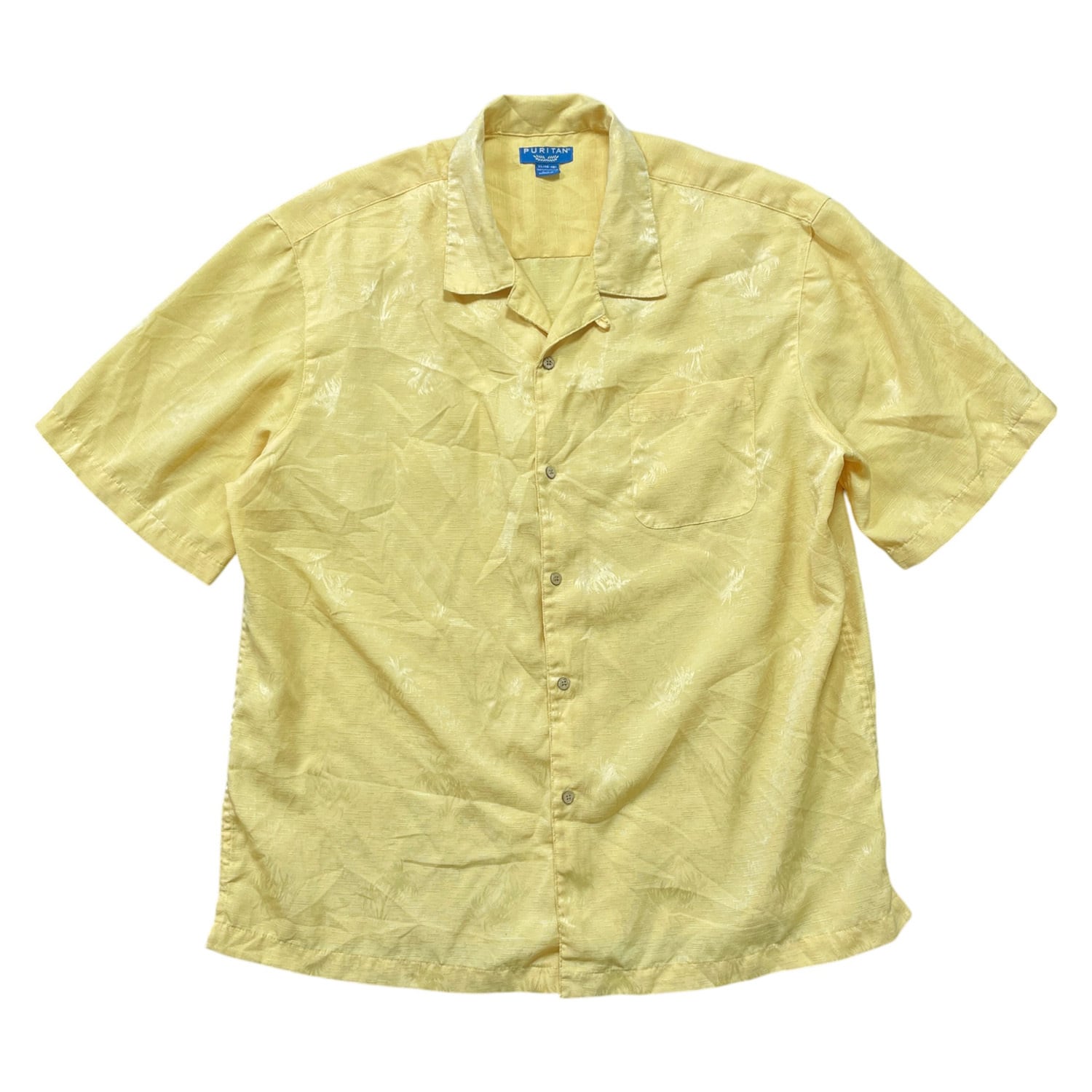 USA 古着 PURITAN ピューリタン ポリエステル 開襟 アロハシャツ ハワイアンシャツ パームツリー柄 ジャガード メンズXL イエロー BF4012