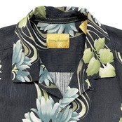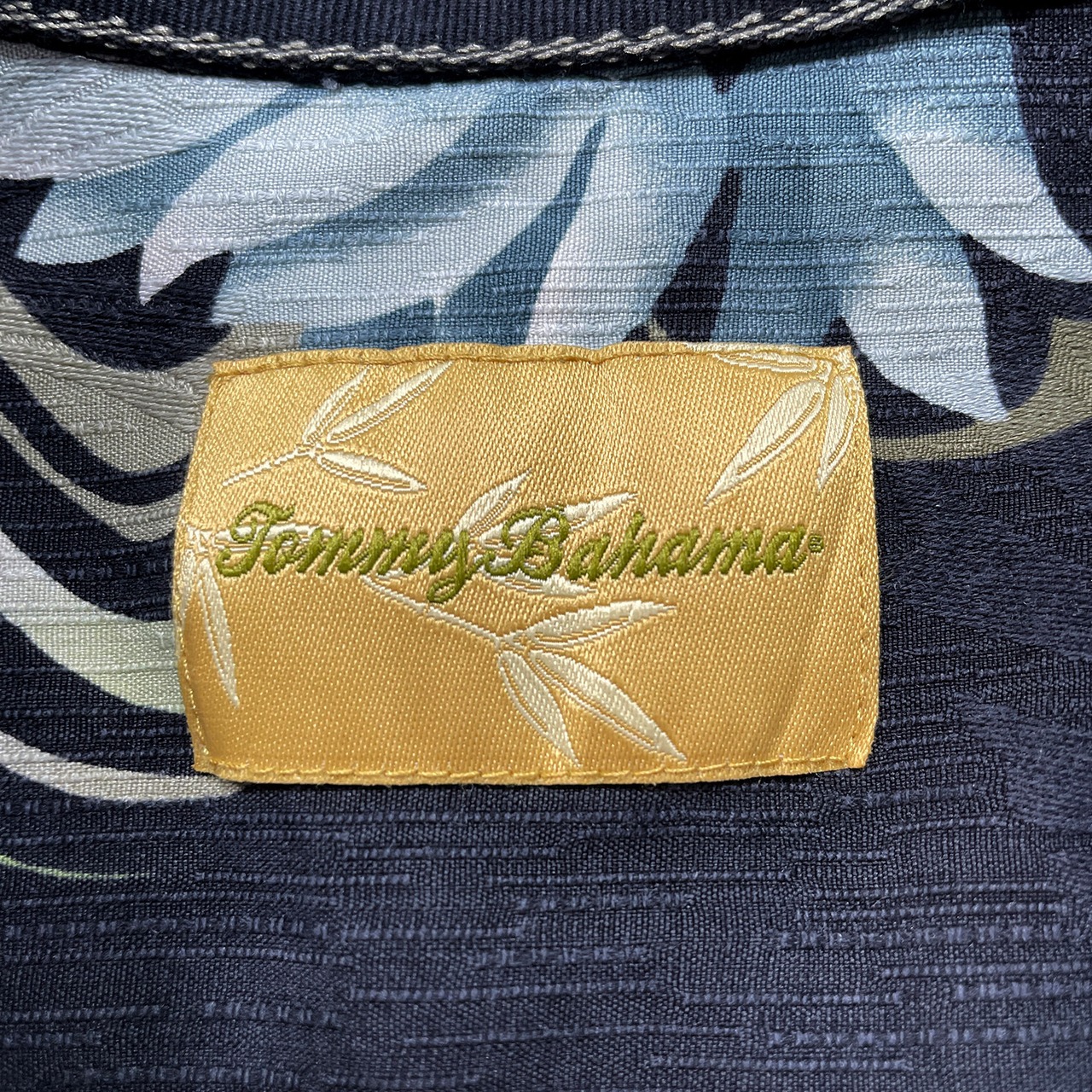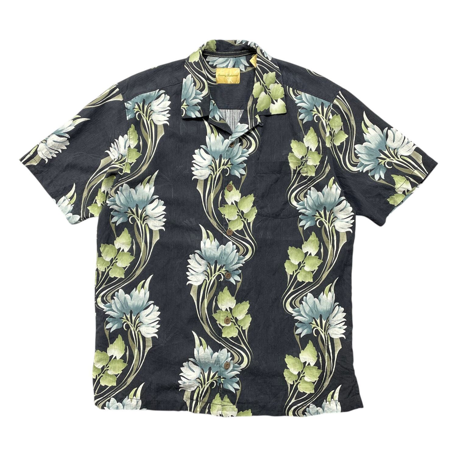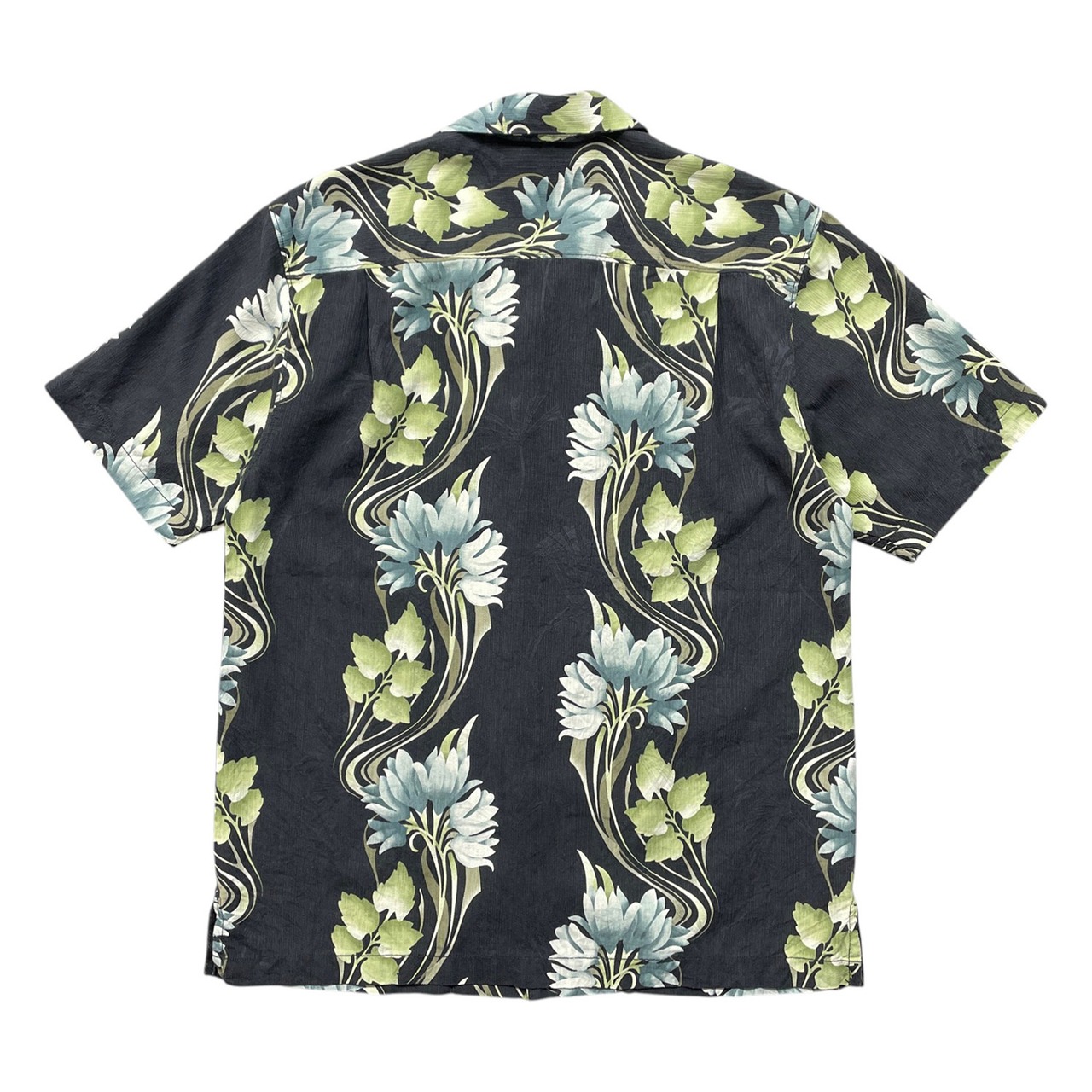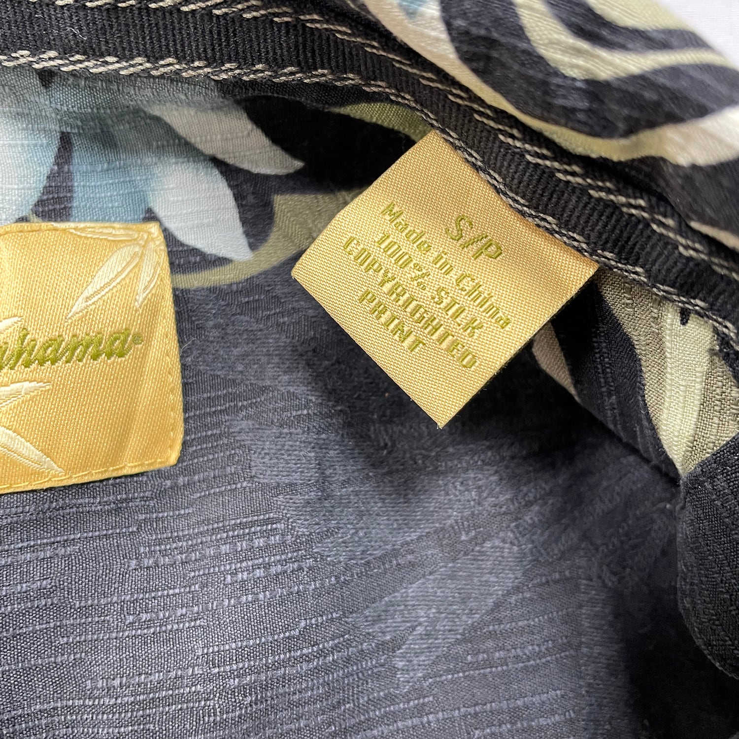 USA 古着 TOMMY BAHAMA トミーバハマ シルク 開襟 アロハシャツ ハワイアンシャツ 柄合わせ 花柄 ボタニカル柄 メンズS ブラック BF3989
