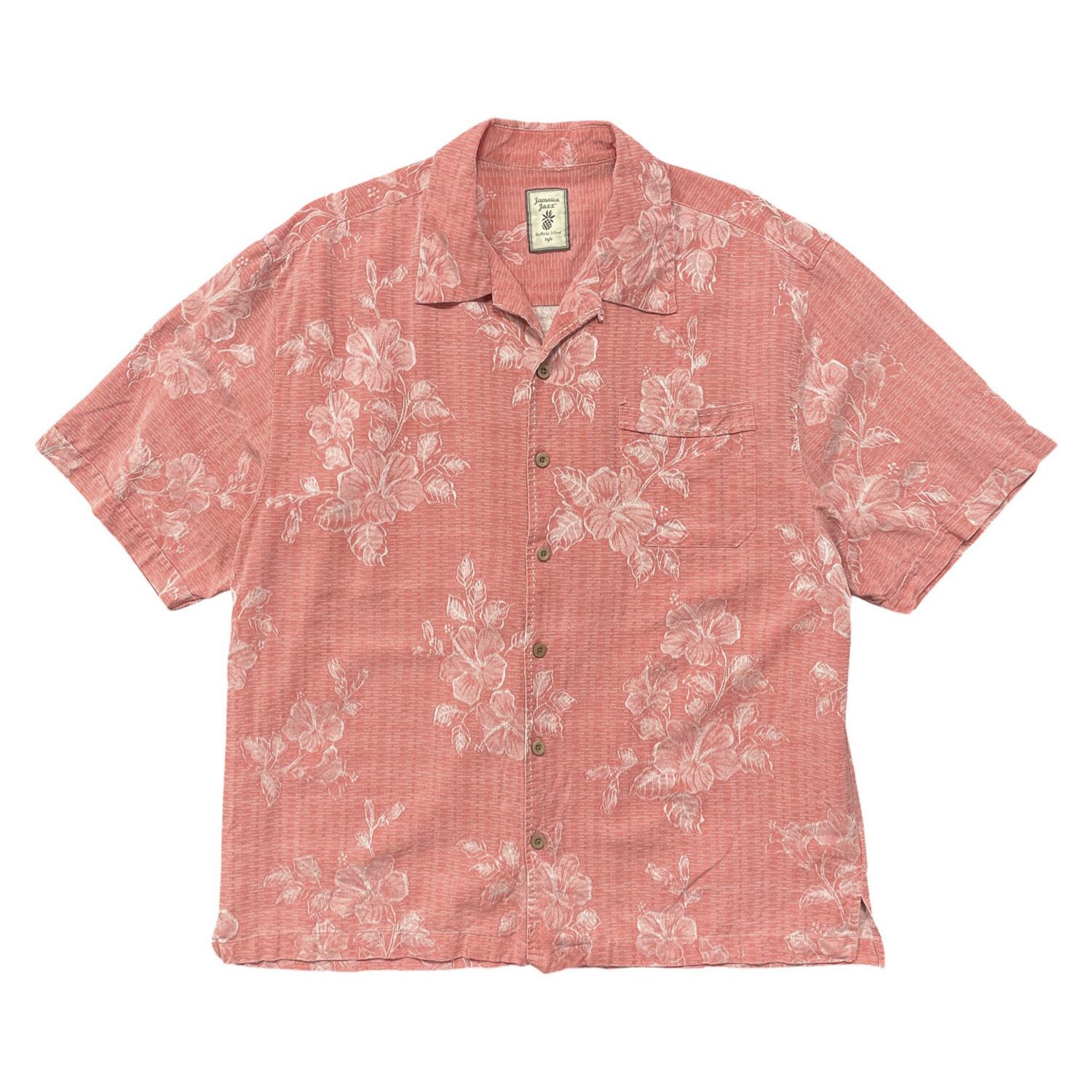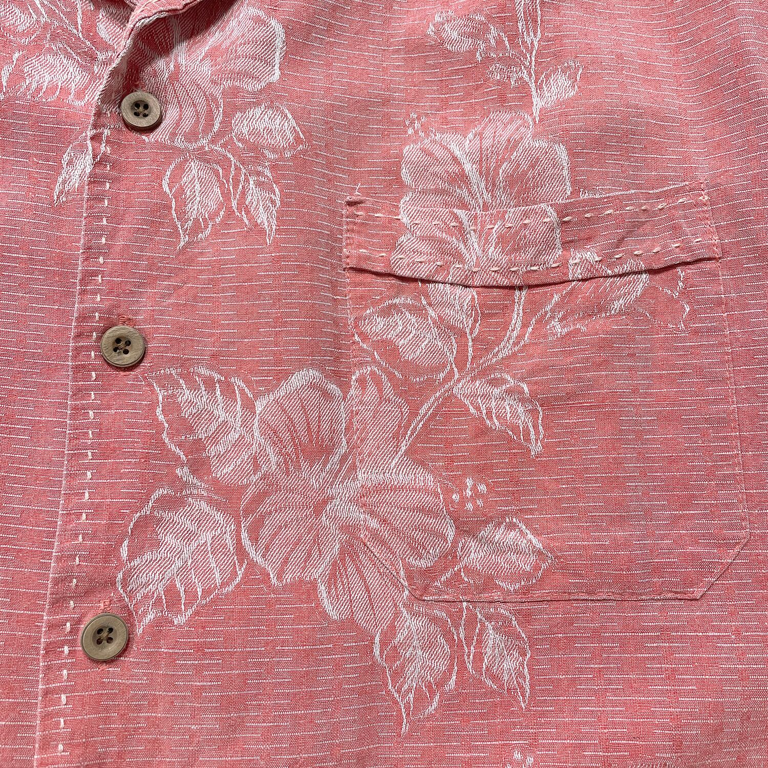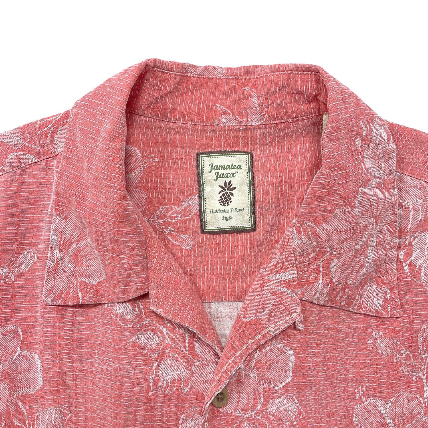 USA 古着 JAMAICA JAXX ジャマイカジャックス シルク 開襟 アロハシャツ ハワイアンシャツ ハイビスカス ジャガード メンズL ピンク BF4017