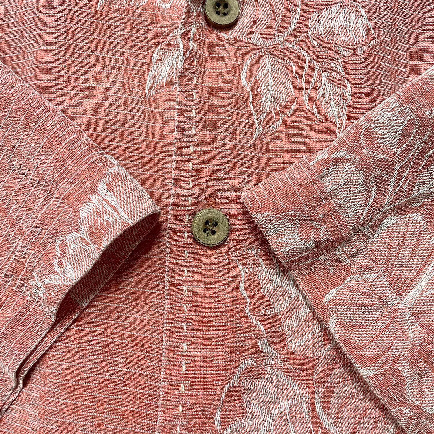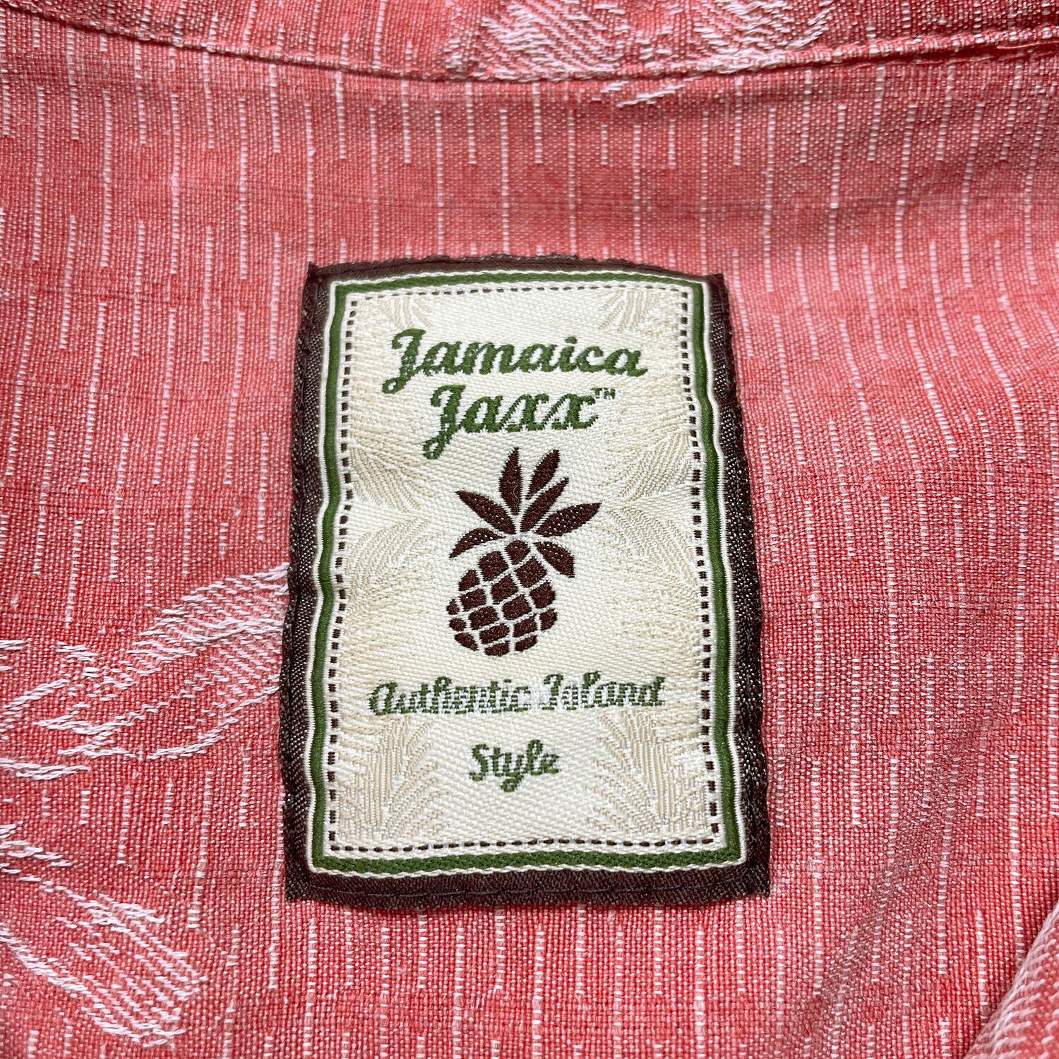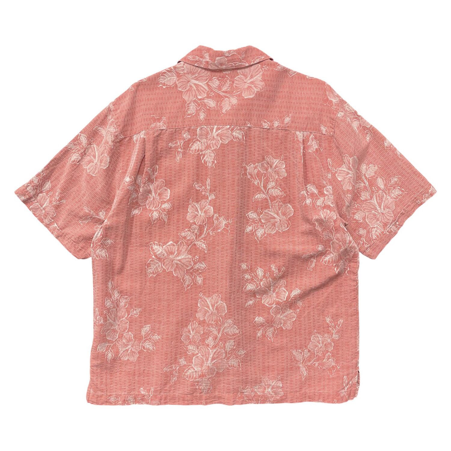 USA 古着 JAMAICA JAXX ジャマイカジャックス シルク 開襟 アロハシャツ ハワイアンシャツ ハイビスカス ジャガード メンズL ピンク BF4017