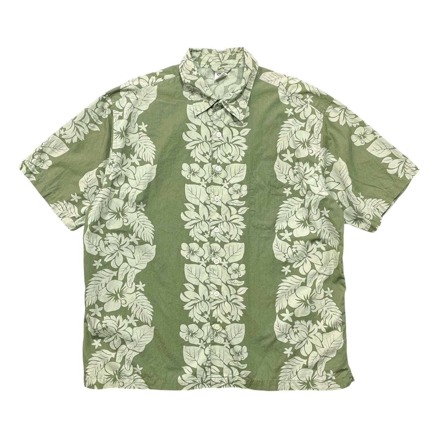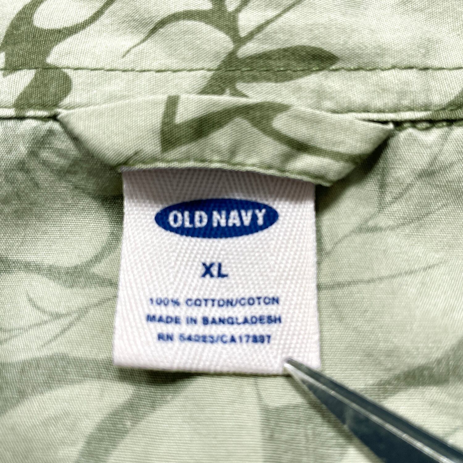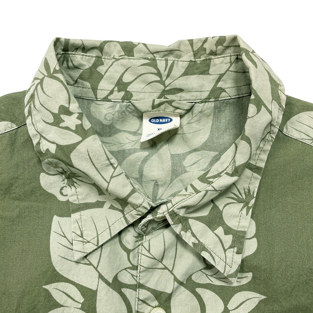 USA 古着 OLD NAVY オールドネイビー コットン アロハシャツ ハワイアンシャツ ボタニカル柄 メンズXL グリーン BF4019