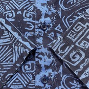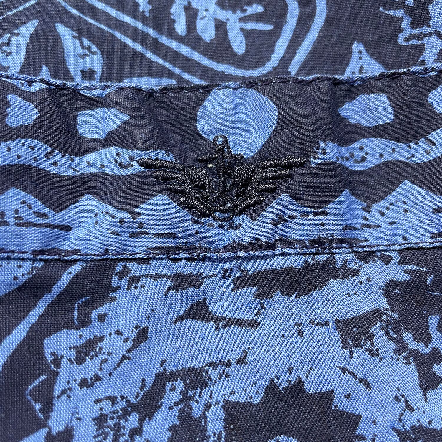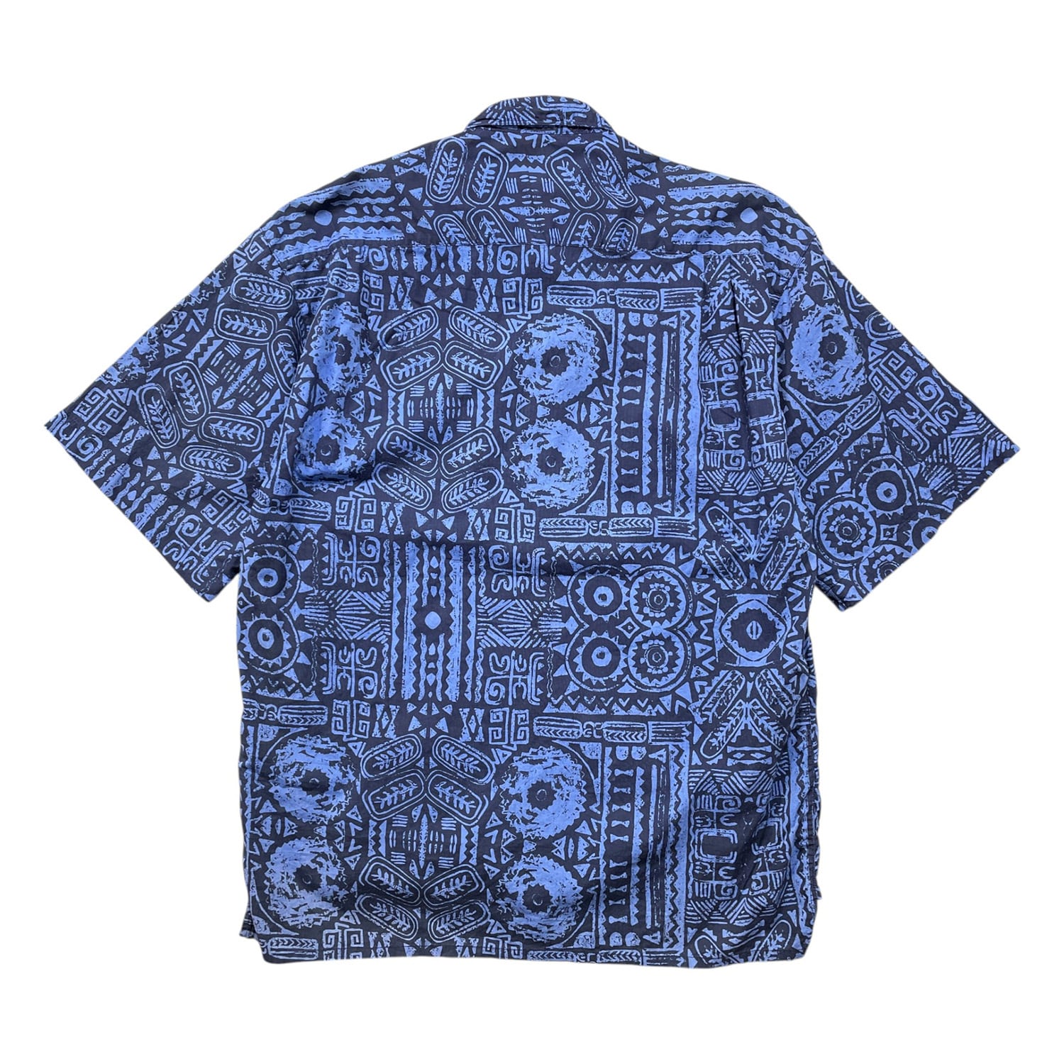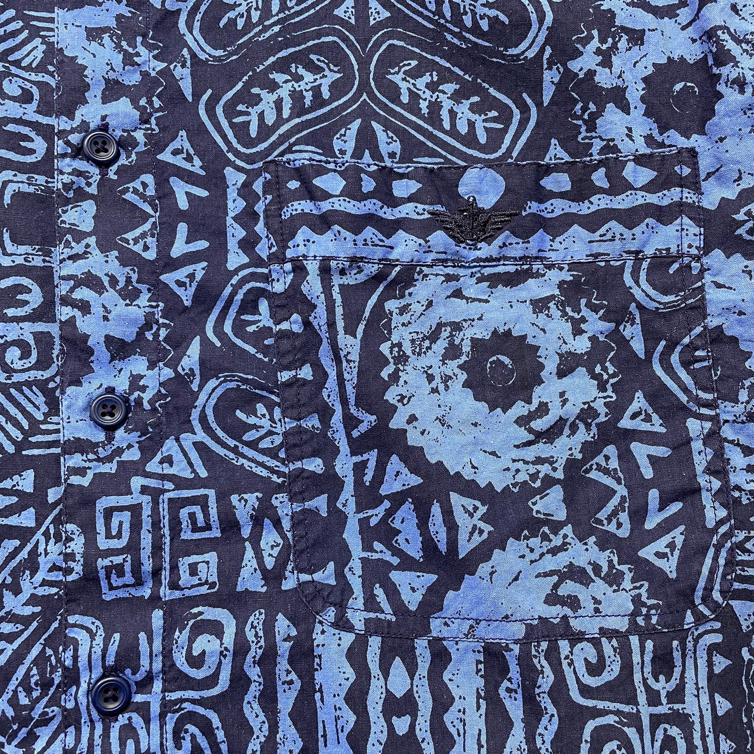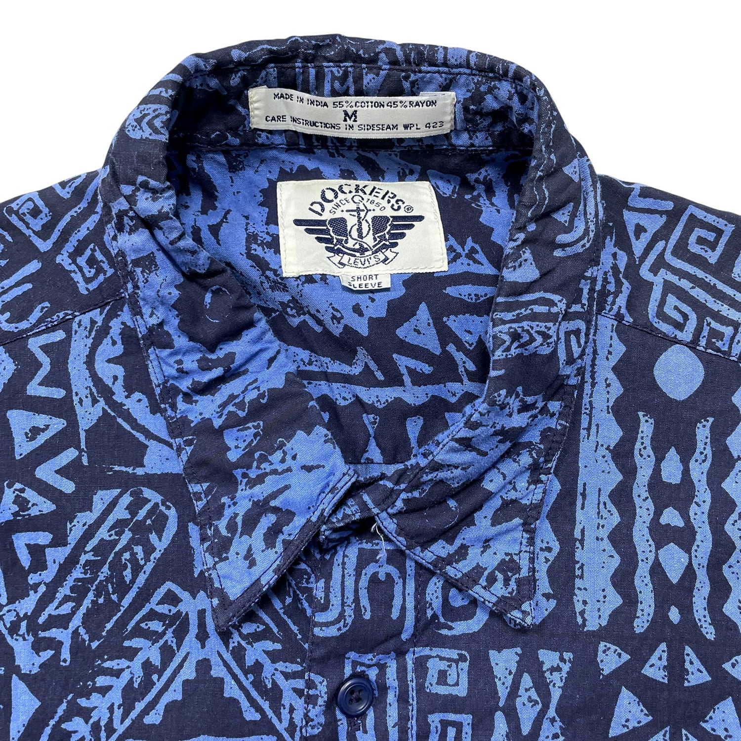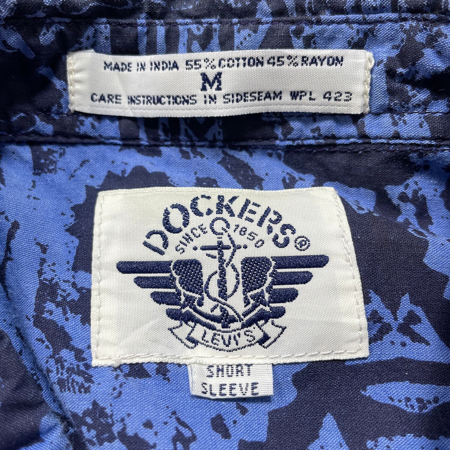 USA 古着 DOCKERS ドッカーズ コットン レーヨン アロハシャツ ハワイアンシャツ 総柄 幾何学柄 メンズM ブルー BF4022