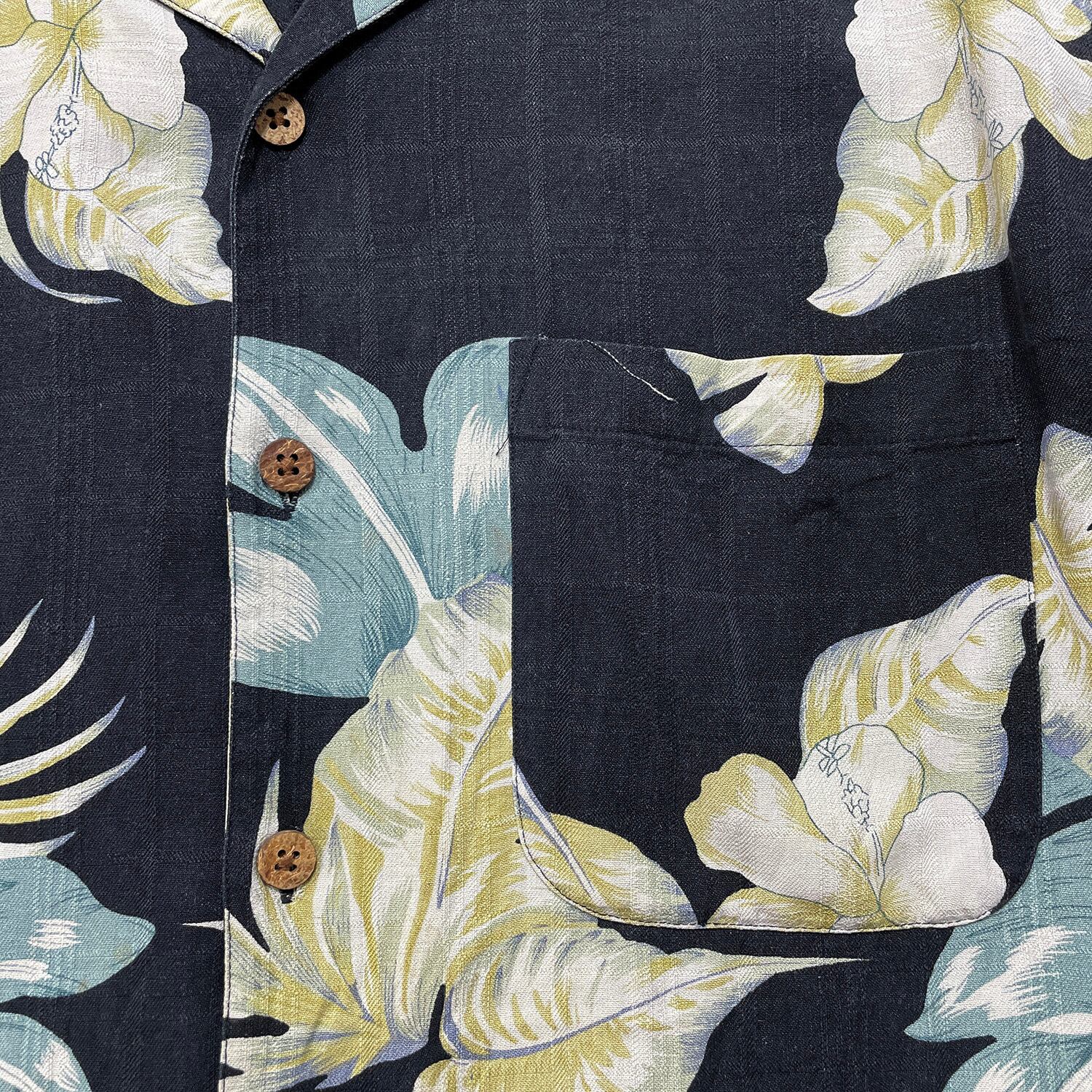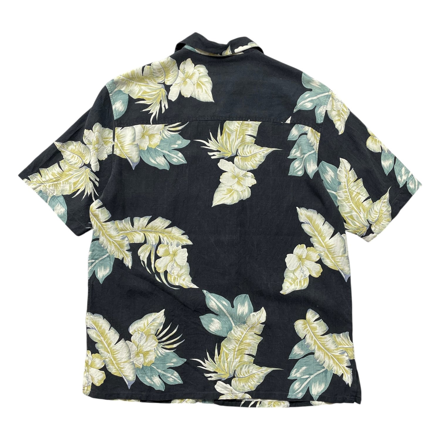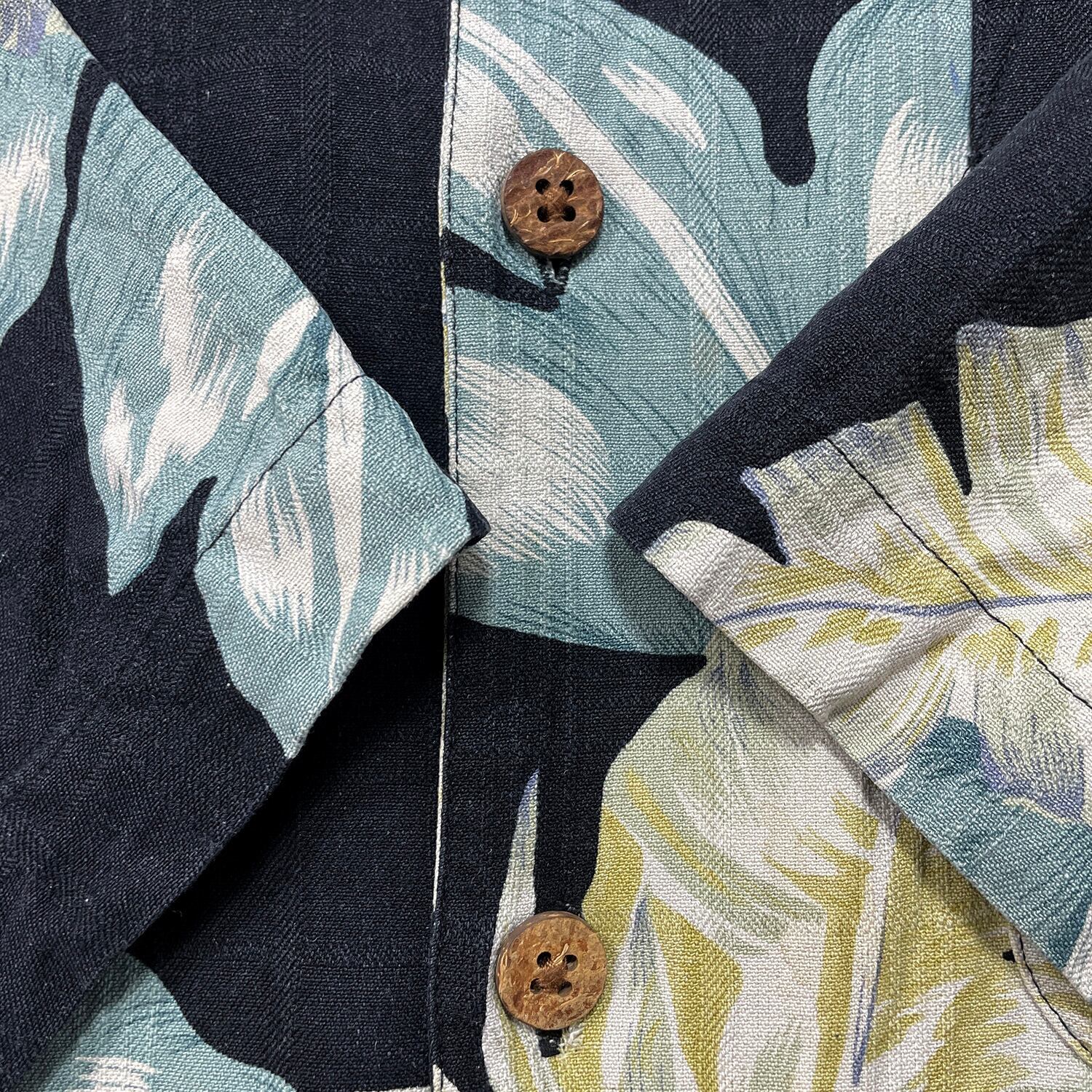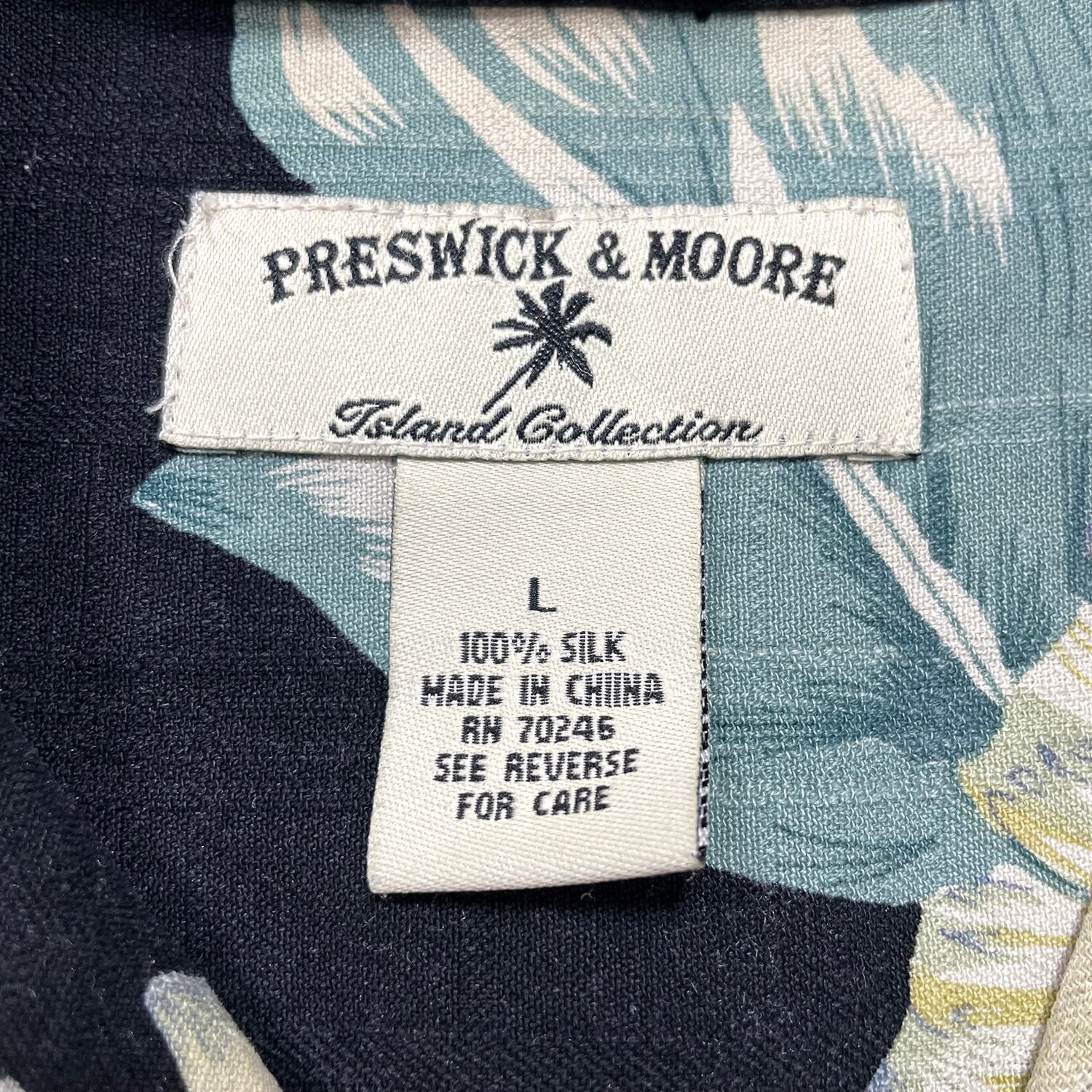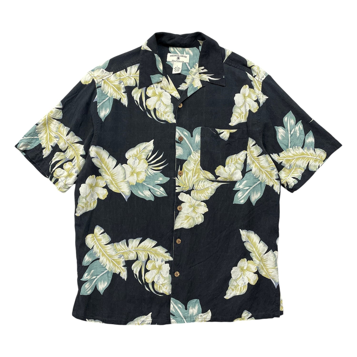 USA 古着 PRESWICK & MOORE プレズウィック&ムーア シルク 開襟 アロハシャツ ハワイアンシャツ ボタニカル メンズL ブラック BF4026