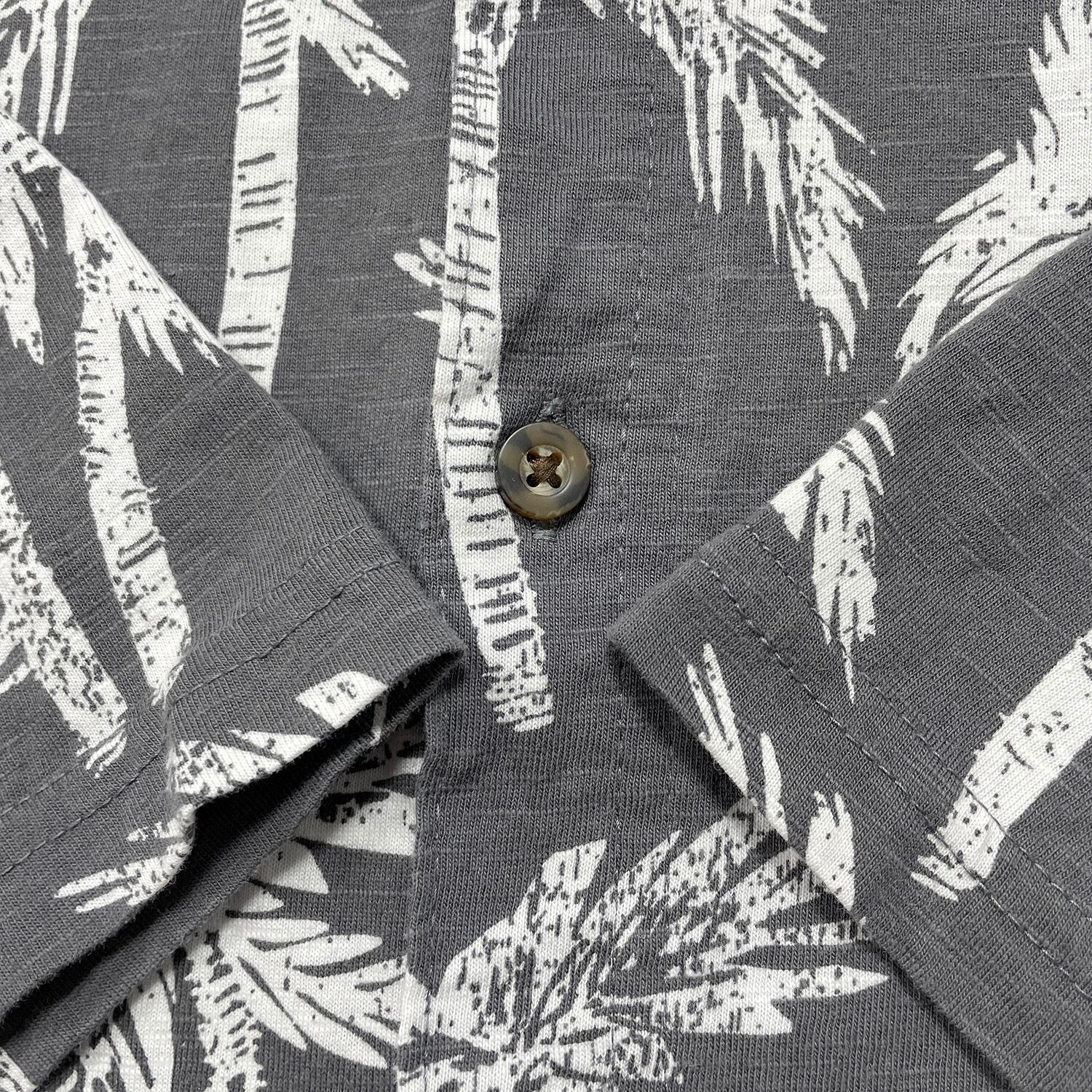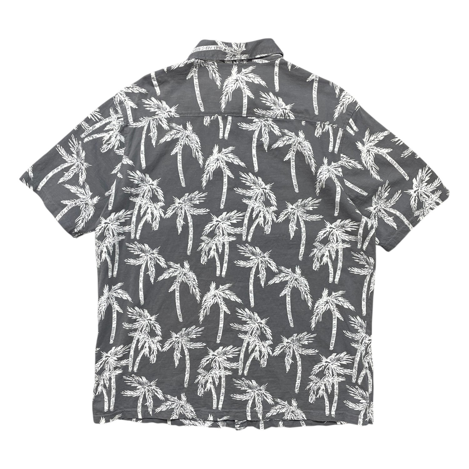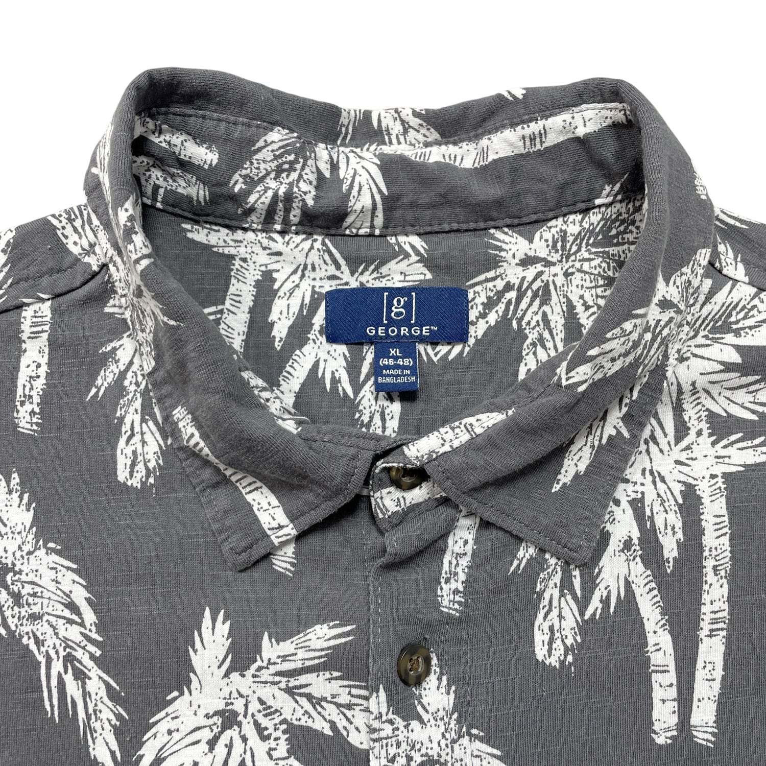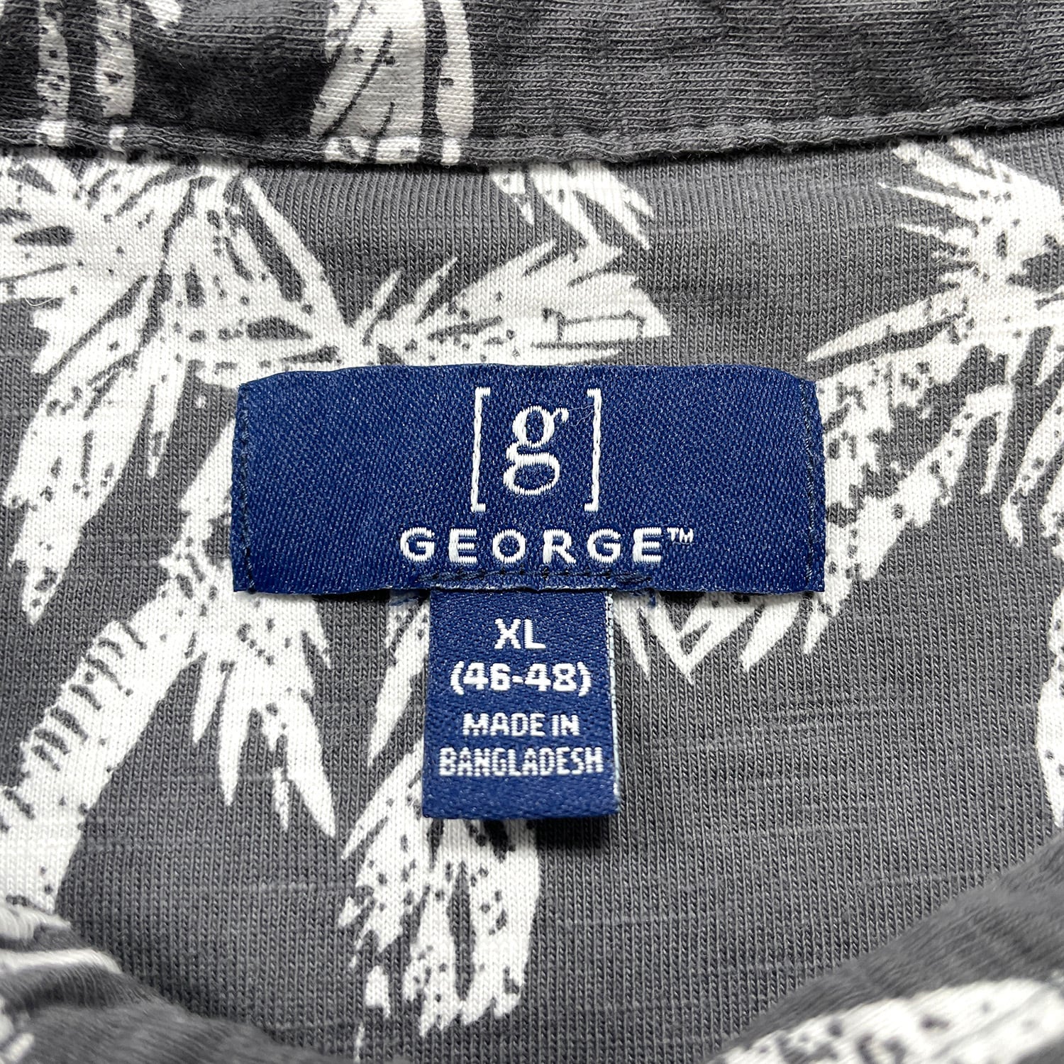USA 古着 GEORGE ジョージ コットン アロハシャツ ハワイアンシャツ パームツリー柄 ヤシの木 メンズXL グレー BF4032