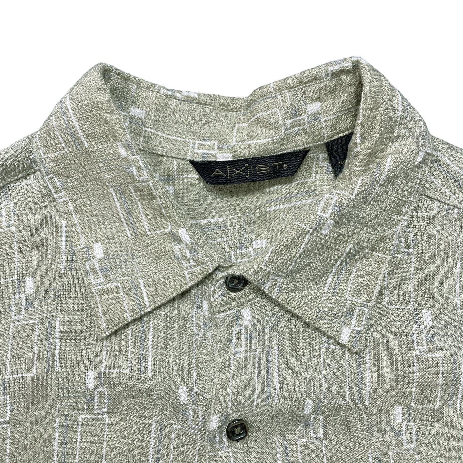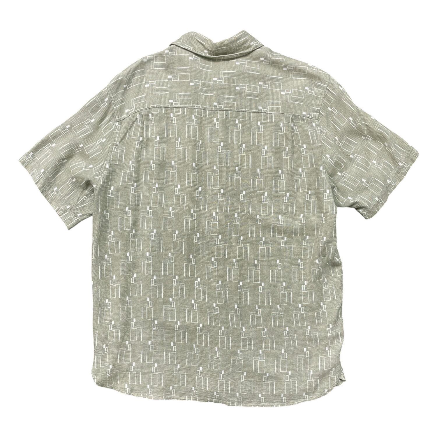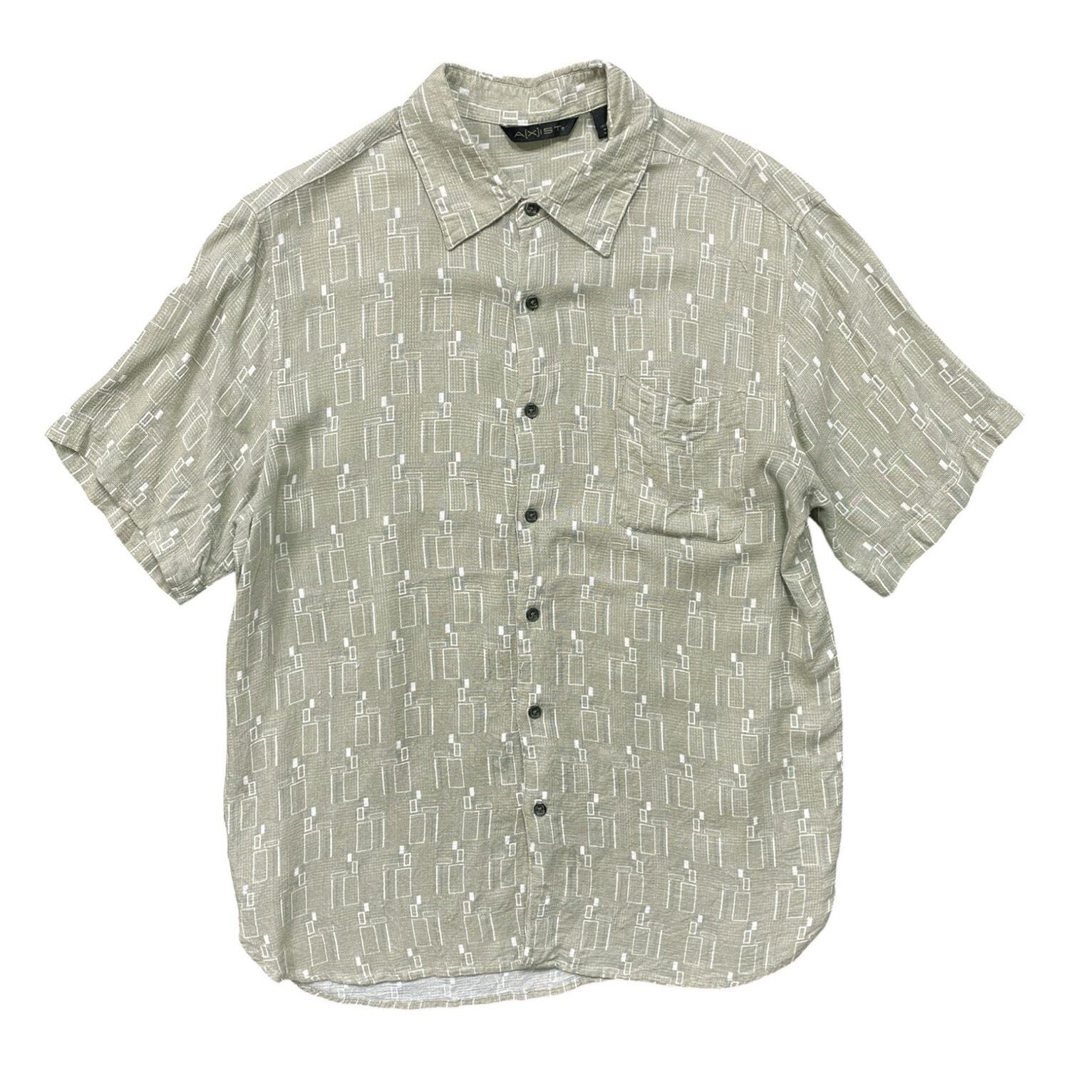 USA 古着 AXIST レーヨン アロハシャツ ハワイアンシャツ 幾何学柄 メンズL カーキ BF4039